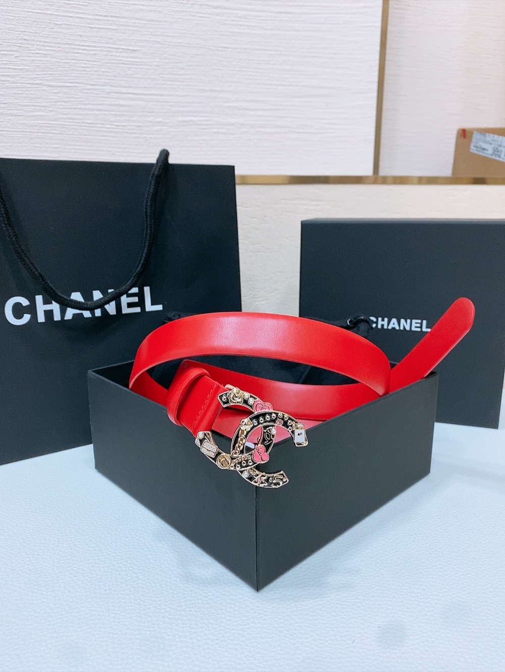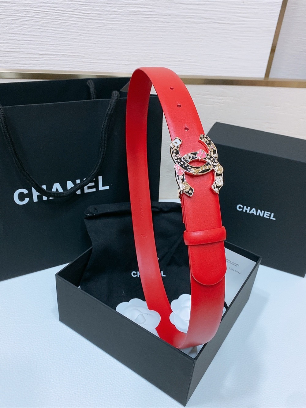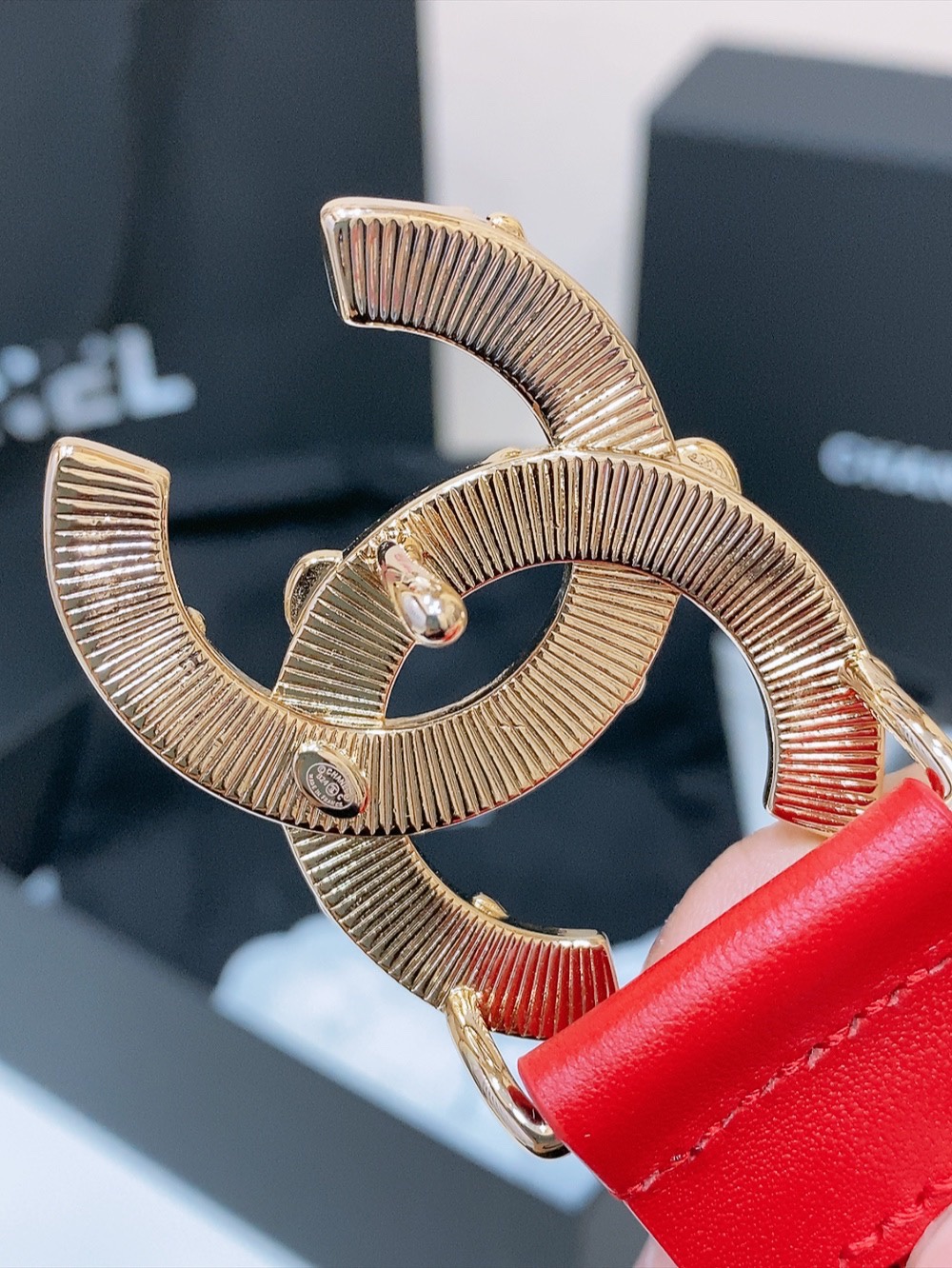这款皮带是AAAAA 1:1 质量 (非常棒). 使用了和原版一模一样的材料. 商标部分也保持了和香奈儿/Chanel一样. 图片拍摄是实物皮带拍摄, 您所收到的实物保证和我们图片一模一样.