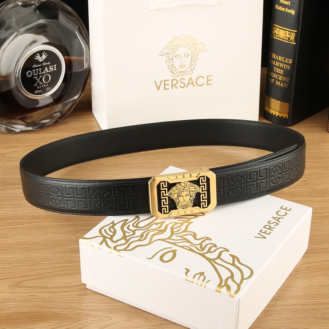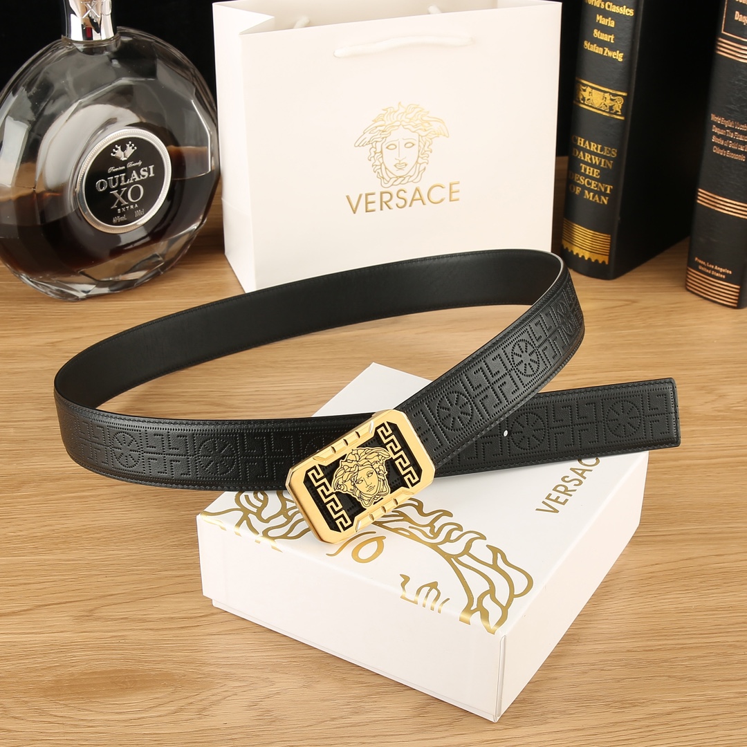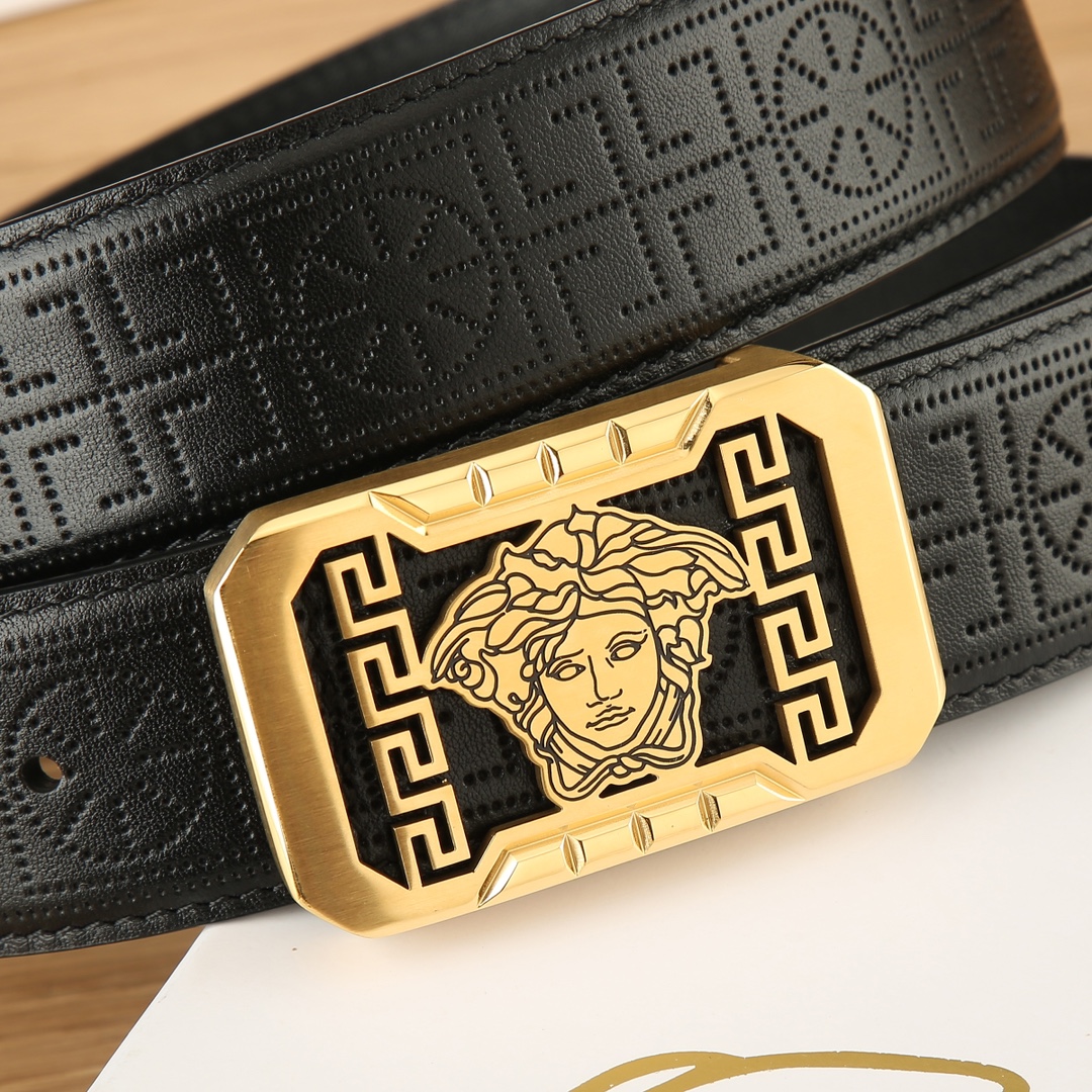 这款皮带是AAAAA 1:1 质量 (非常棒). 使用了和原版一模一样的材料. 商标部分也保持了和范思哲/Versace一样. 图片拍摄是实物皮带拍摄, 您所收到的实物保证和我们图片一模一样.
