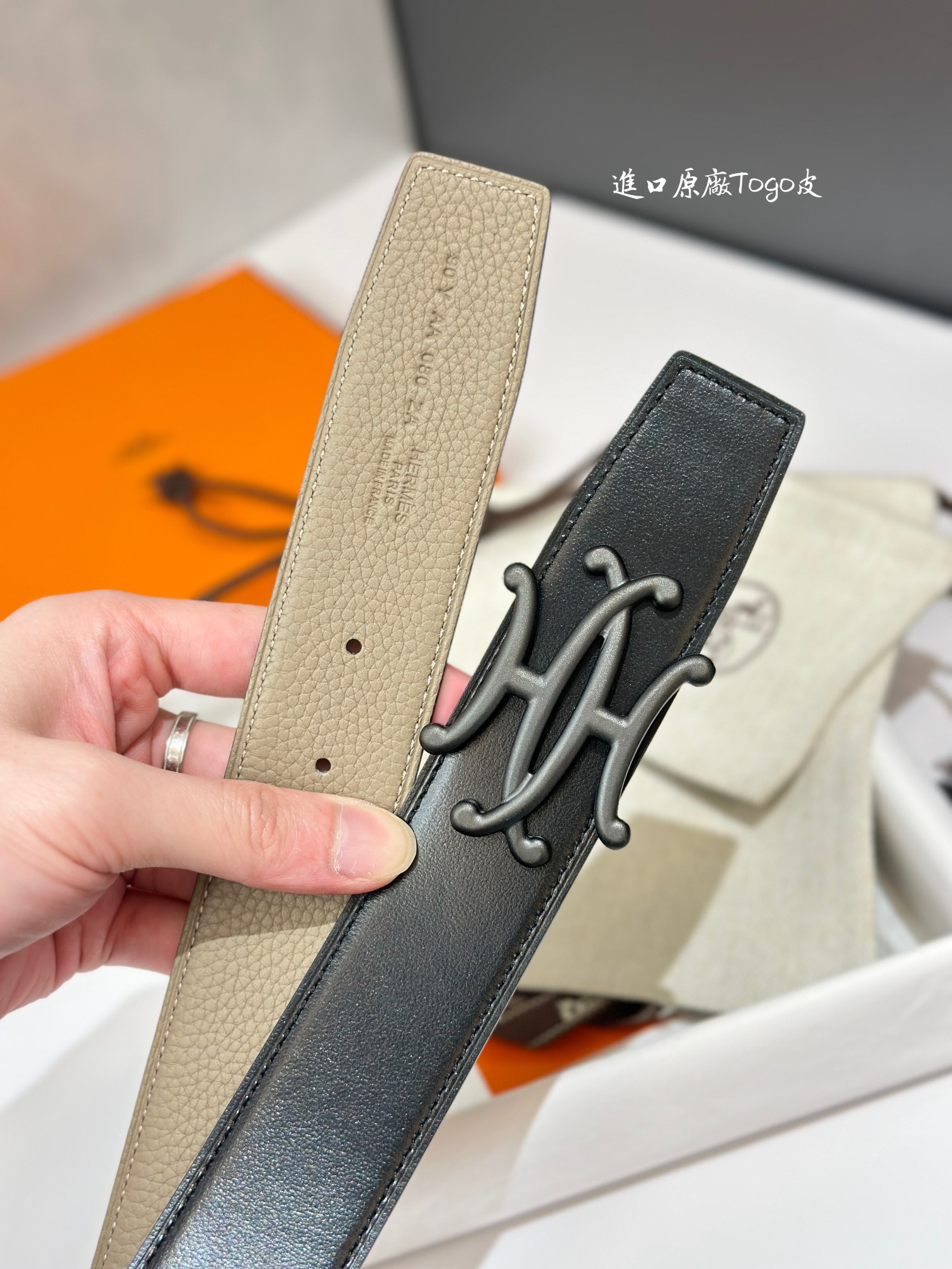这款皮带是AAAAA 1:1 质量 (非常棒). 使用了和原版一模一样的材料. 商标部分也保持了和一样. 图片拍摄是实物皮带拍摄, 您所收到的实物保证和我们图片一模一样.
