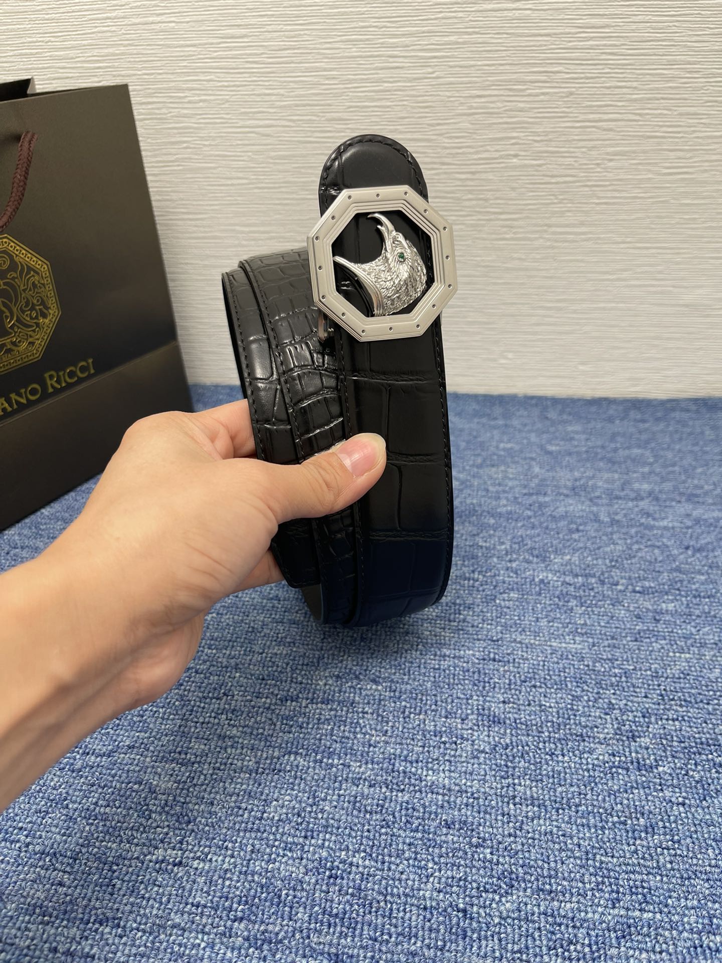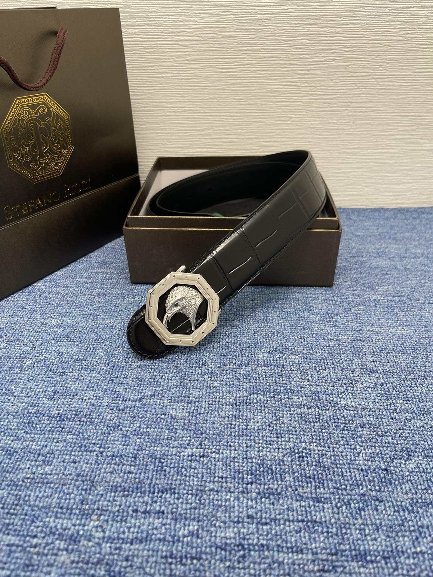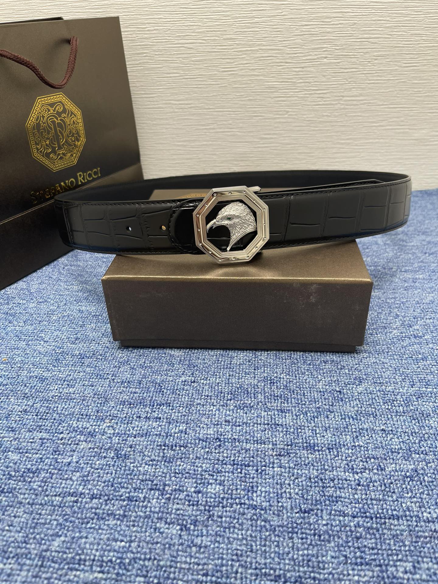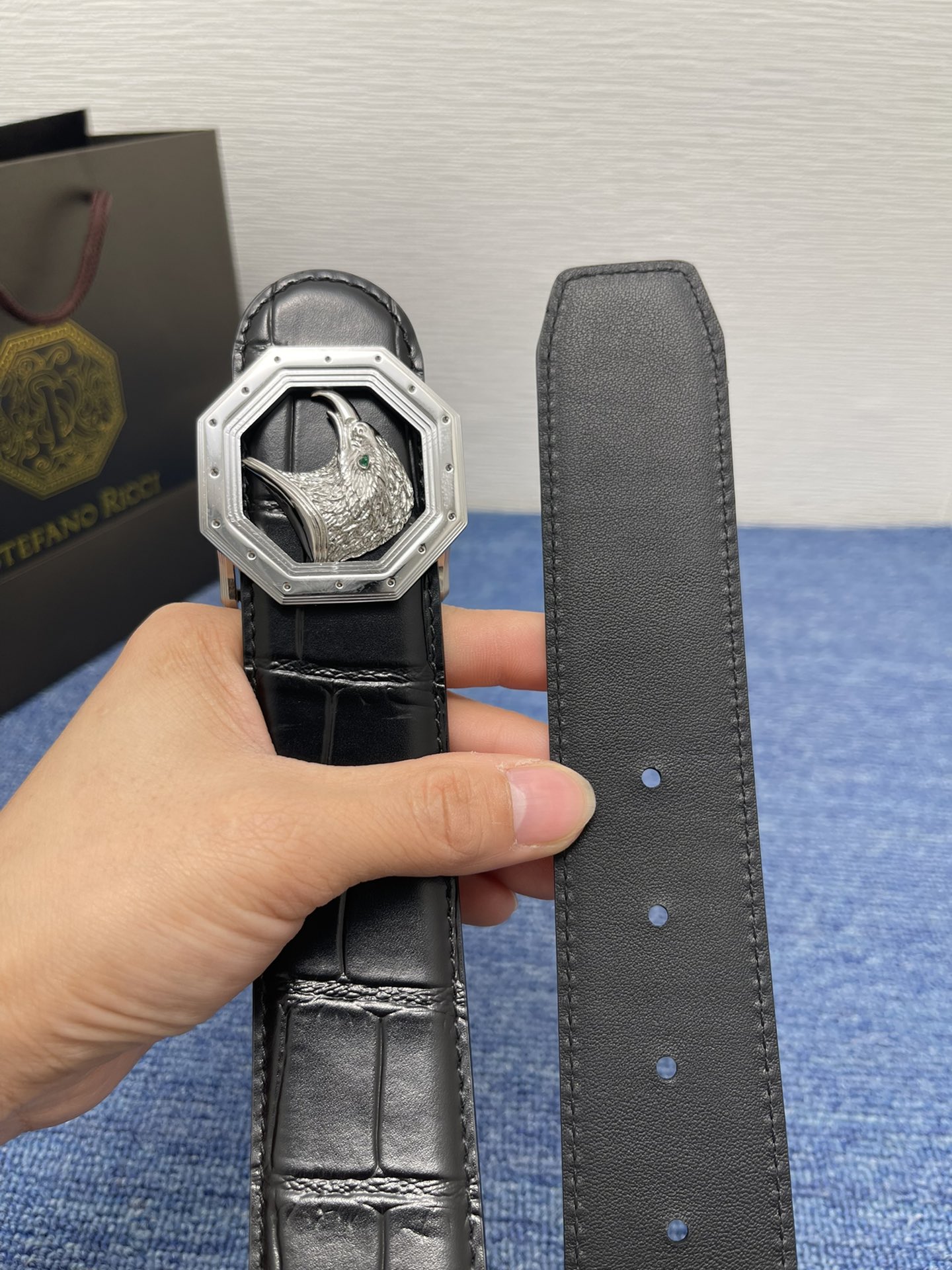 这款皮带是AAAAA 1:1 质量 (非常棒). 使用了和原版一模一样的材料. 商标部分也保持了和史蒂芬劳.尼治/Stefano Ricci一样. 图片拍摄是实物皮带拍摄, 您所收到的实物保证和我们图片一模一样.