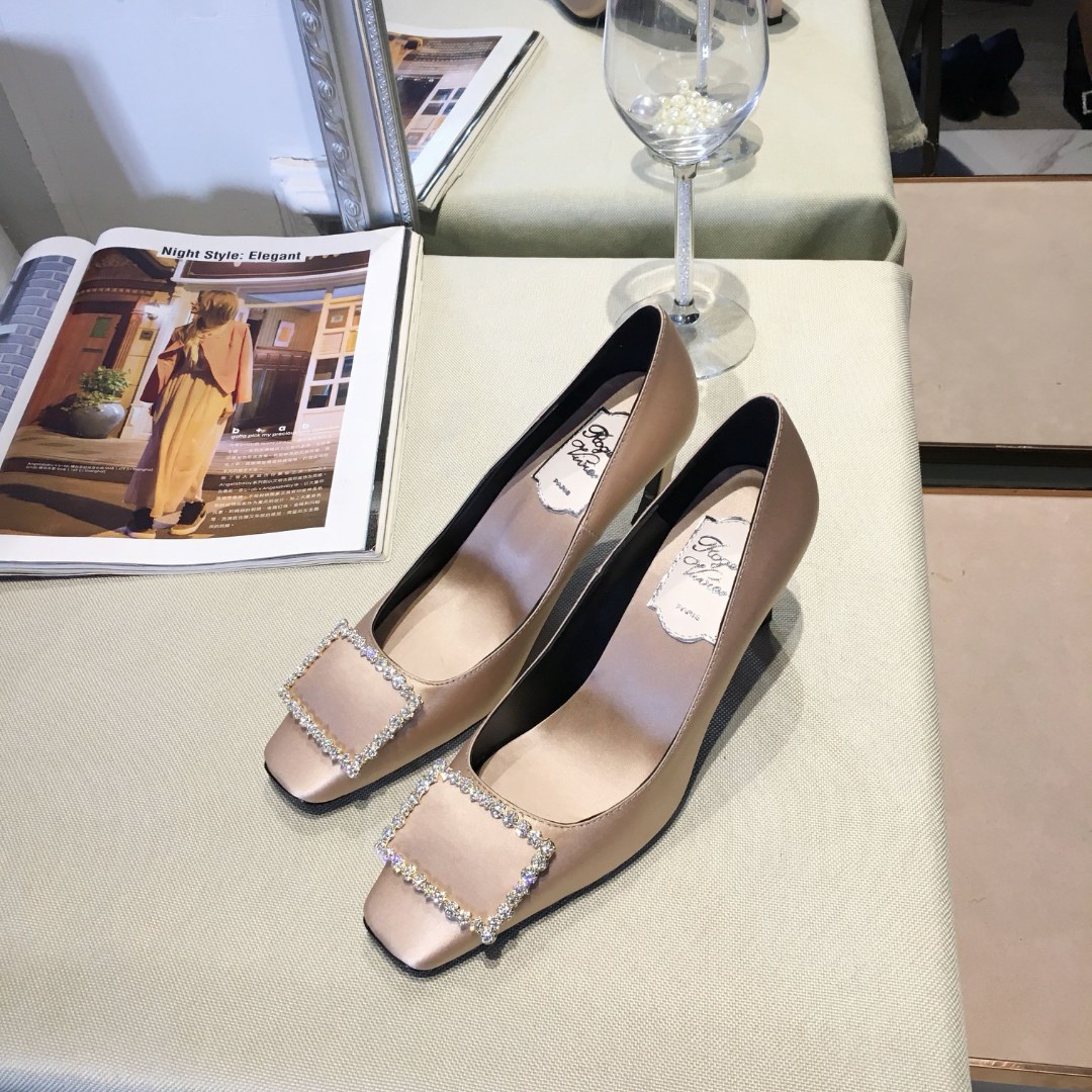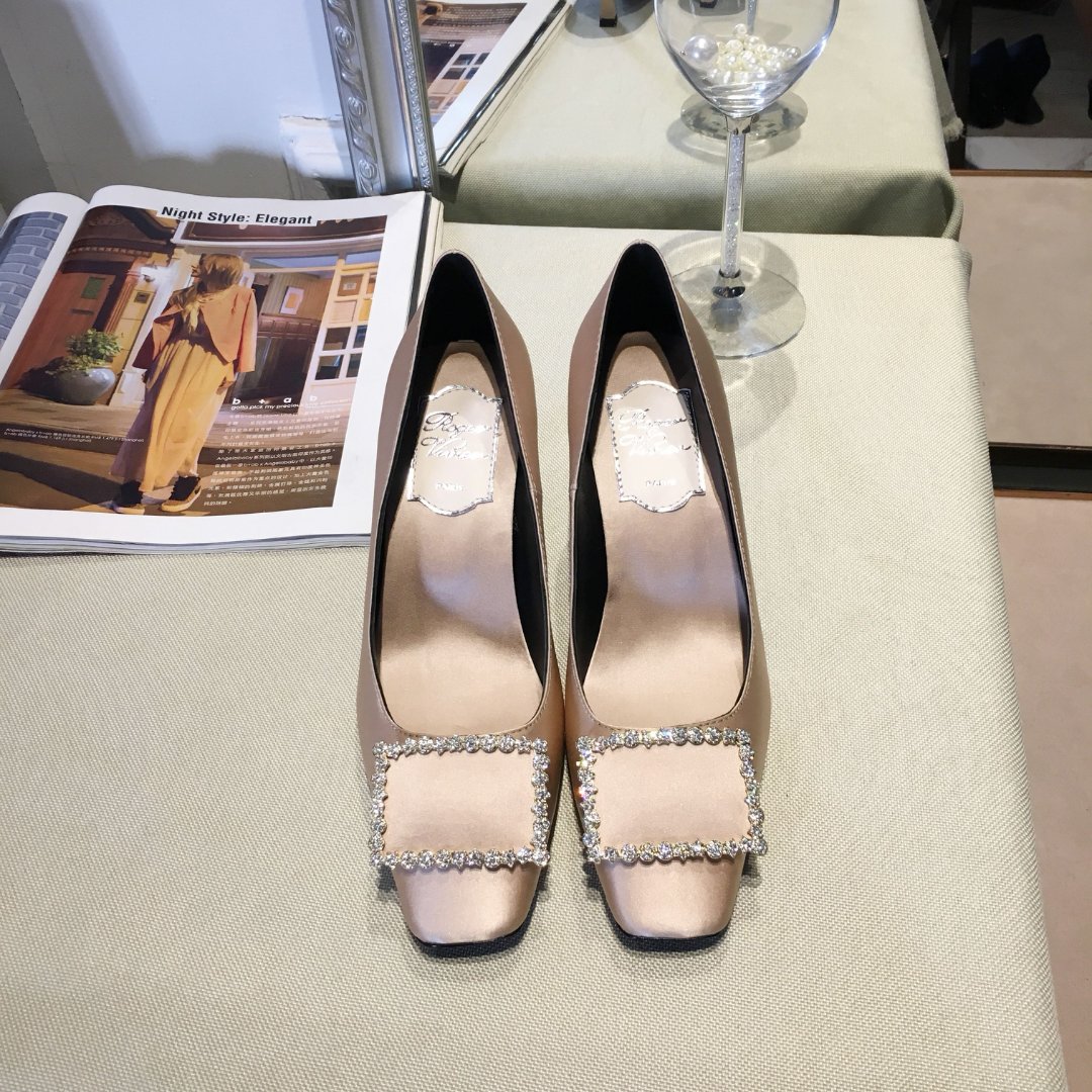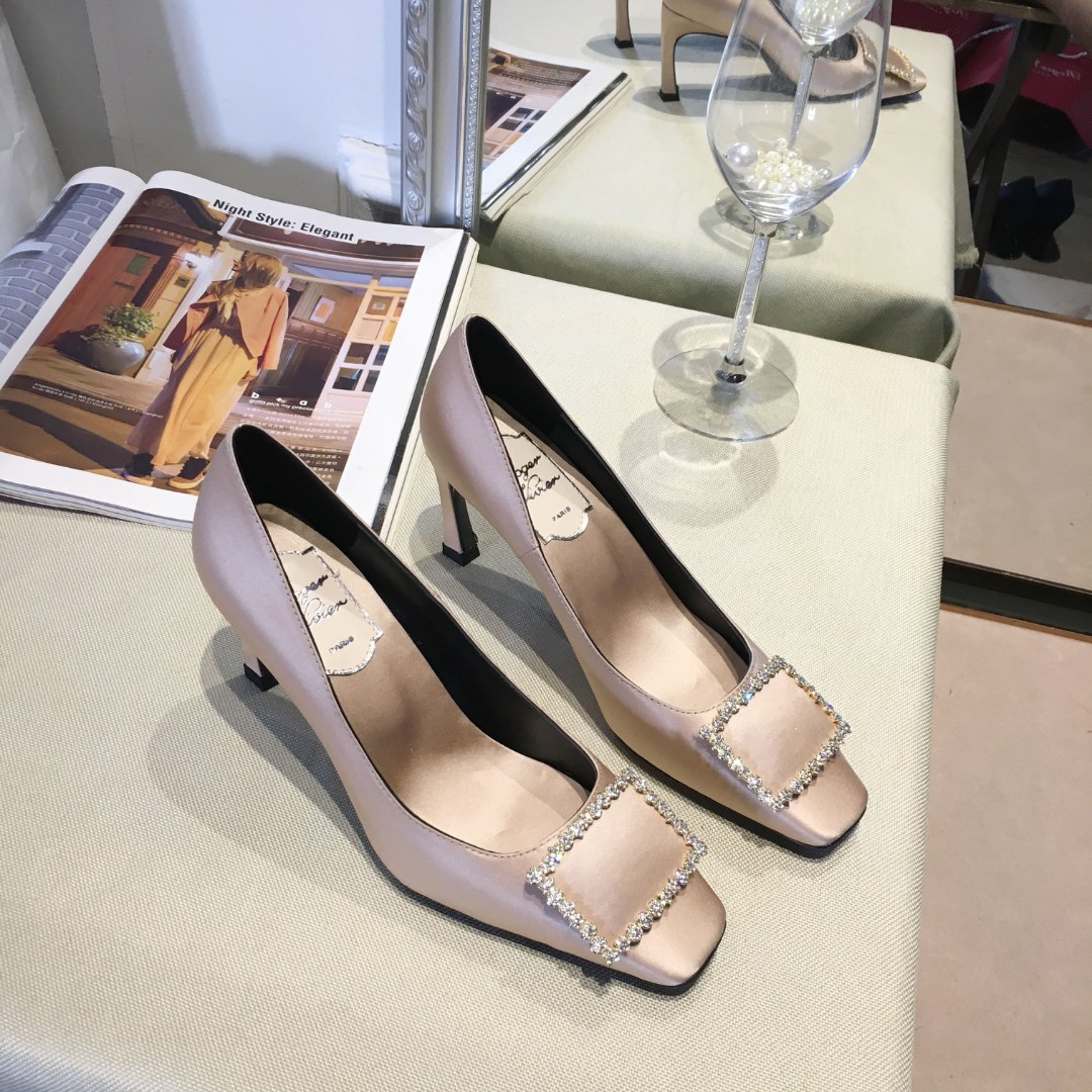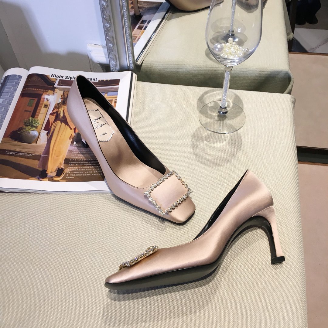 这款鞋子是AAAAA 1:1 质量 (非常棒). 使用了和原版一模一样的材料. 商标部分也保持了和罗杰维维耶/Roger Vivier一样. 图片拍摄是实物鞋子拍摄, 您所收到的实物保证和我们图片一模一样.