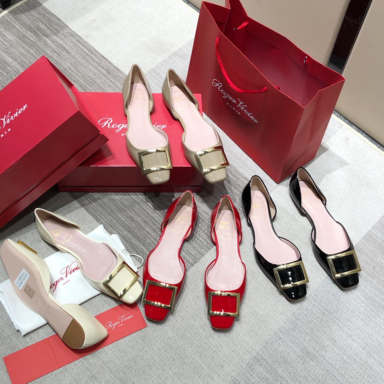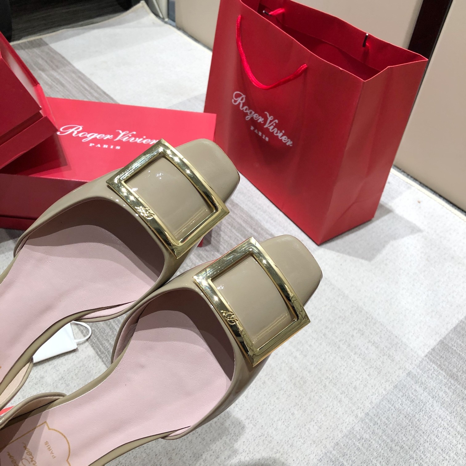这款鞋子是AAAAA 1:1 质量 (非常棒). 使用了和原版一模一样的材料. 商标部分也保持了和罗杰维维耶/Roger Vivier一样. 图片拍摄是实物鞋子拍摄, 您所收到的实物保证和我们图片一模一样.