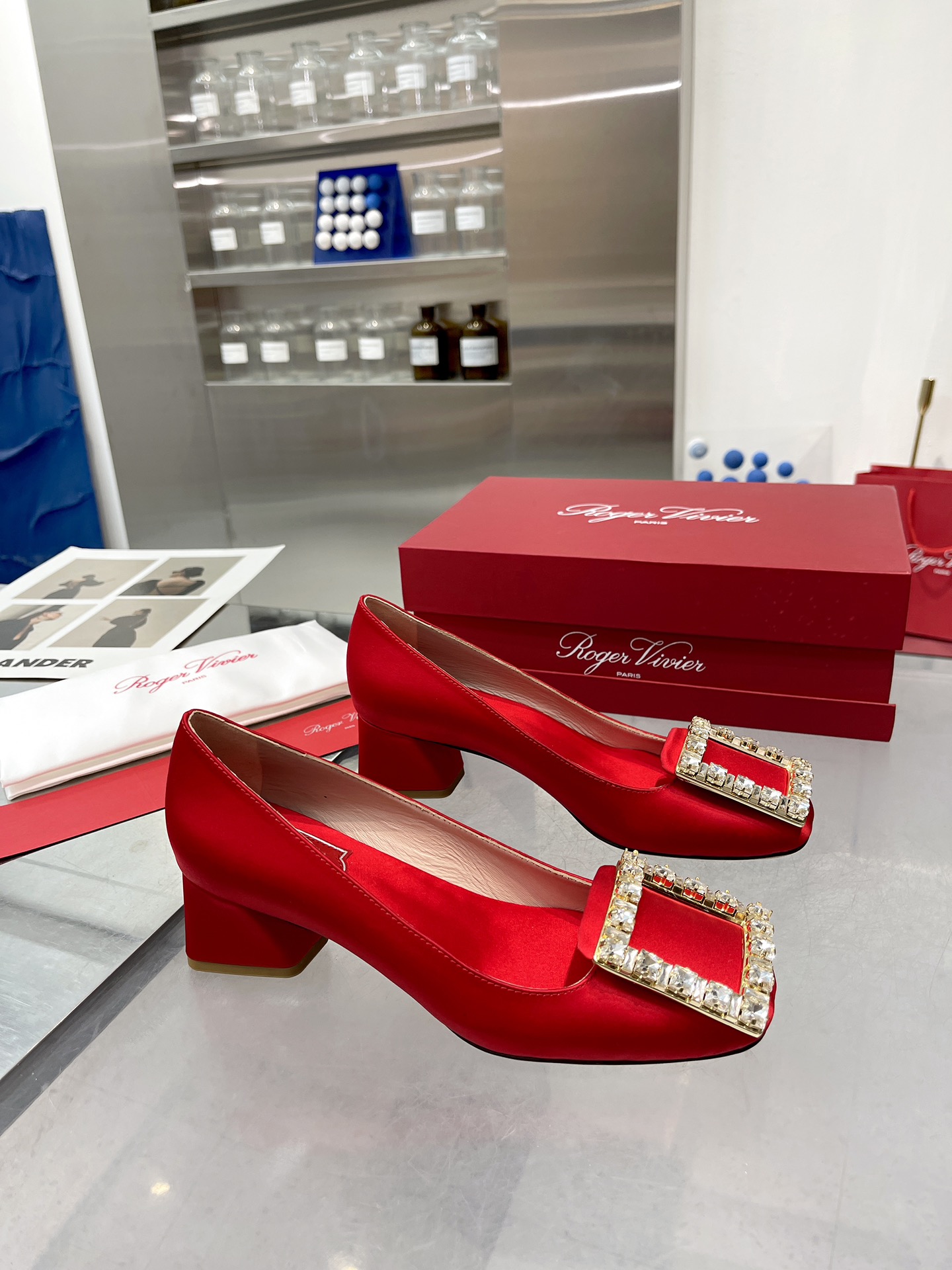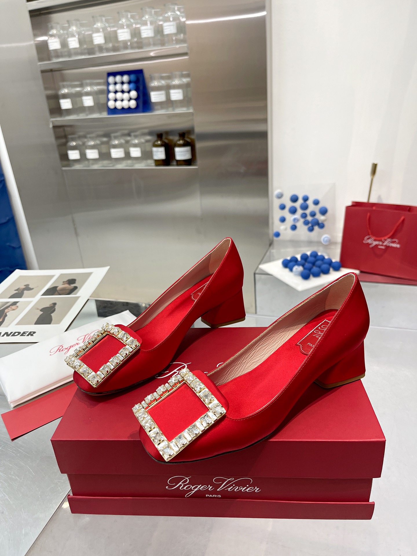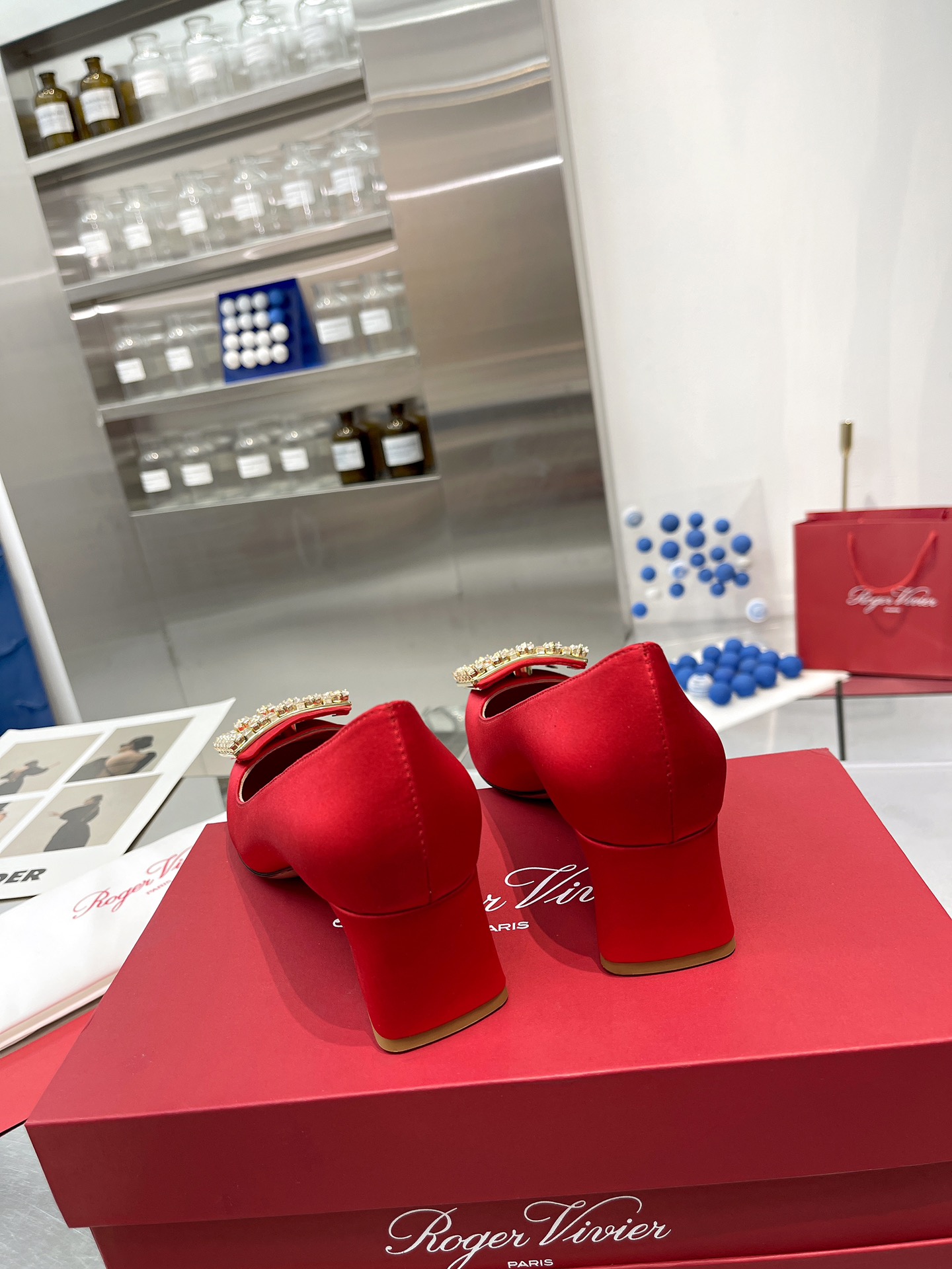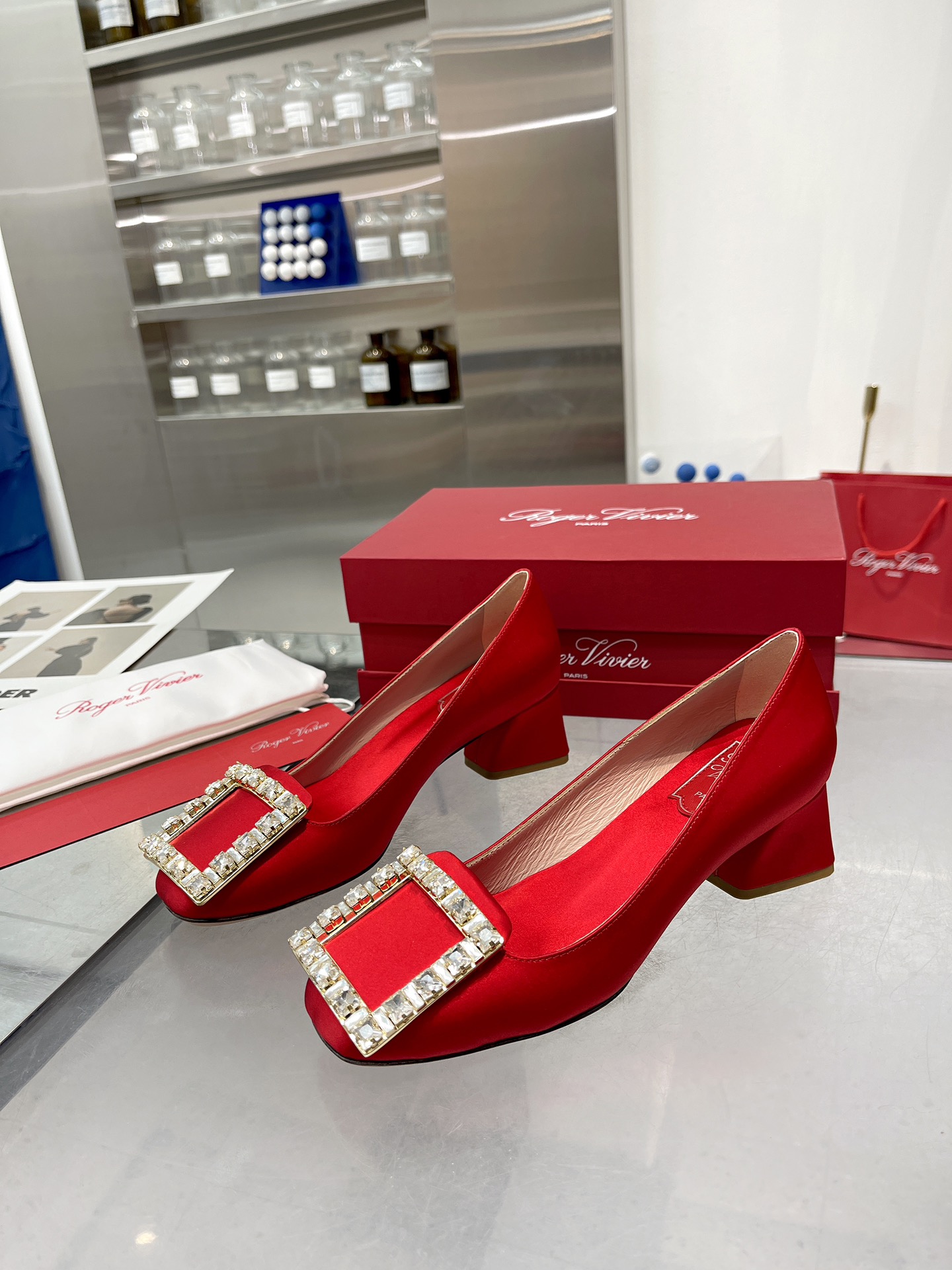这款鞋子是AAAAA 1:1 质量 (非常棒). 使用了和原版一模一样的材料. 商标部分也保持了和罗杰维维耶/Roger Vivier一样. 图片拍摄是实物鞋子拍摄, 您所收到的实物保证和我们图片一模一样.