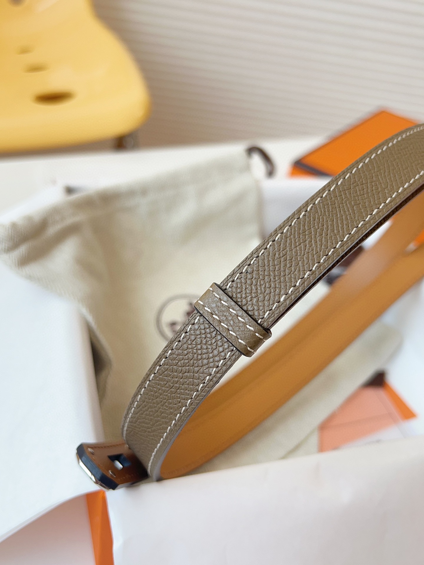 这款皮带是AAAAA 1:1 质量 (非常棒). 使用了和原版一模一样的材料. 商标部分也保持了和爱马仕/Hermes一样. 图片拍摄是实物皮带拍摄, 您所收到的实物保证和我们图片一模一样.