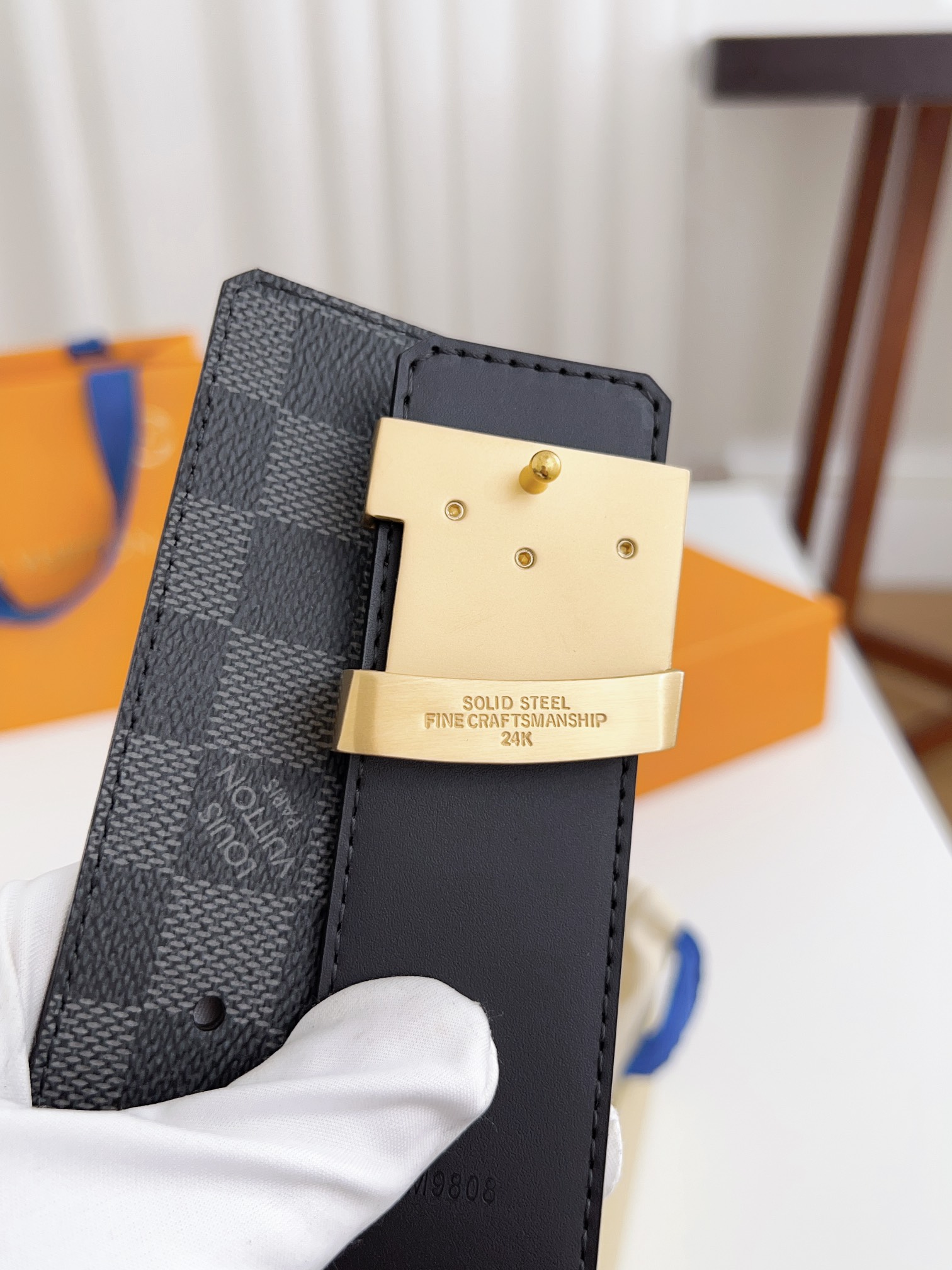 这款皮带是AAAAA 1:1 质量 (非常棒). 使用了和原版一模一样的材料. 商标部分也保持了和路易威登/Louis Vuitton一样. 图片拍摄是实物皮带拍摄, 您所收到的实物保证和我们图片一模一样.