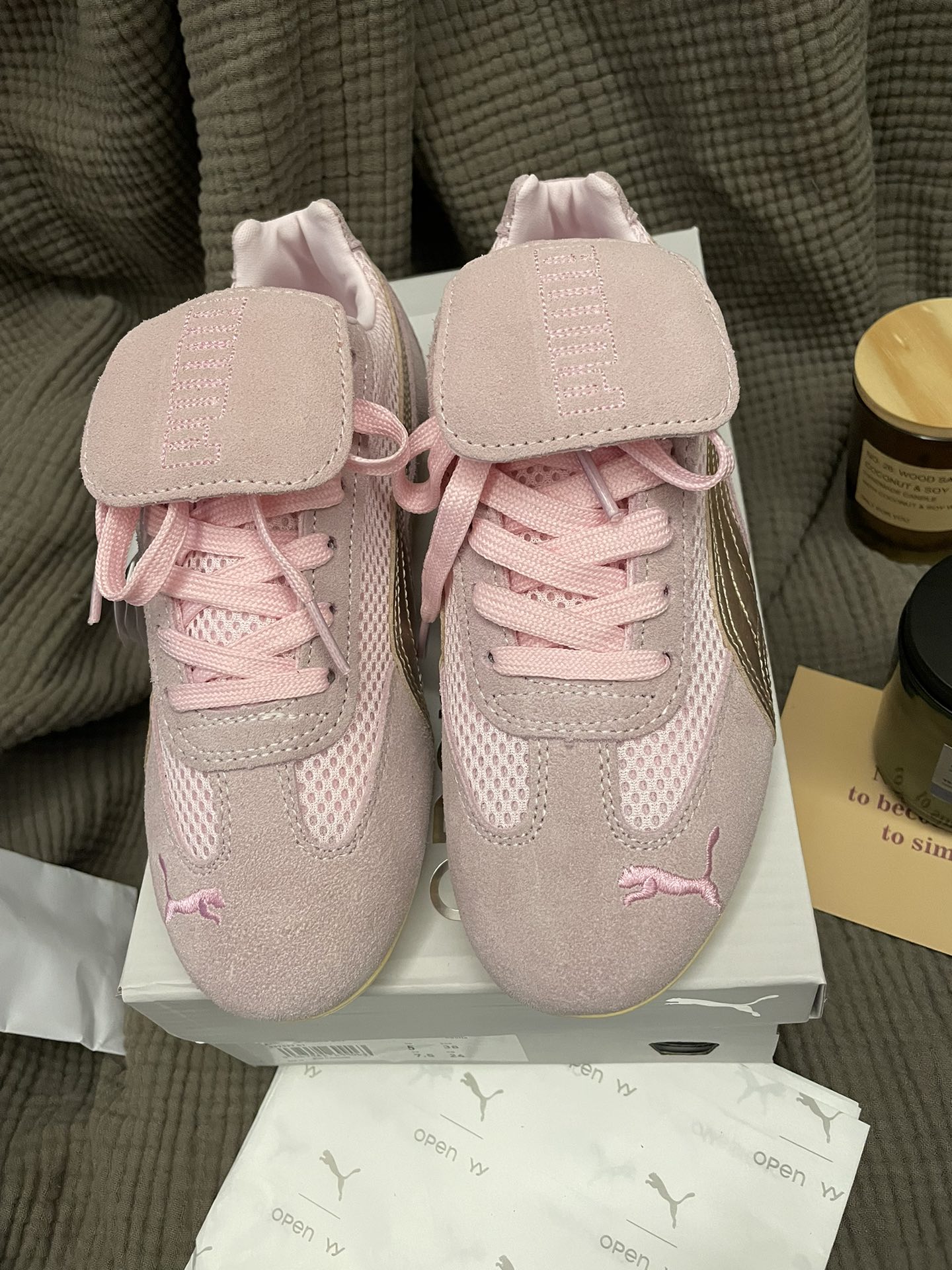 这款鞋子是AAAAA 1:1 质量 (非常棒). 使用了和原版一模一样的材料. 商标部分也保持了和彪马/PUMA一样. 图片拍摄是实物鞋子拍摄, 您所收到的实物保证和我们图片一模一样.