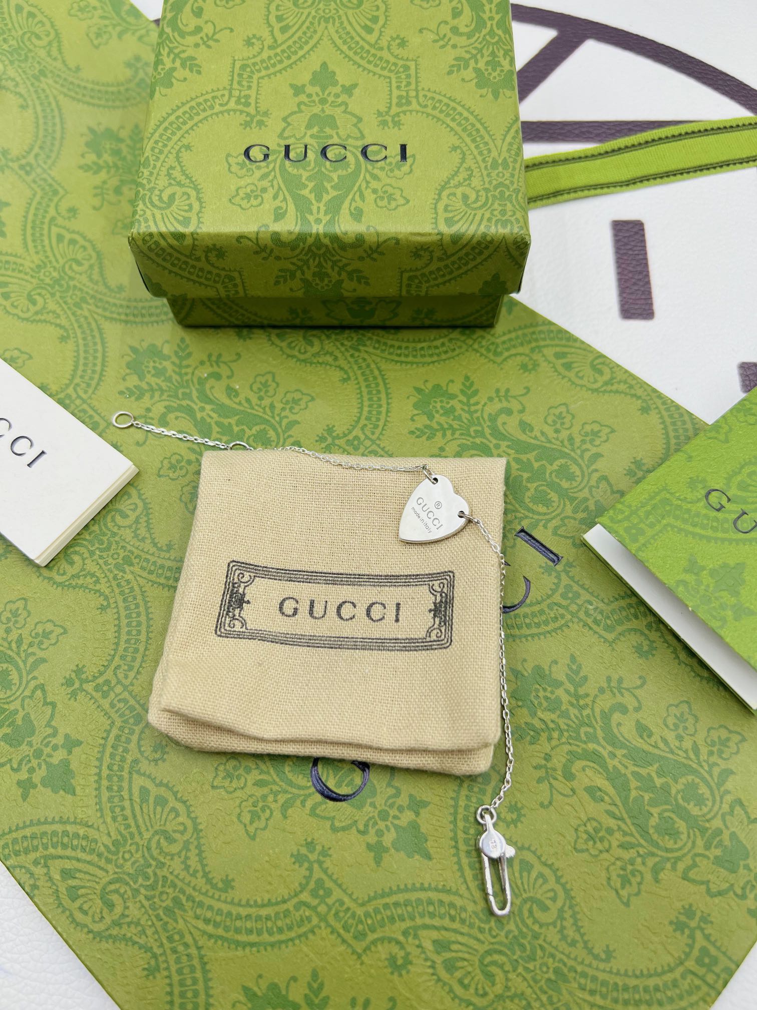 这款首饰是AAAAA 1:1 质量 (非常棒). 使用了和原版一模一样的材料. 商标部分也保持了和古奇/Gucci一样. 图片拍摄是实物首饰拍摄, 您所收到的实物保证和我们图片一模一样.