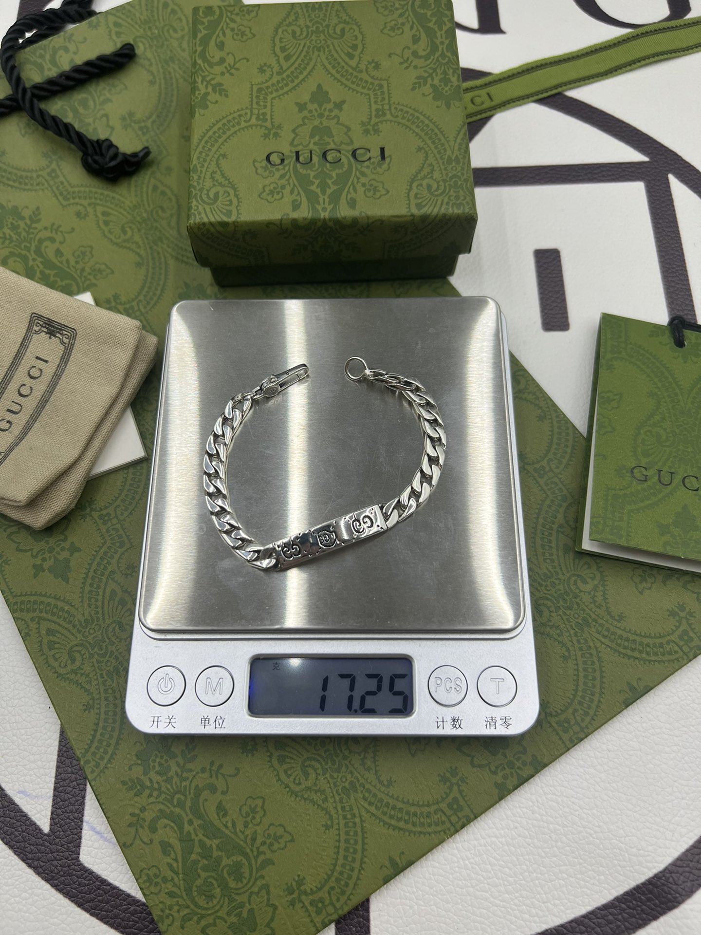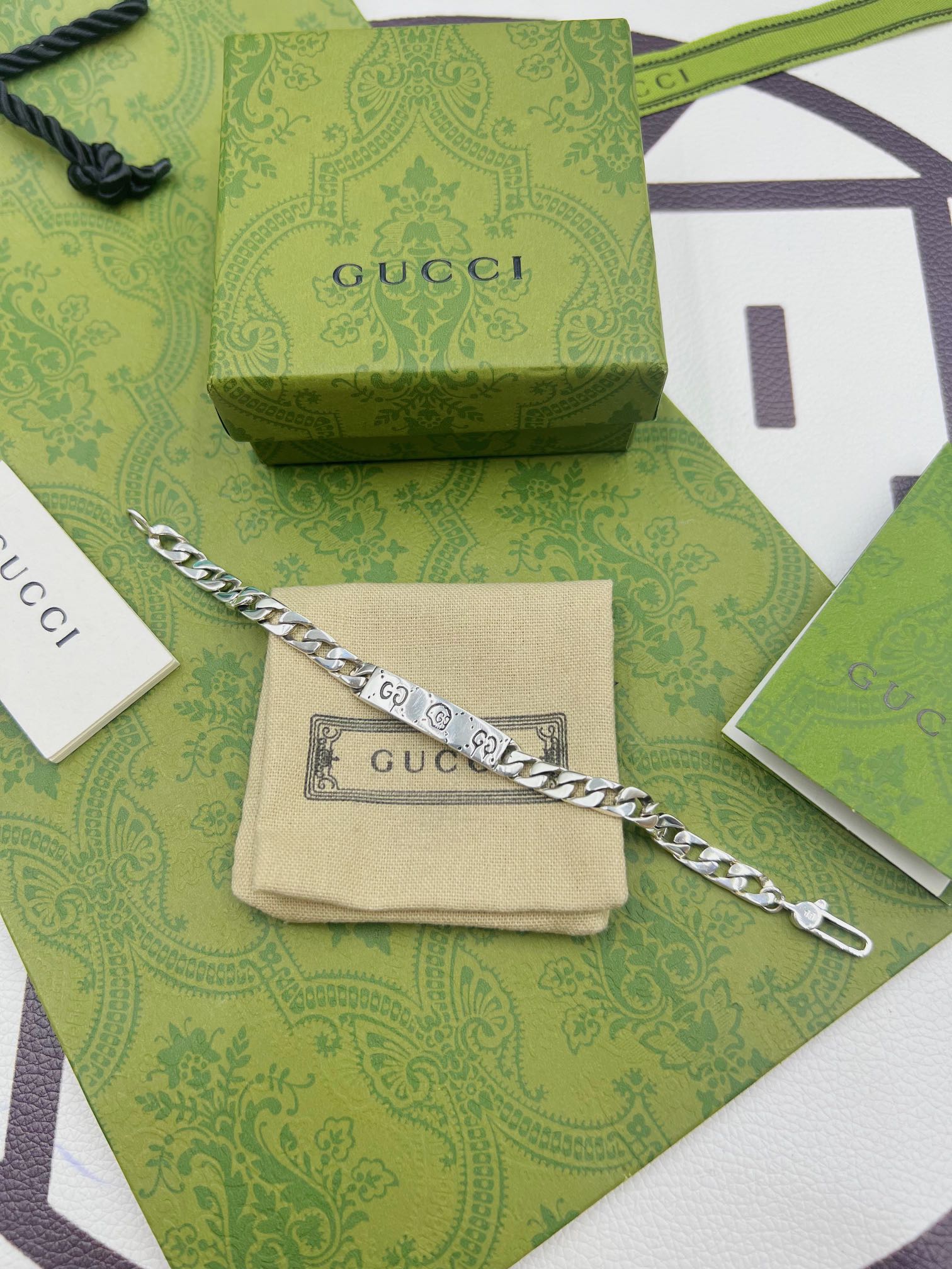 这款首饰是AAAAA 1:1 质量 (非常棒). 使用了和原版一模一样的材料. 商标部分也保持了和古奇/Gucci一样. 图片拍摄是实物首饰拍摄, 您所收到的实物保证和我们图片一模一样.