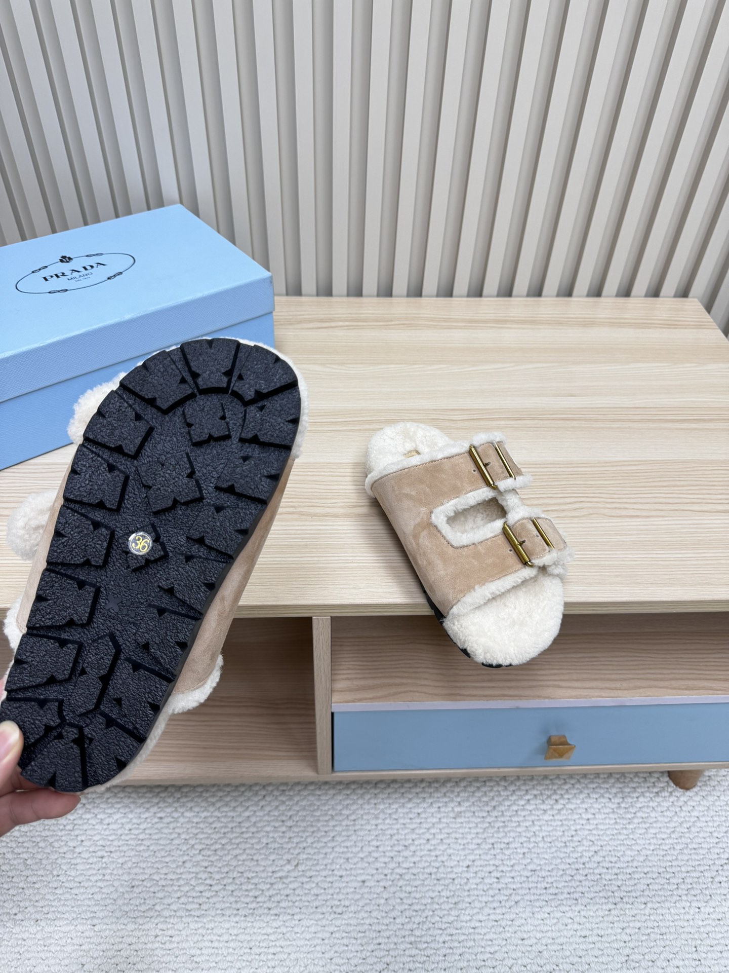 这款鞋子是AAAAA 1:1 质量 (非常棒). 使用了和原版一模一样的材料. 商标部分也保持了和普拉达/Prada一样. 图片拍摄是实物鞋子拍摄, 您所收到的实物保证和我们图片一模一样.