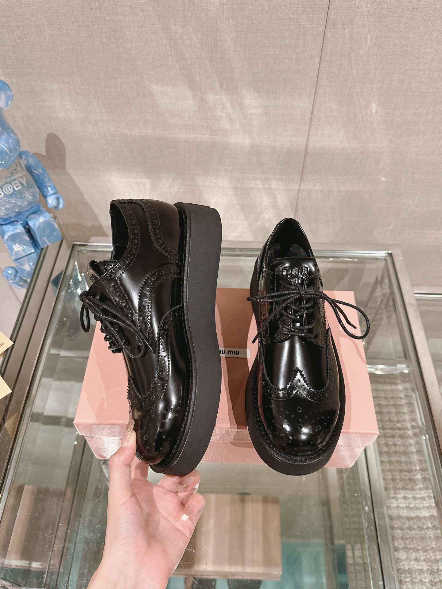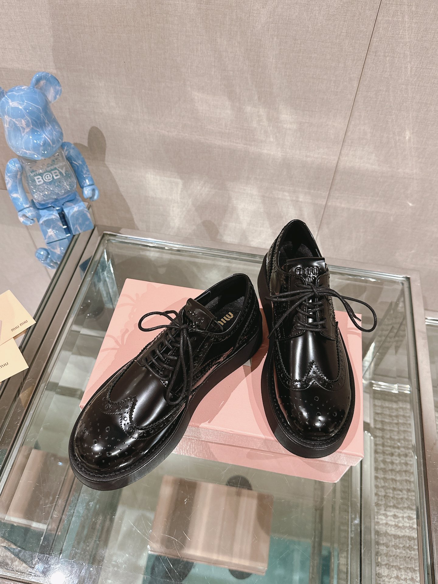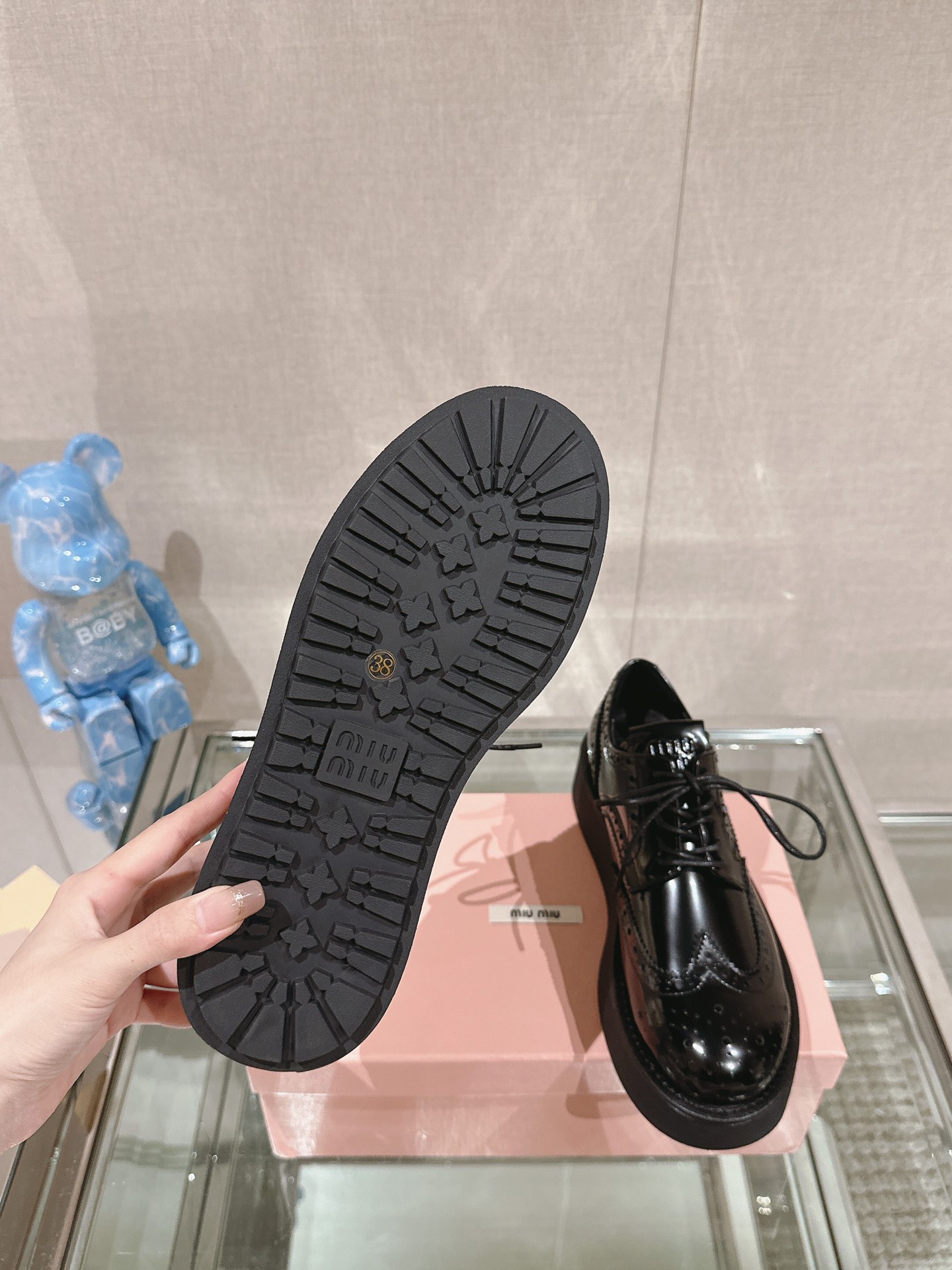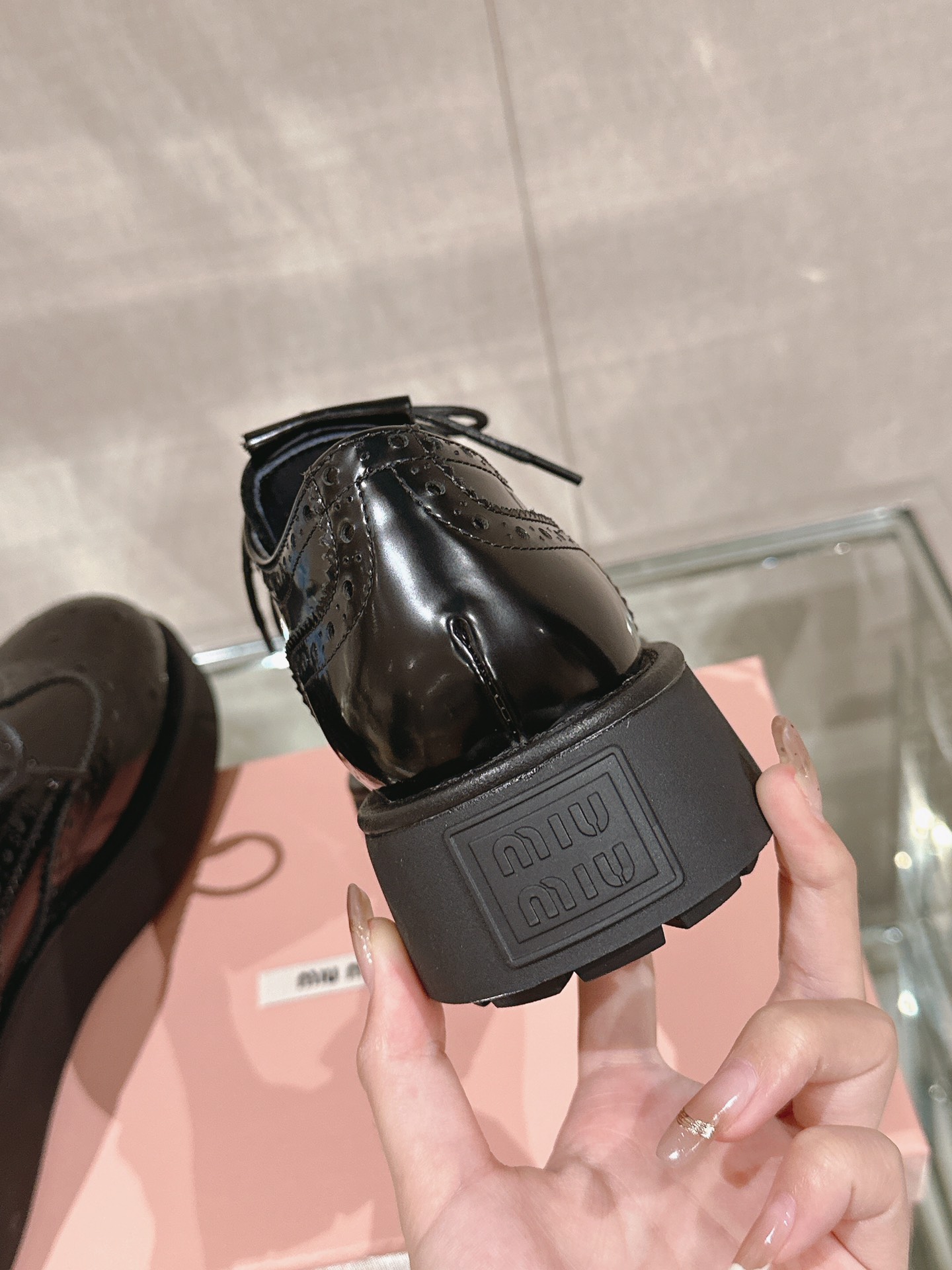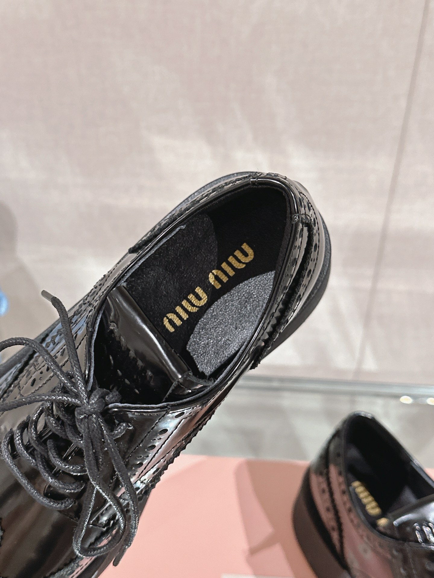这款鞋子是AAAAA 1:1 质量 (非常棒). 使用了和原版一模一样的材料. 商标部分也保持了和缪缪/Miu Miu一样. 图片拍摄是实物鞋子拍摄, 您所收到的实物保证和我们图片一模一样.