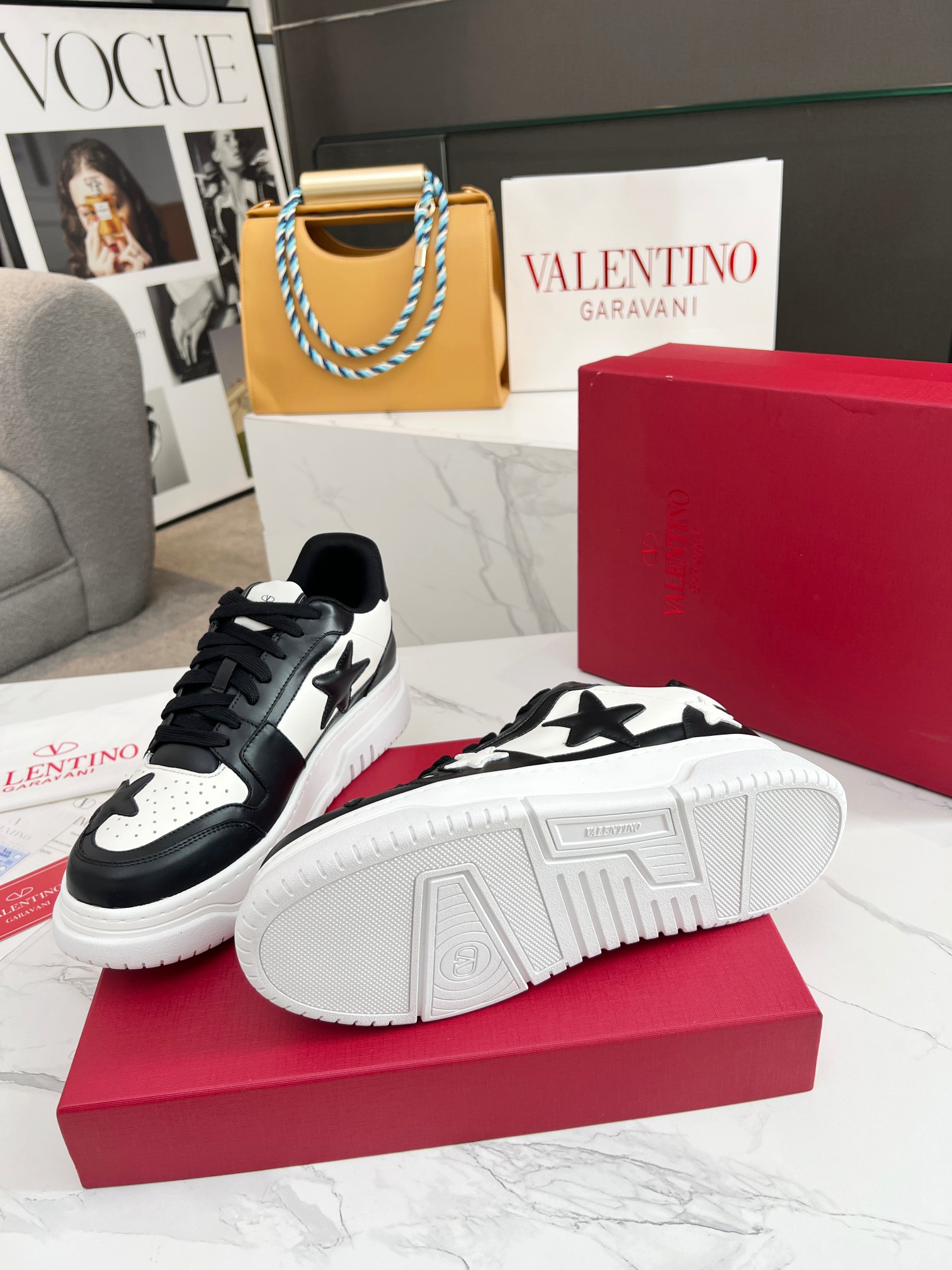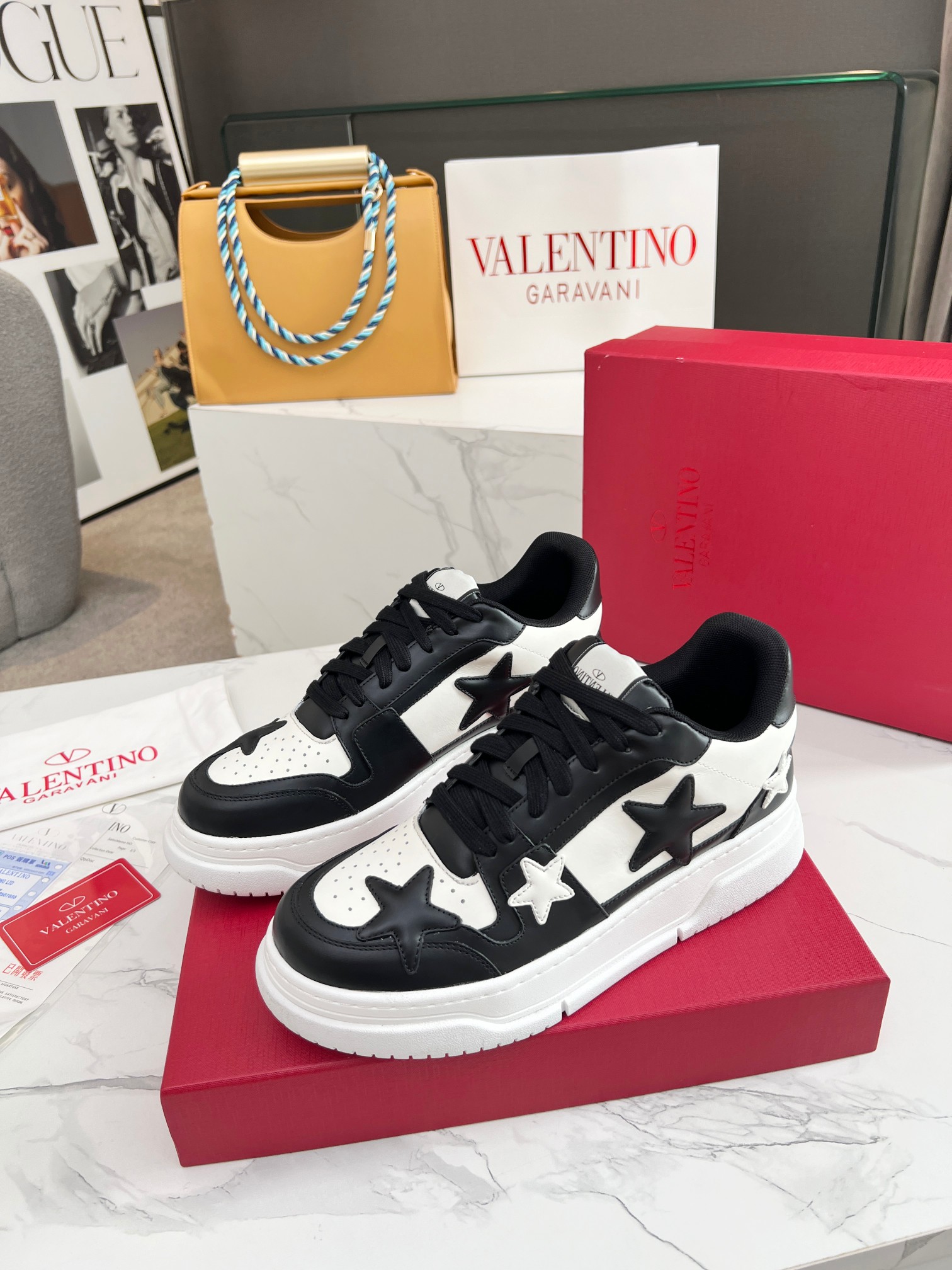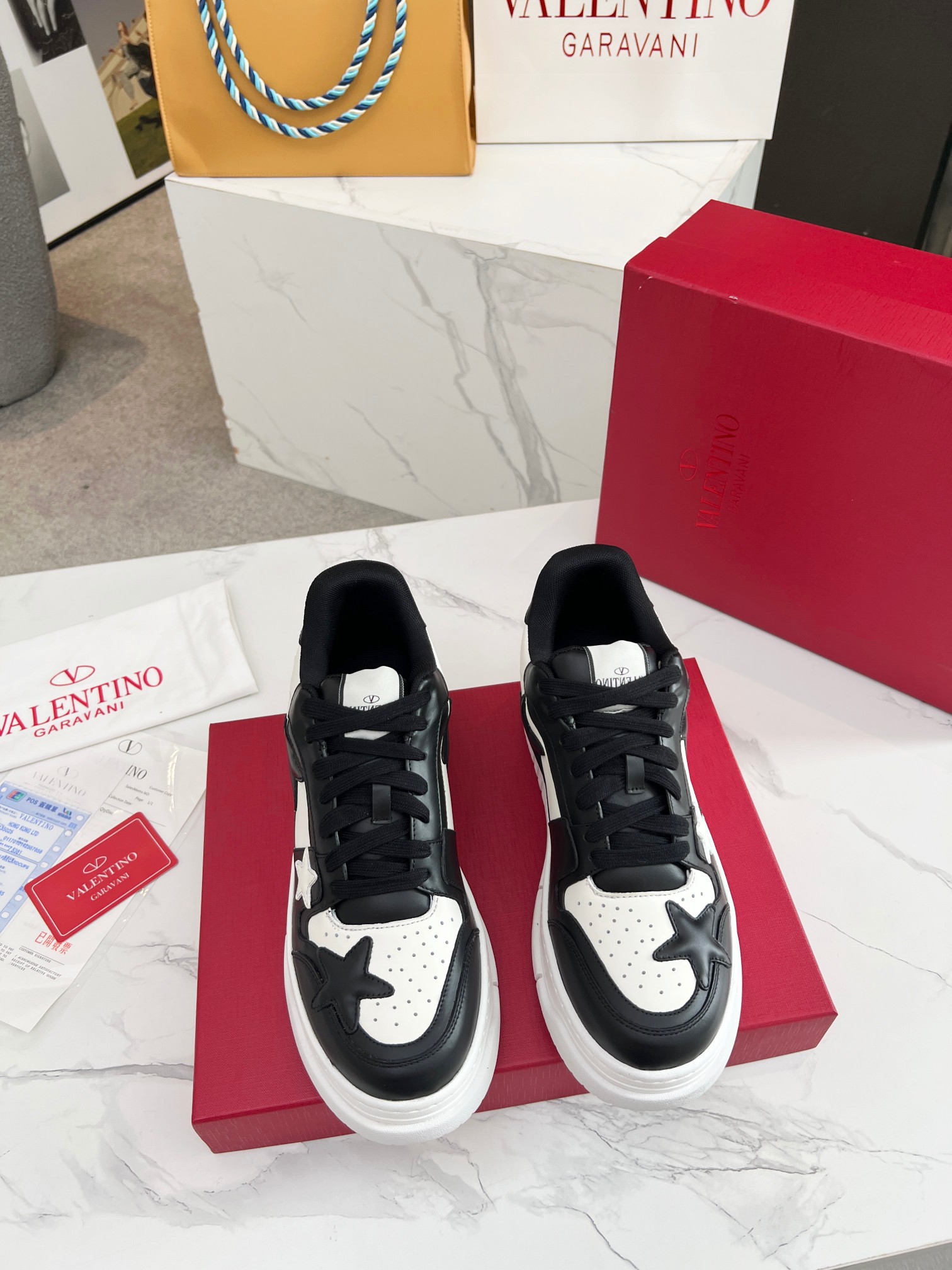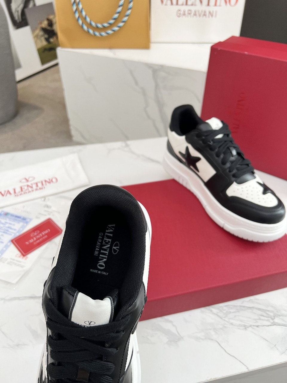 这款鞋子是AAAAA 1:1 质量 (非常棒). 使用了和原版一模一样的材料. 商标部分也保持了和华伦天奴/Valentino一样. 图片拍摄是实物鞋子拍摄, 您所收到的实物保证和我们图片一模一样.