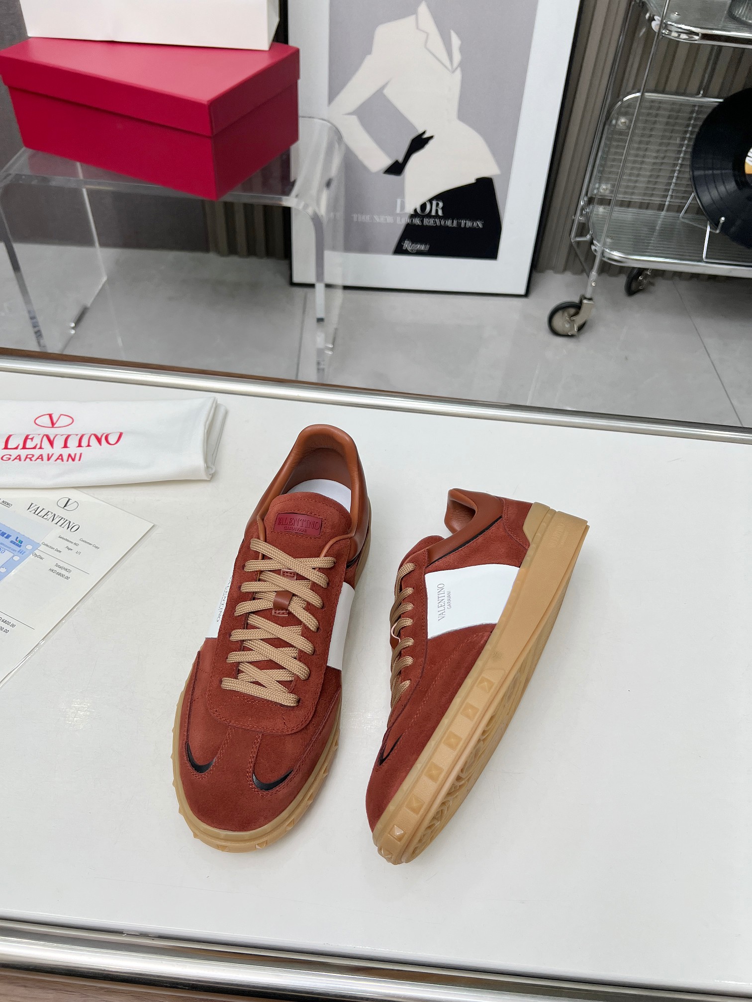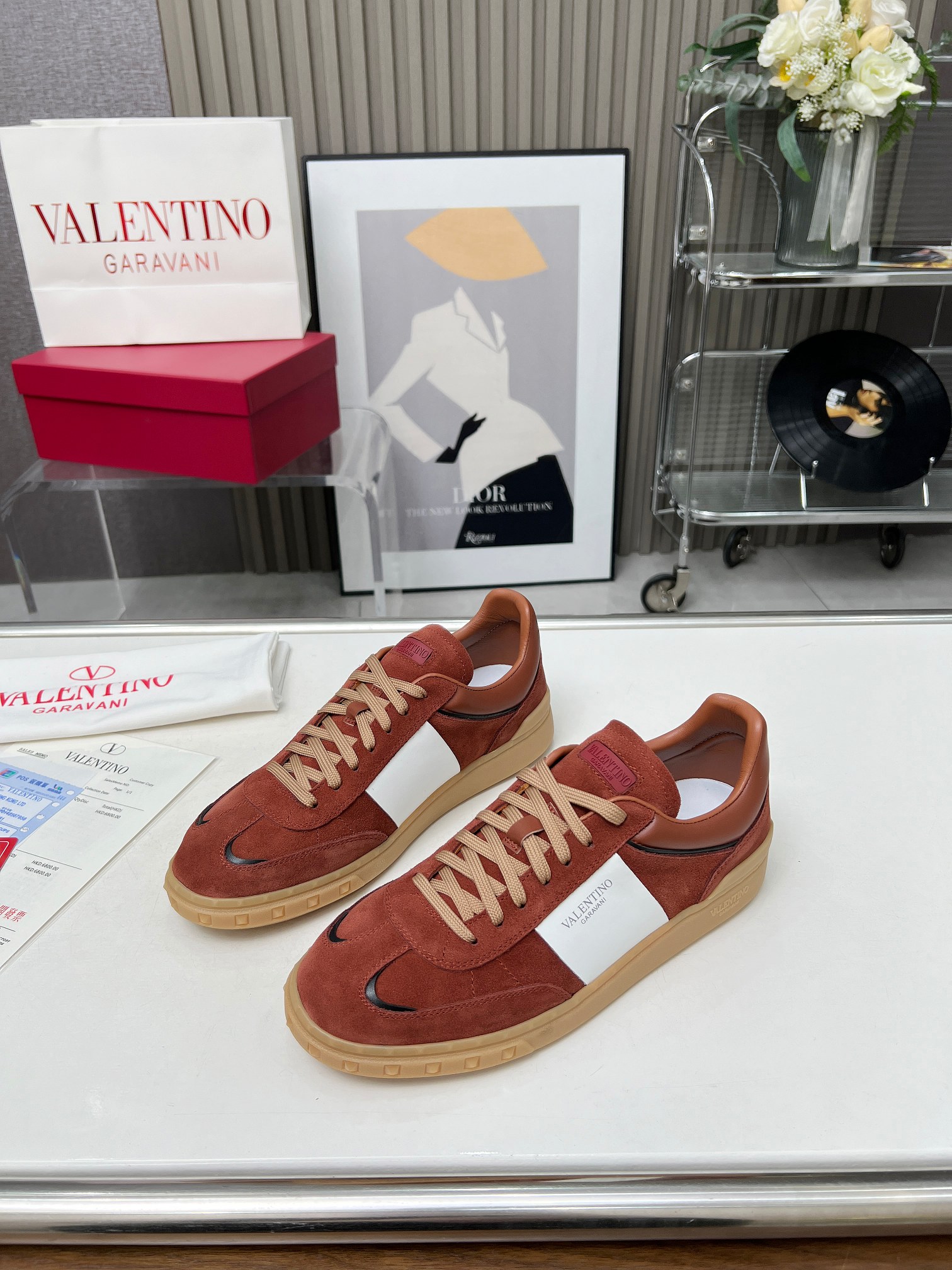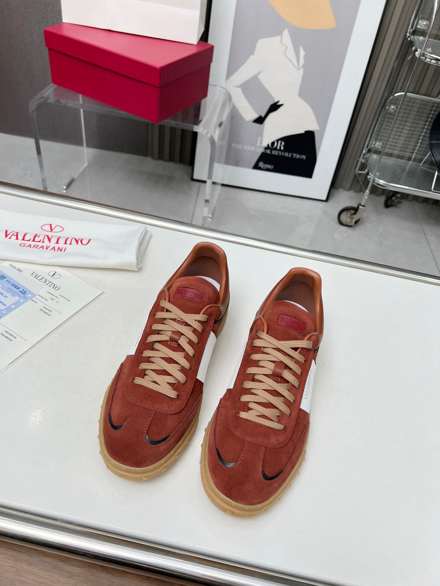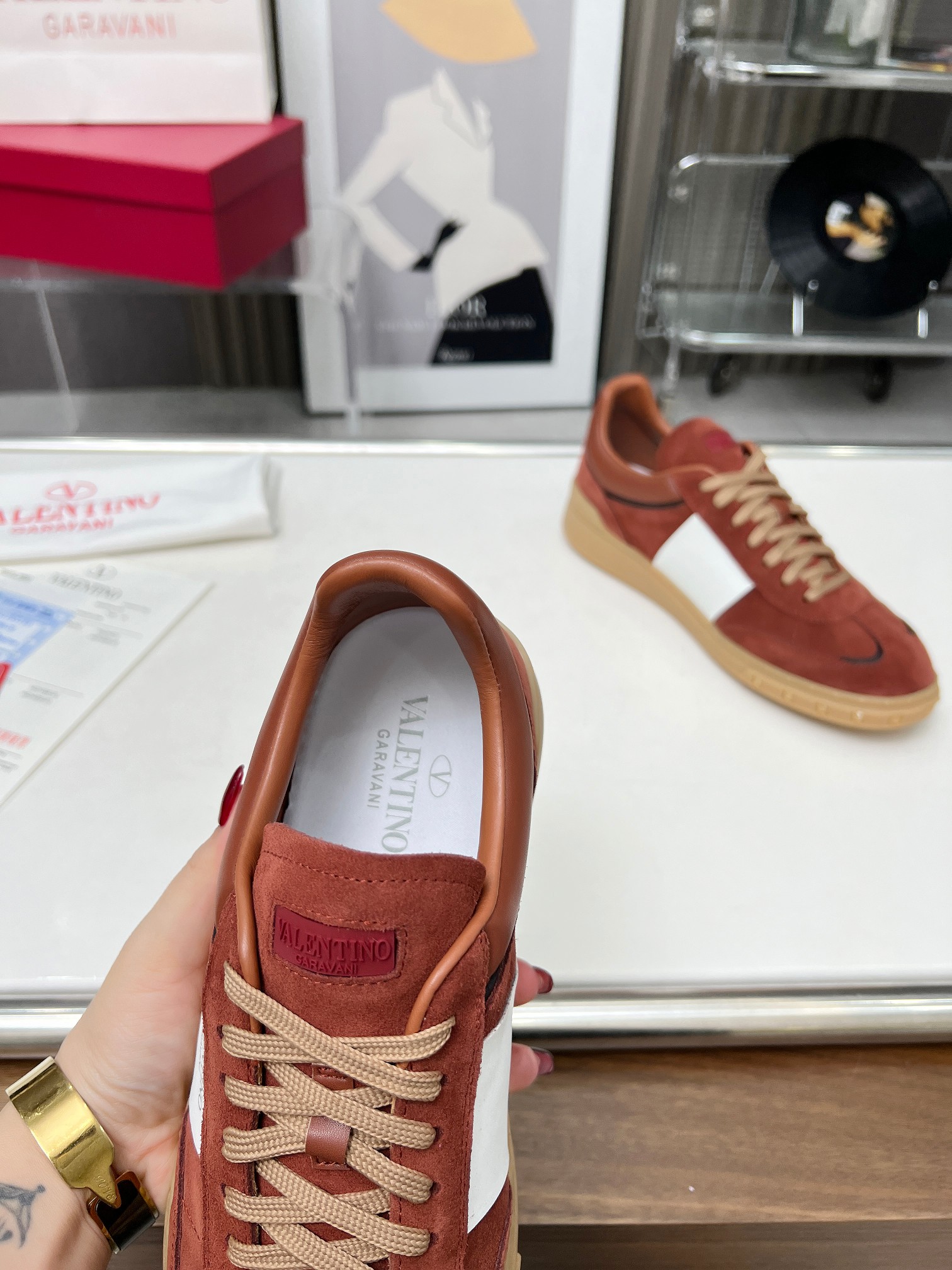 这款鞋子是AAAAA 1:1 质量 (非常棒). 使用了和原版一模一样的材料. 商标部分也保持了和华伦天奴/Valentino一样. 图片拍摄是实物鞋子拍摄, 您所收到的实物保证和我们图片一模一样.