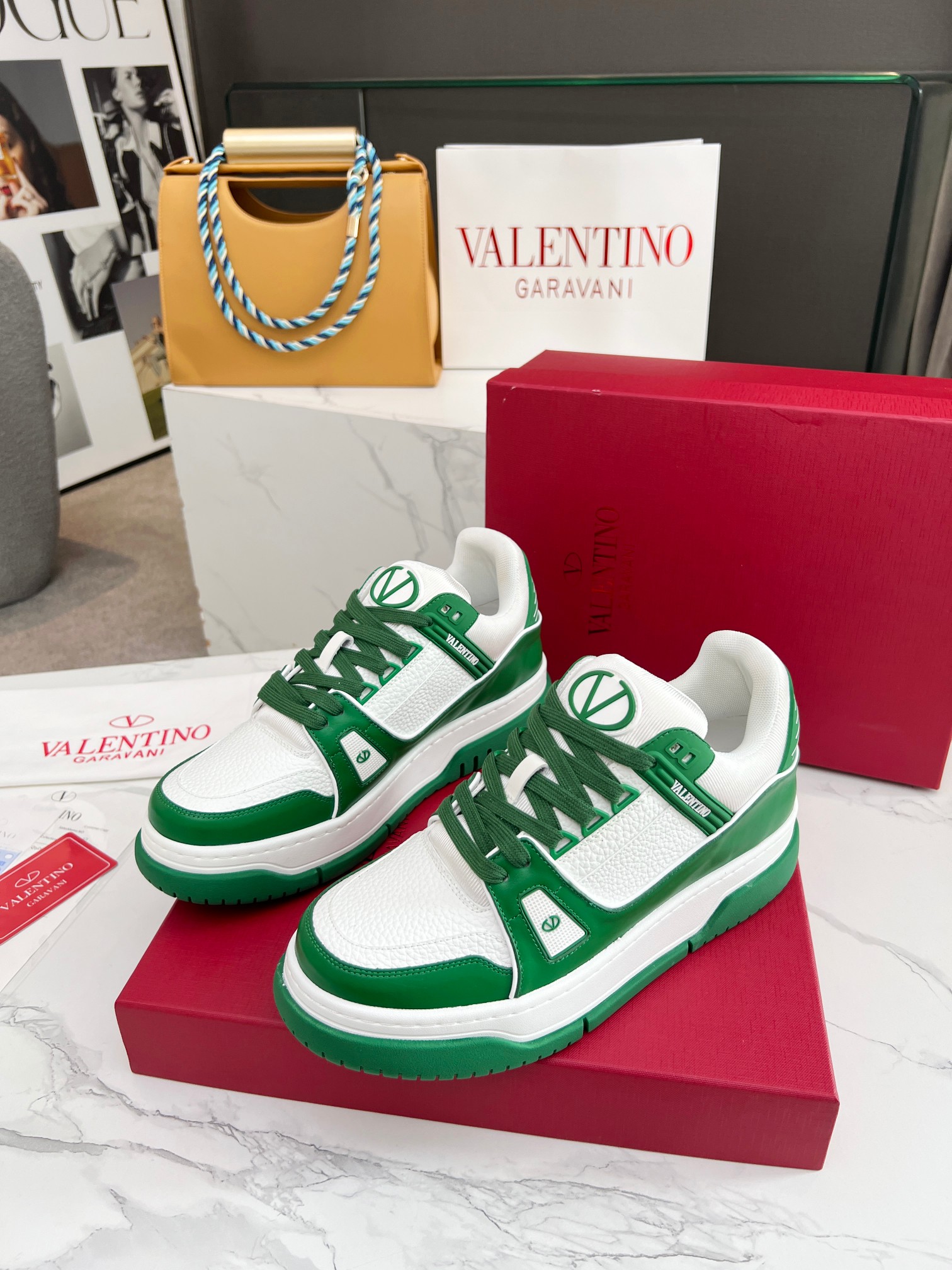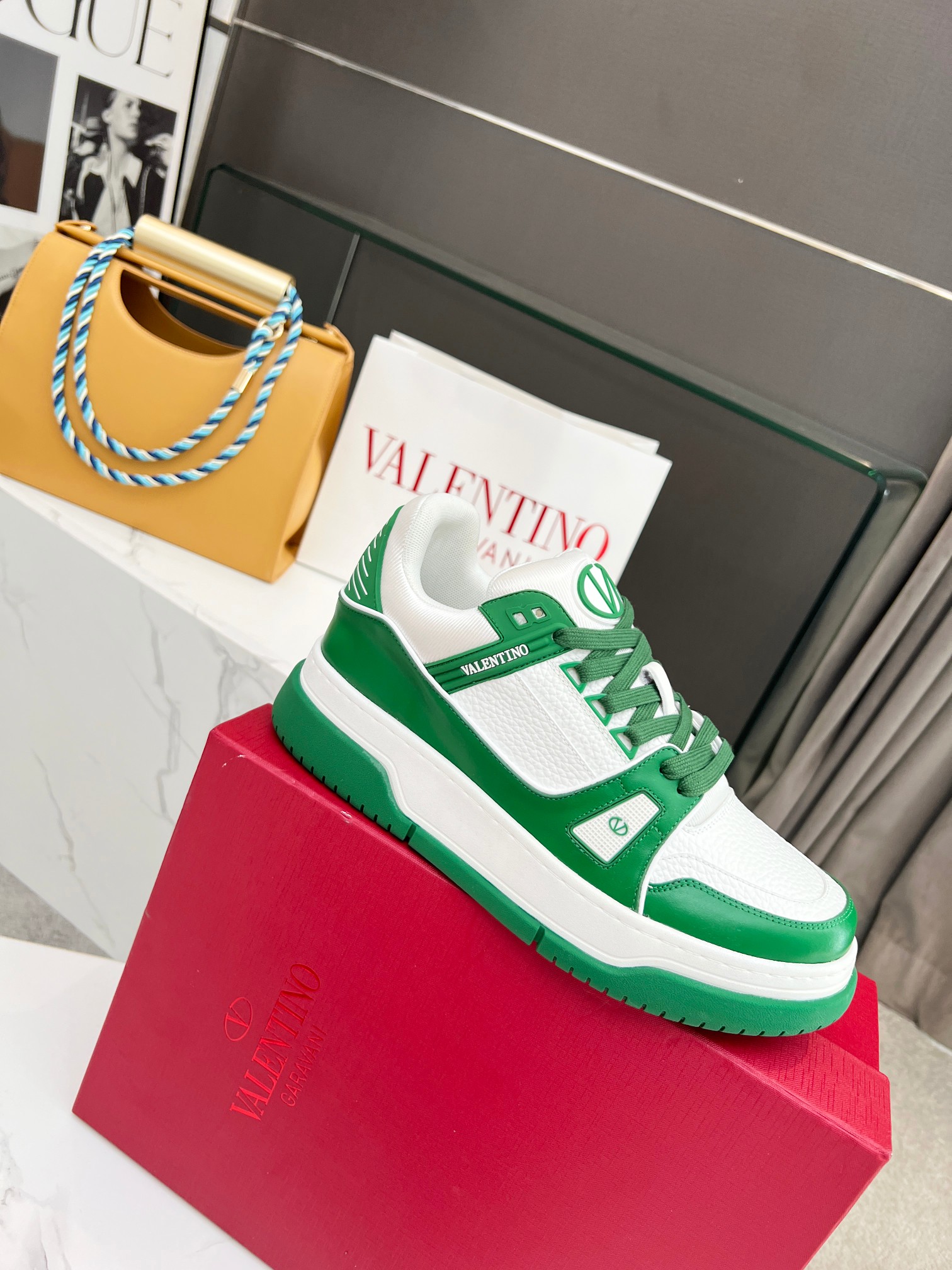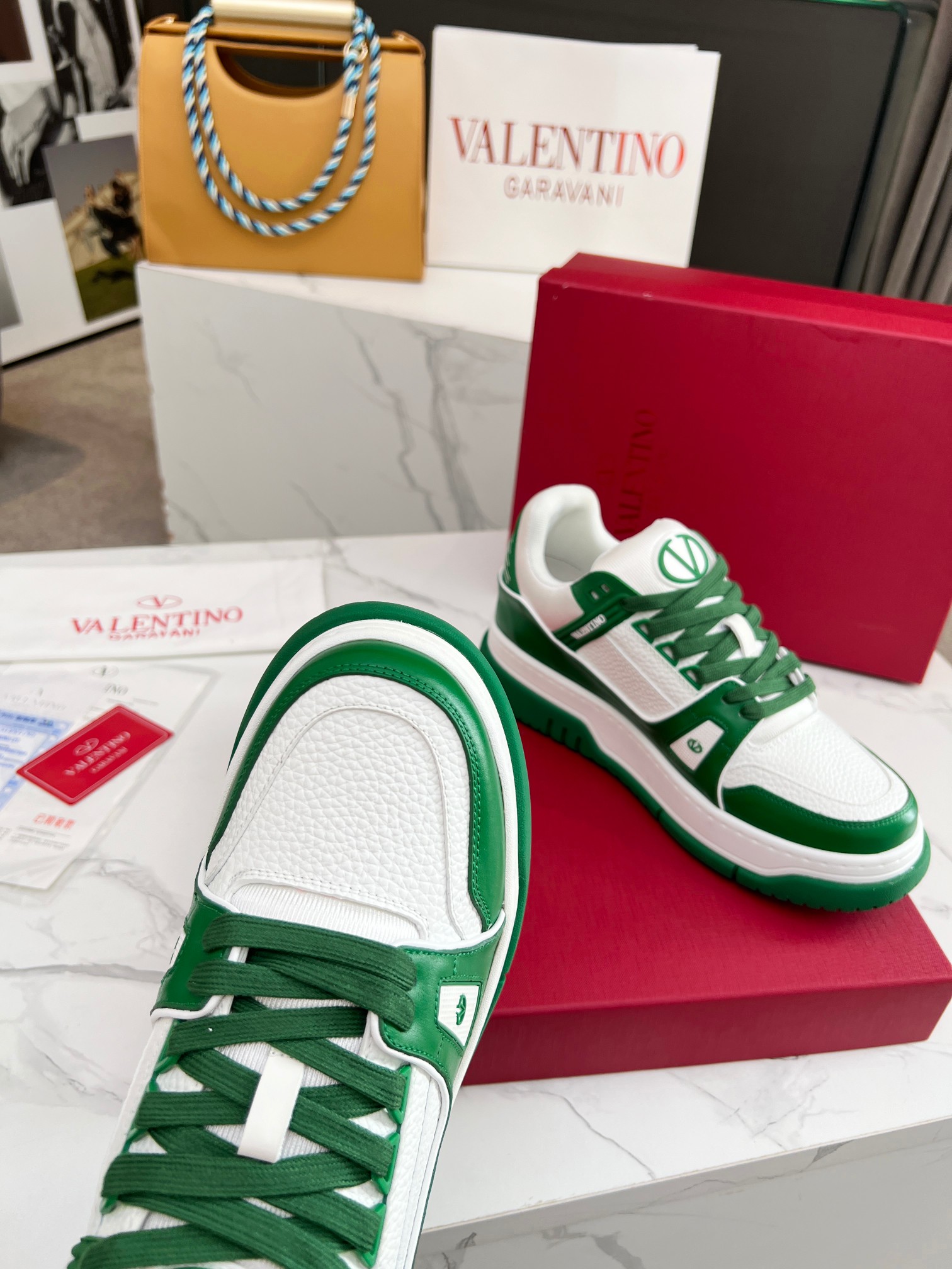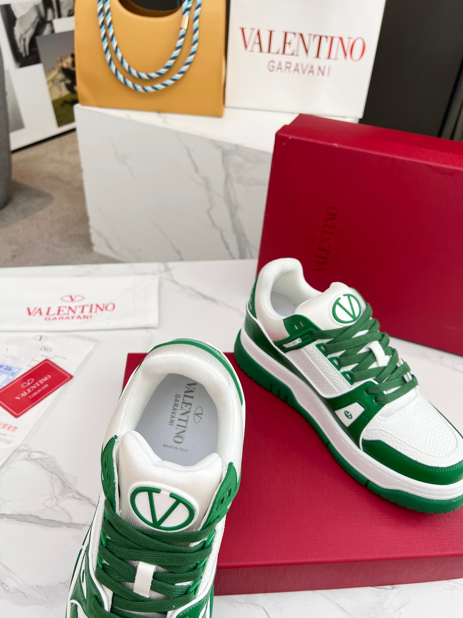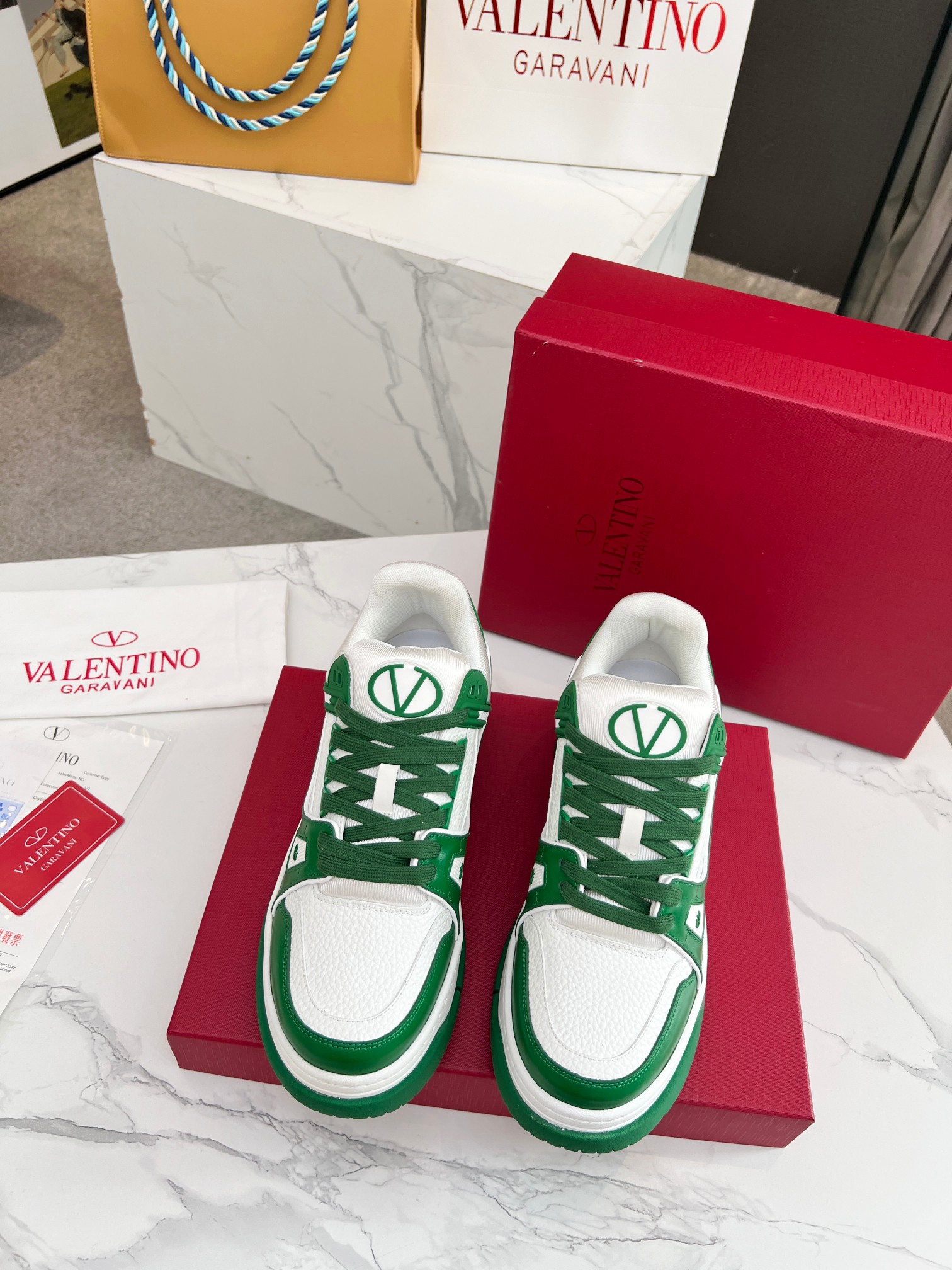 这款鞋子是AAAAA 1:1 质量 (非常棒). 使用了和原版一模一样的材料. 商标部分也保持了和华伦天奴/Valentino一样. 图片拍摄是实物鞋子拍摄, 您所收到的实物保证和我们图片一模一样.