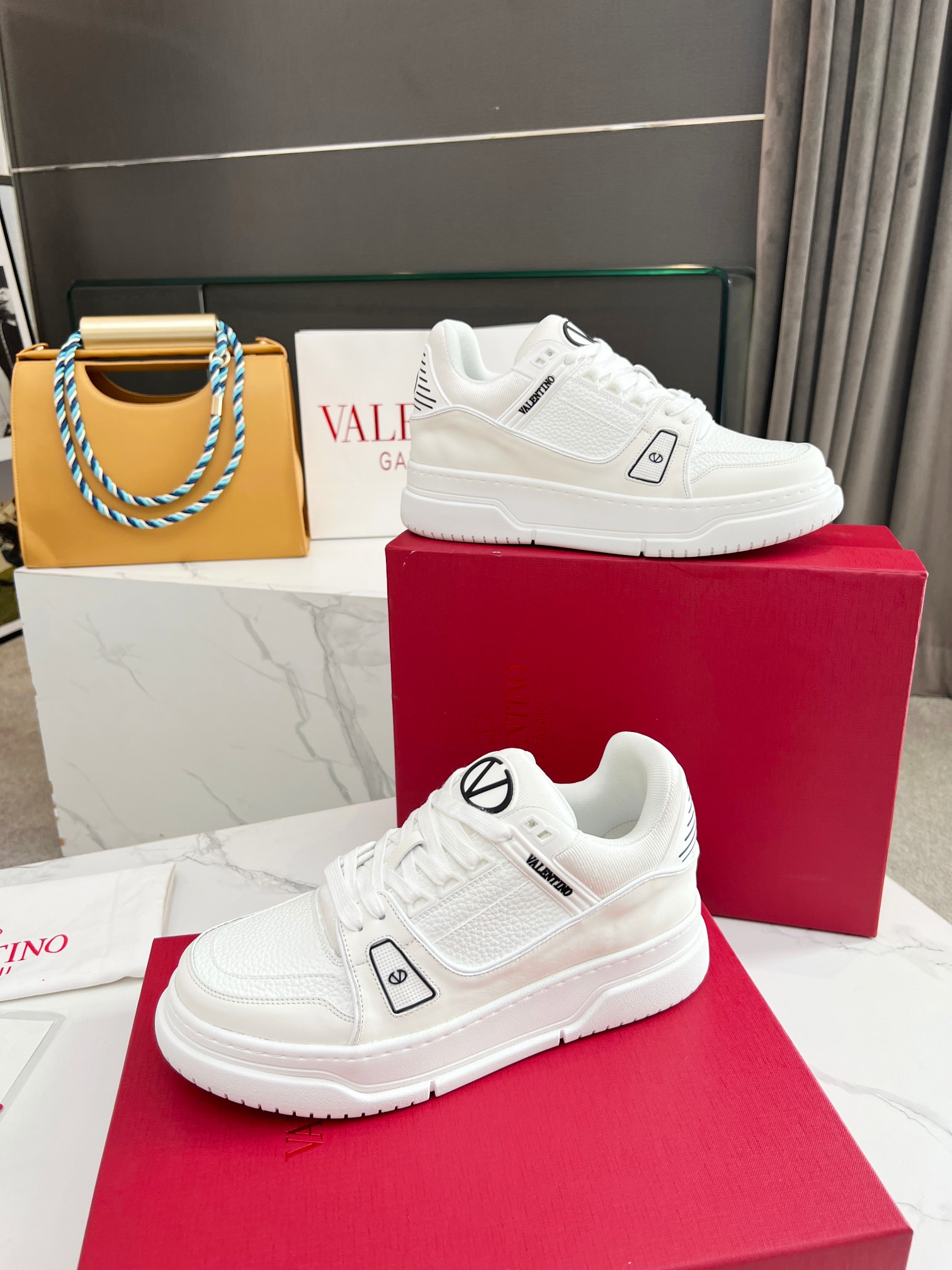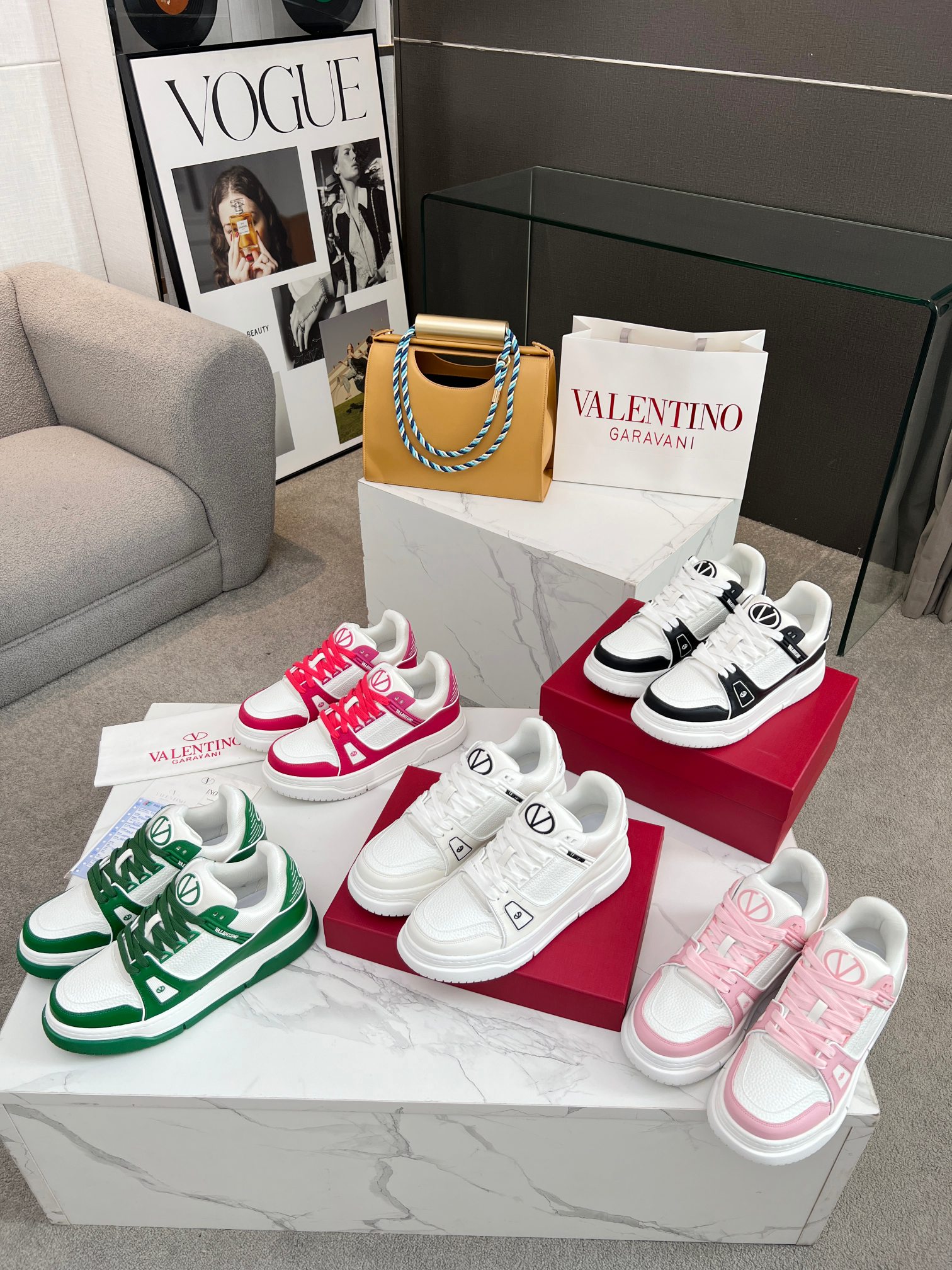 这款鞋子是AAAAA 1:1 质量 (非常棒). 使用了和原版一模一样的材料. 商标部分也保持了和华伦天奴/Valentino一样. 图片拍摄是实物鞋子拍摄, 您所收到的实物保证和我们图片一模一样.