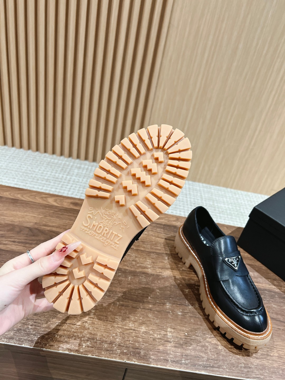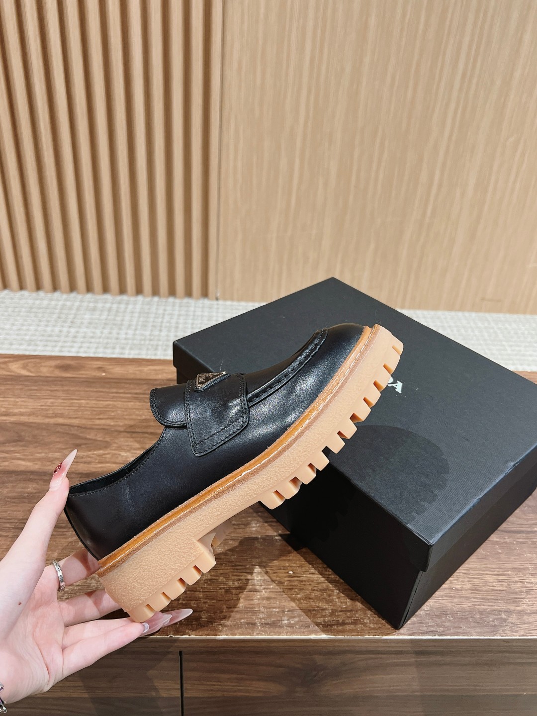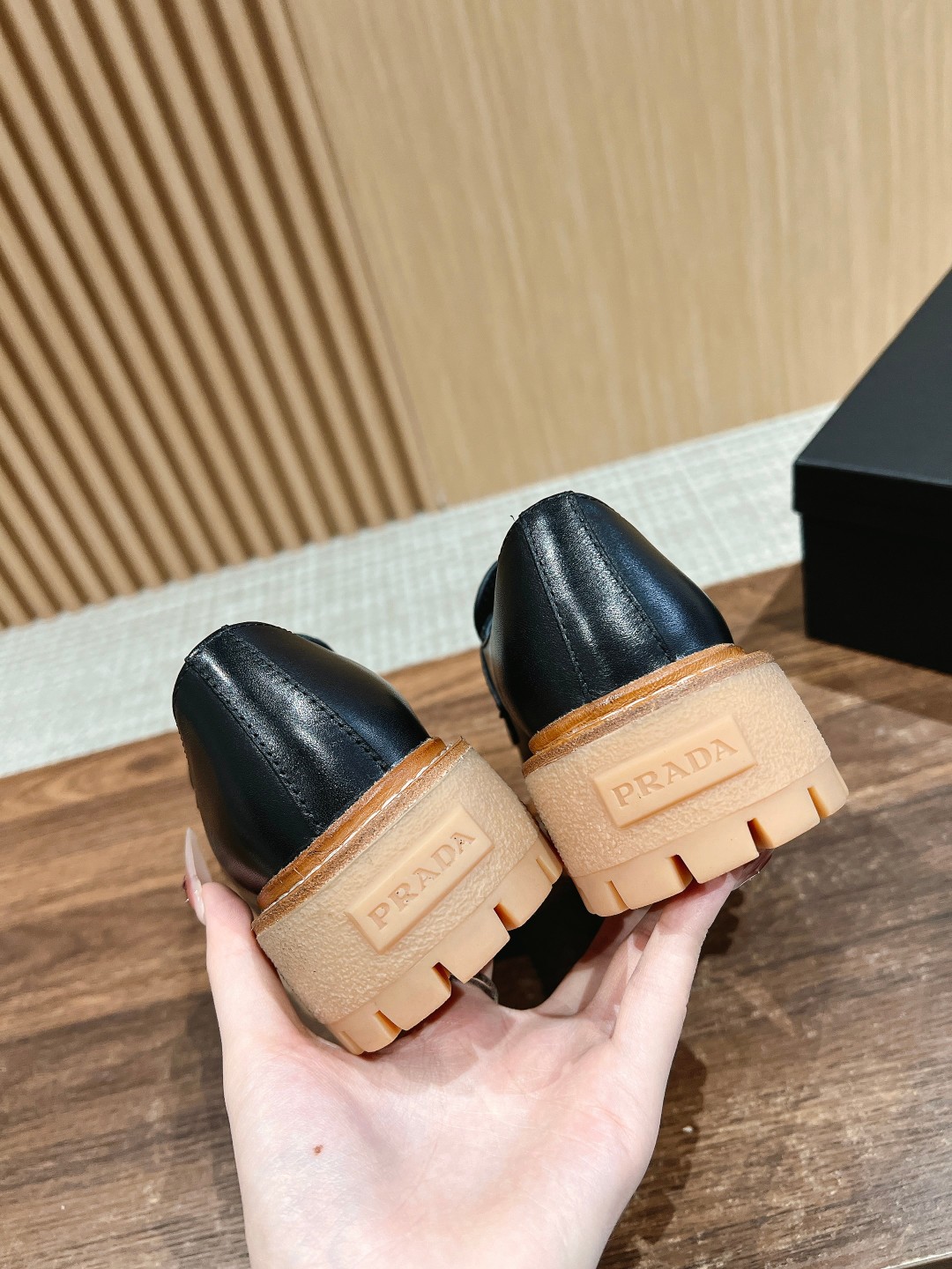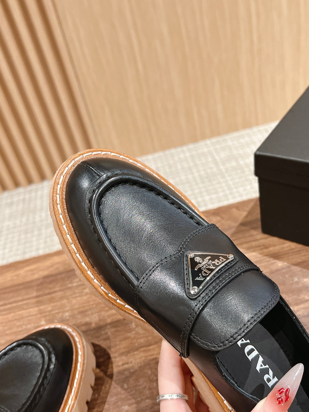 这款鞋子是AAAAA 1:1 质量 (非常棒). 使用了和原版一模一样的材料. 商标部分也保持了和普拉达/Prada一样. 图片拍摄是实物鞋子拍摄, 您所收到的实物保证和我们图片一模一样.