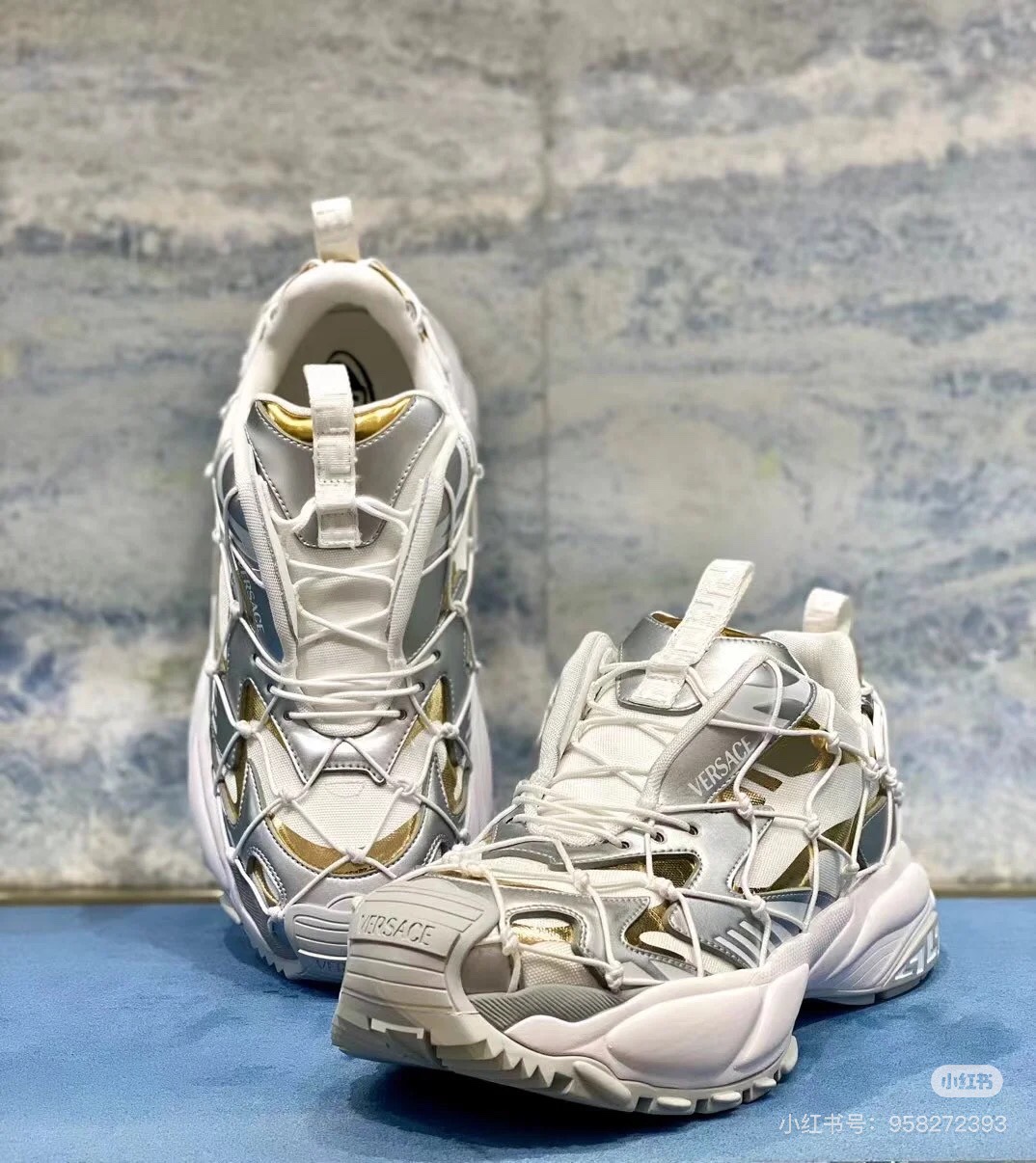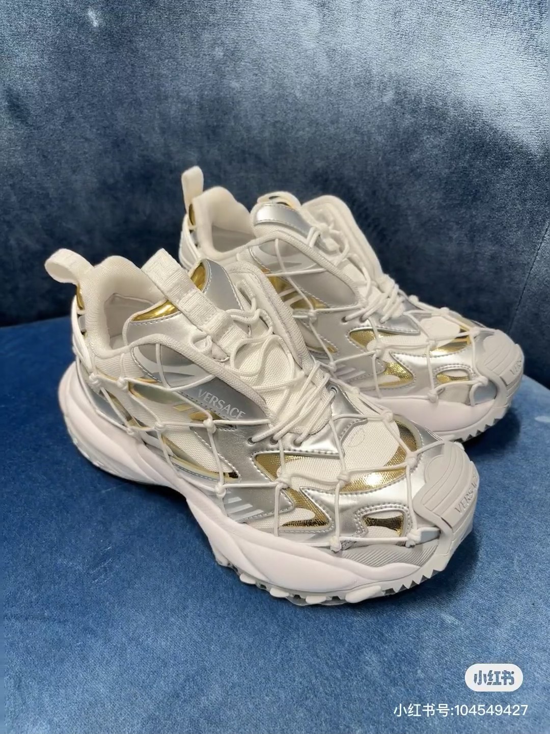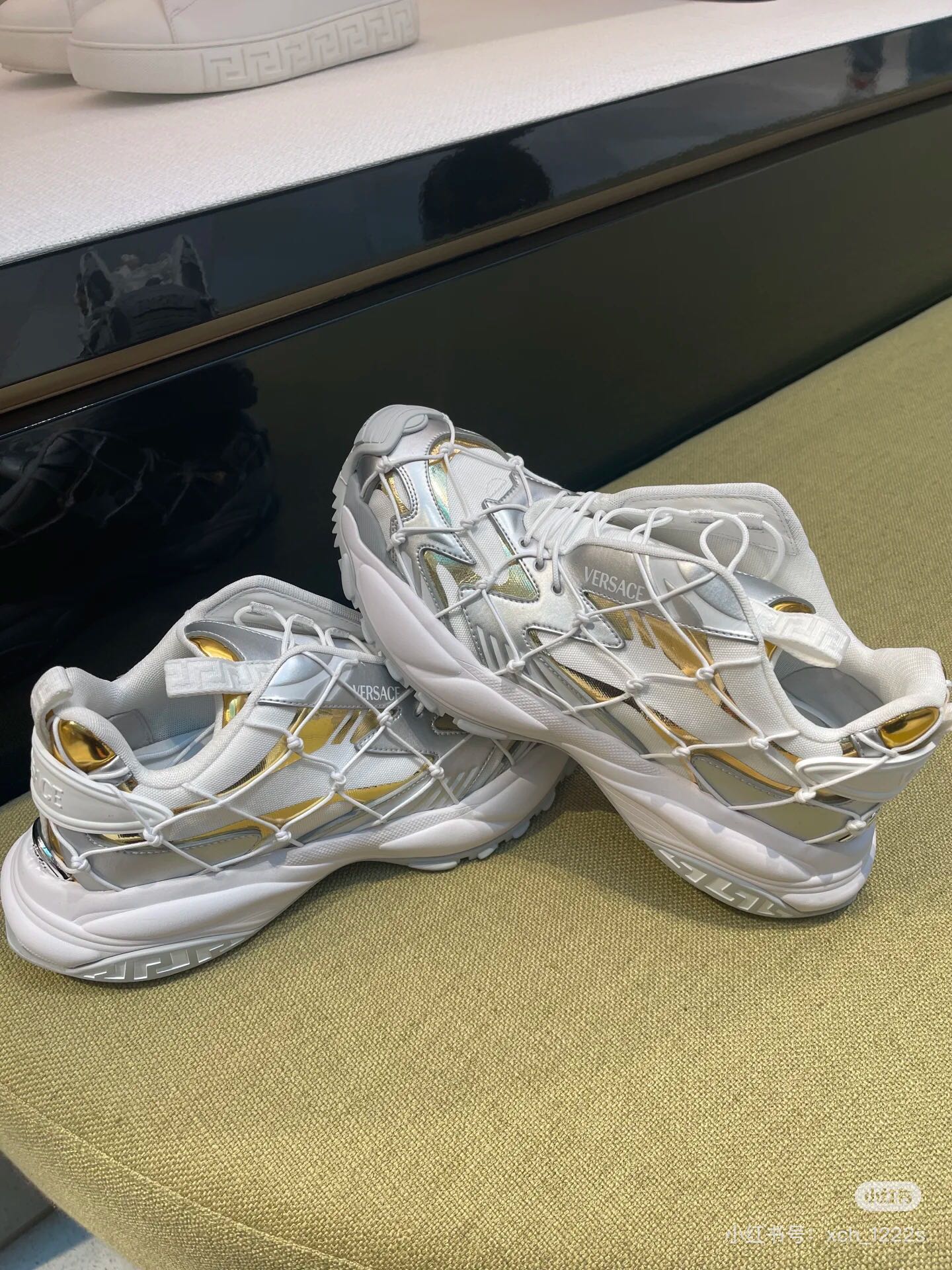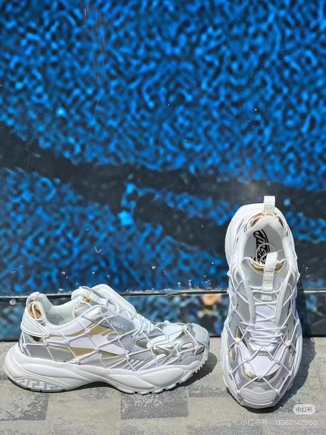 这款鞋子是AAAAA 1:1 质量 (非常棒). 使用了和原版一模一样的材料. 商标部分也保持了和范思哲/Versace一样. 图片拍摄是实物鞋子拍摄, 您所收到的实物保证和我们图片一模一样.