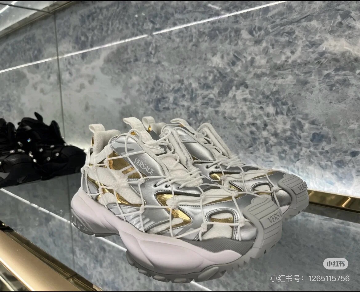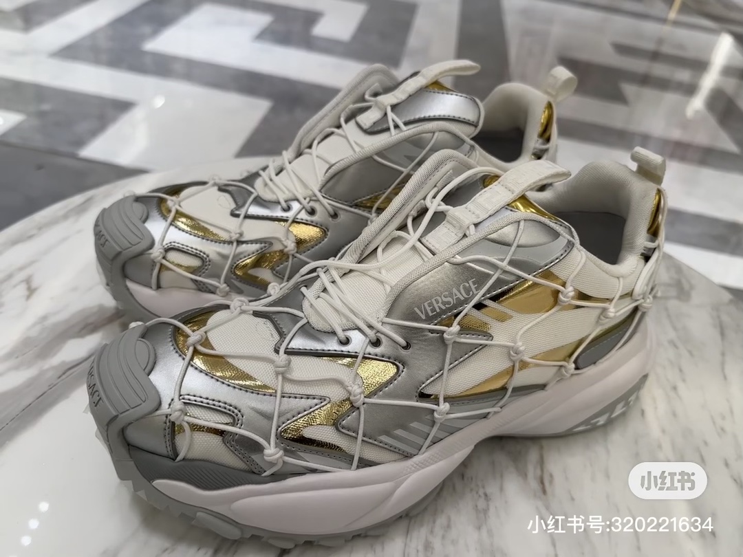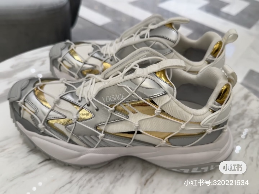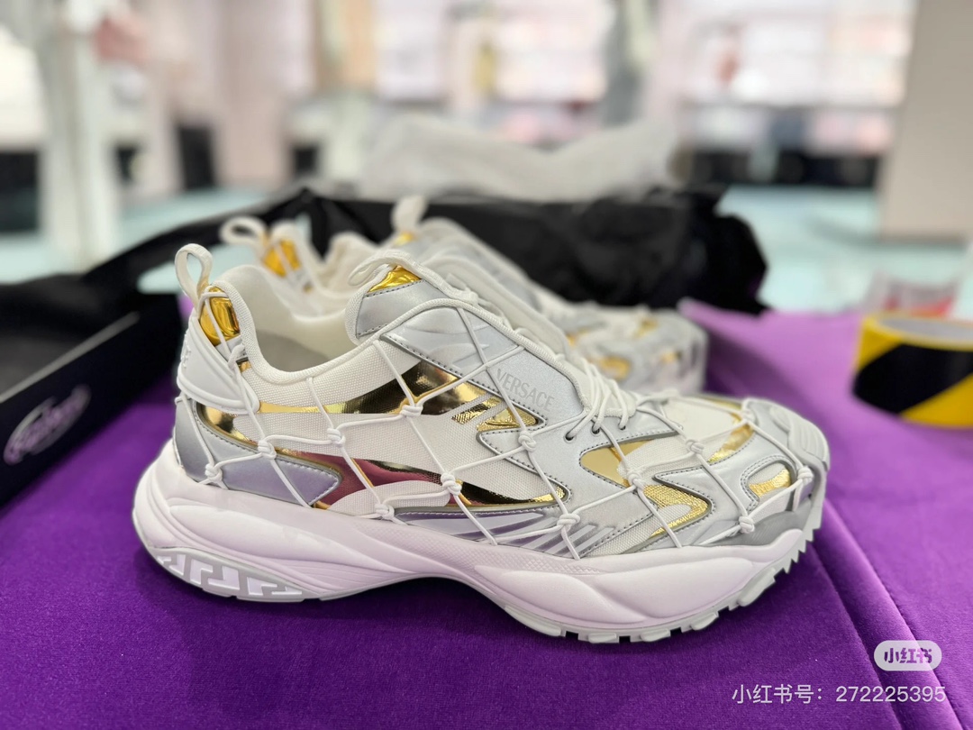 这款鞋子是AAAAA 1:1 质量 (非常棒). 使用了和原版一模一样的材料. 商标部分也保持了和范思哲/Versace一样. 图片拍摄是实物鞋子拍摄, 您所收到的实物保证和我们图片一模一样.