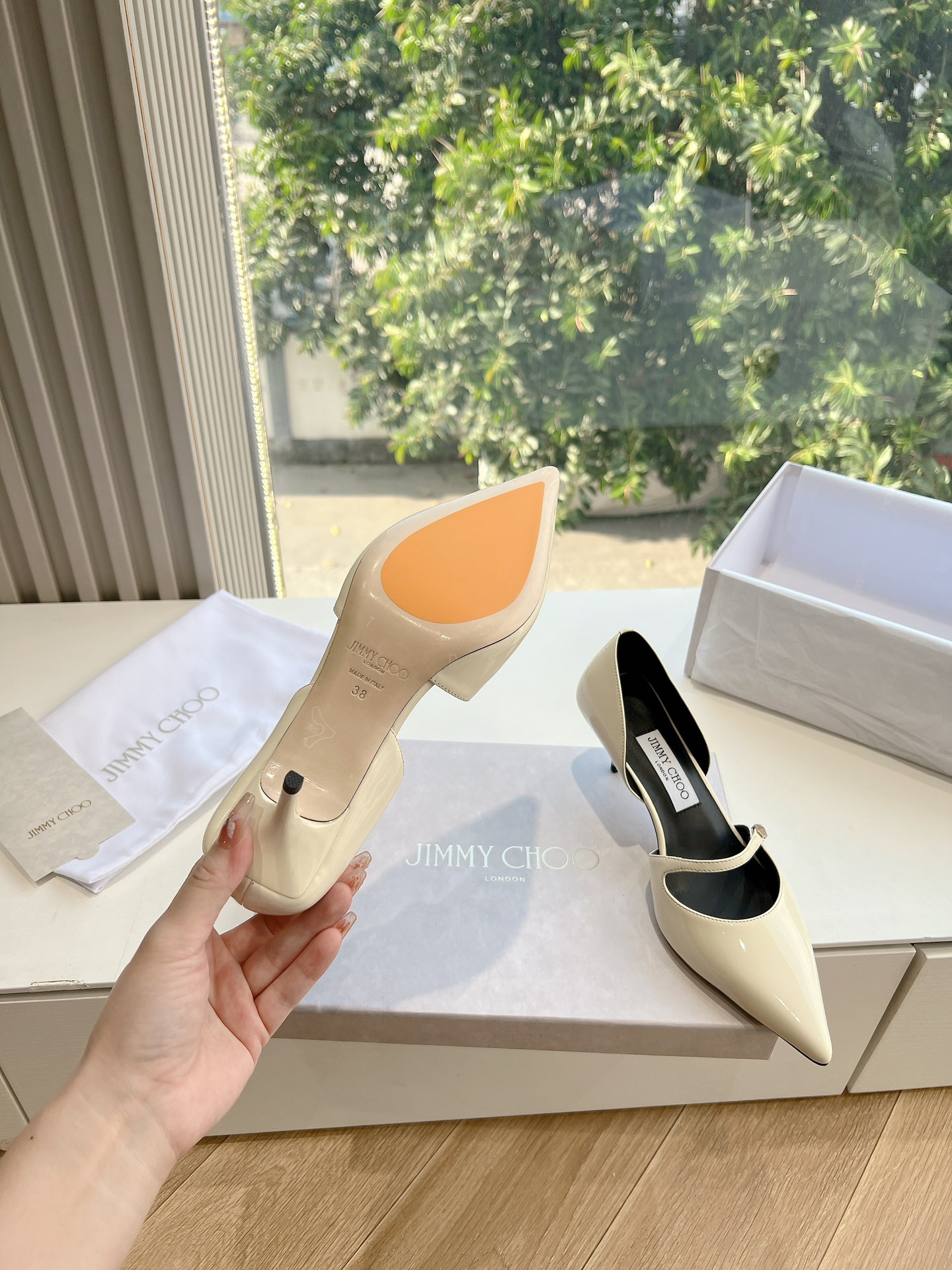 这款鞋子是AAAAA 1:1 质量 (非常棒). 使用了和原版一模一样的材料. 商标部分也保持了和吉米乔/JIMMY CHOO一样. 图片拍摄是实物鞋子拍摄, 您所收到的实物保证和我们图片一模一样.