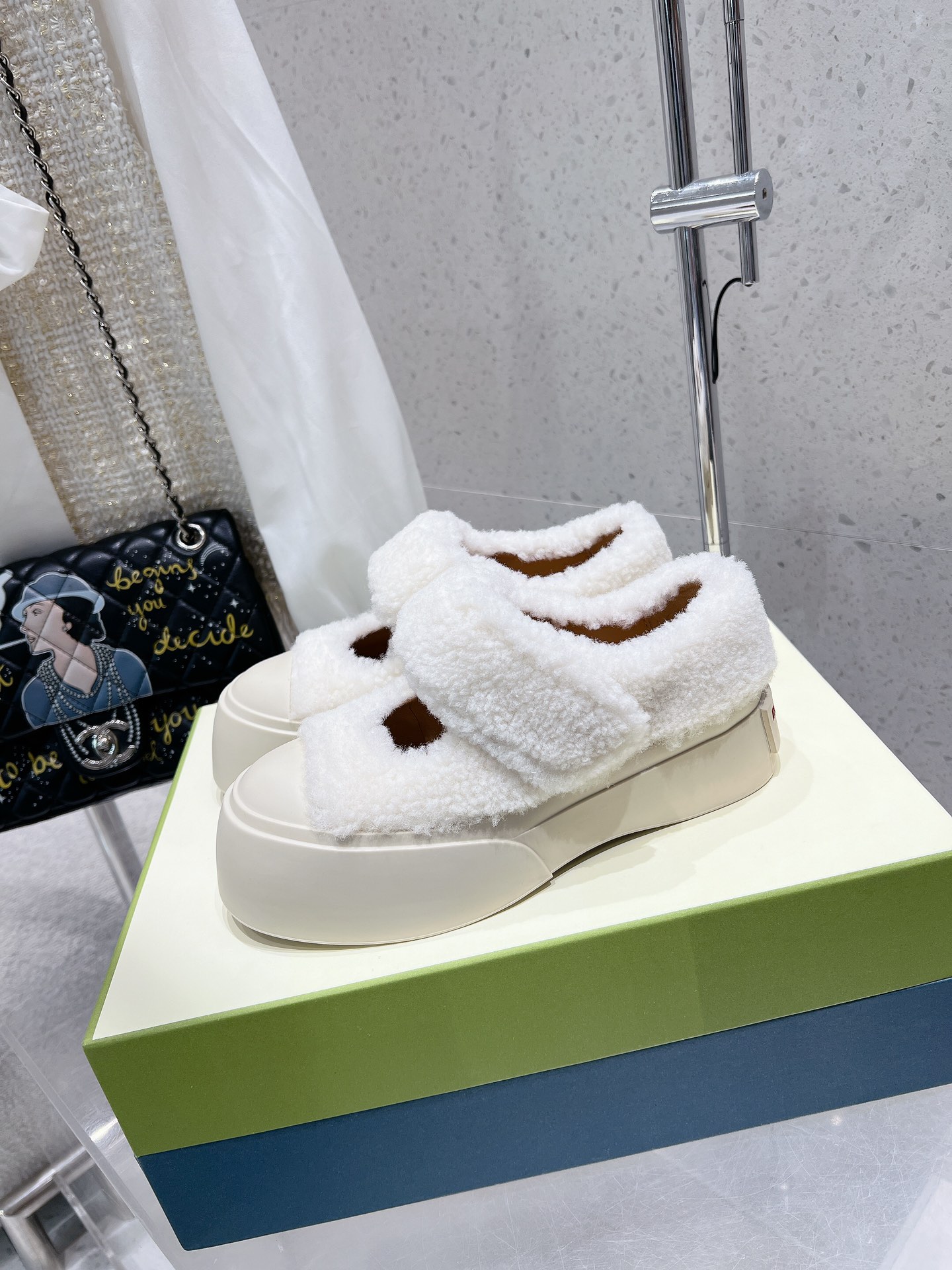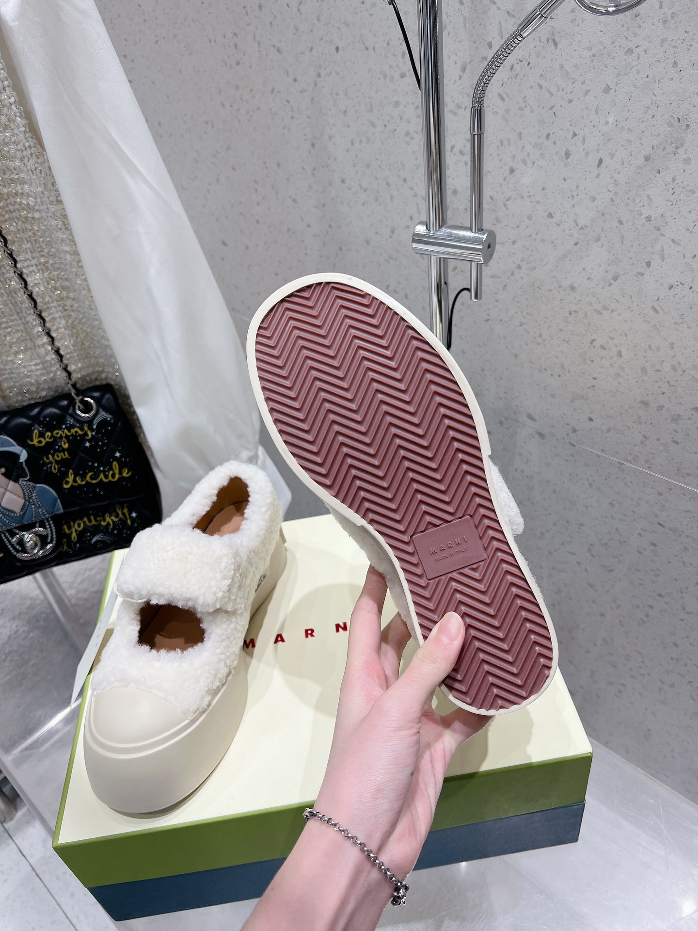 这款鞋子是AAAAA 1:1 质量 (非常棒). 使用了和原版一模一样的材料. 商标部分也保持了和马尔尼/Marni一样. 图片拍摄是实物鞋子拍摄, 您所收到的实物保证和我们图片一模一样.
