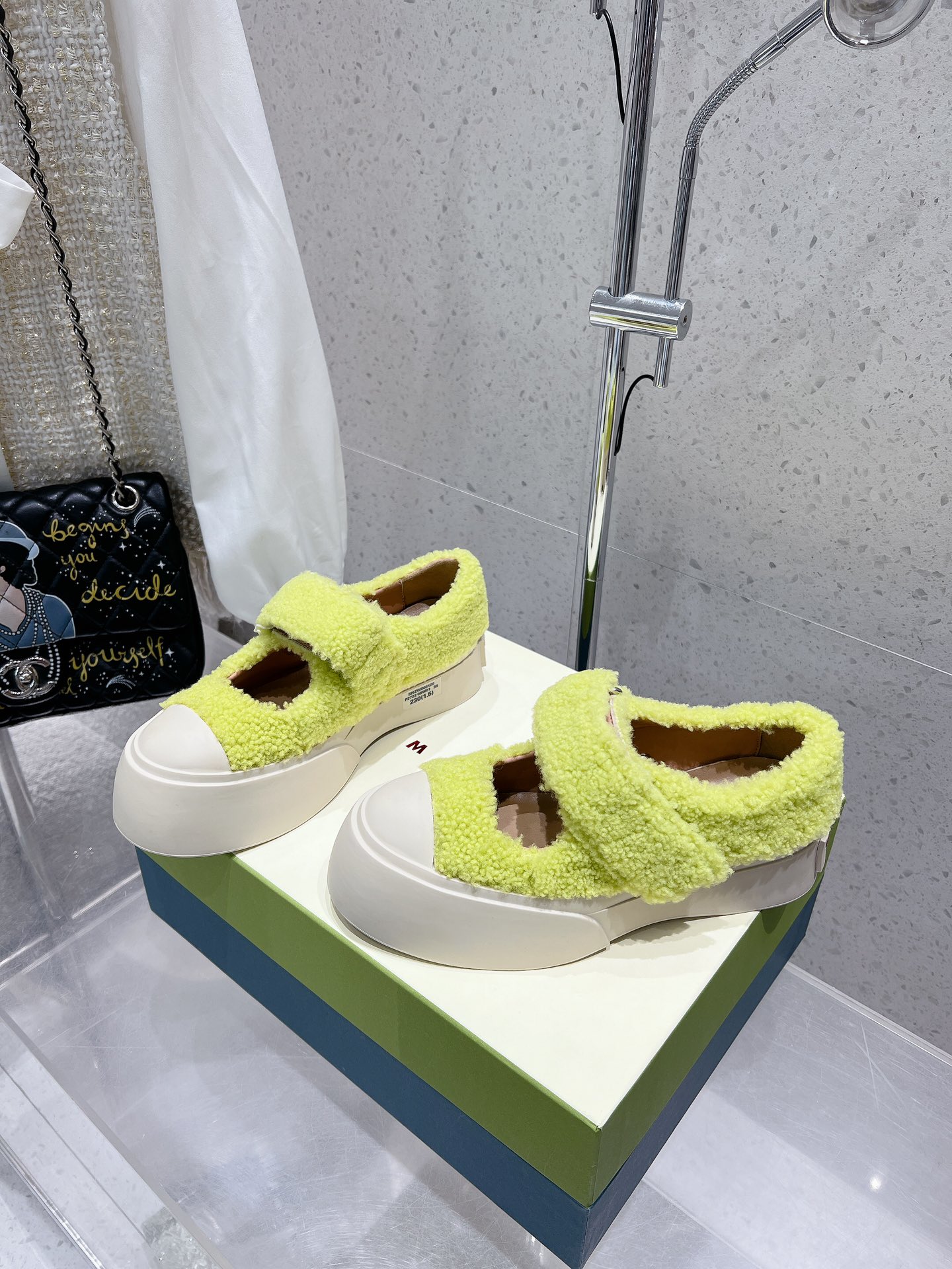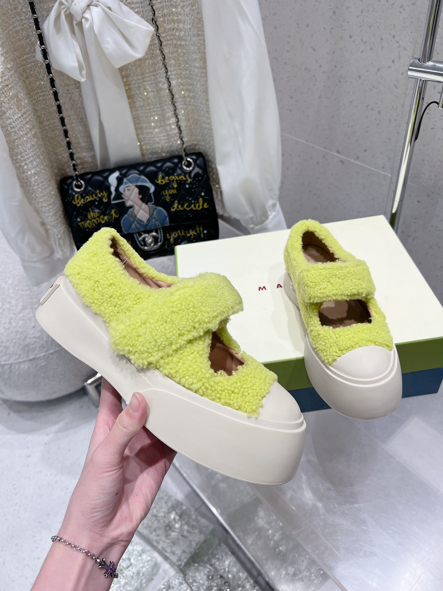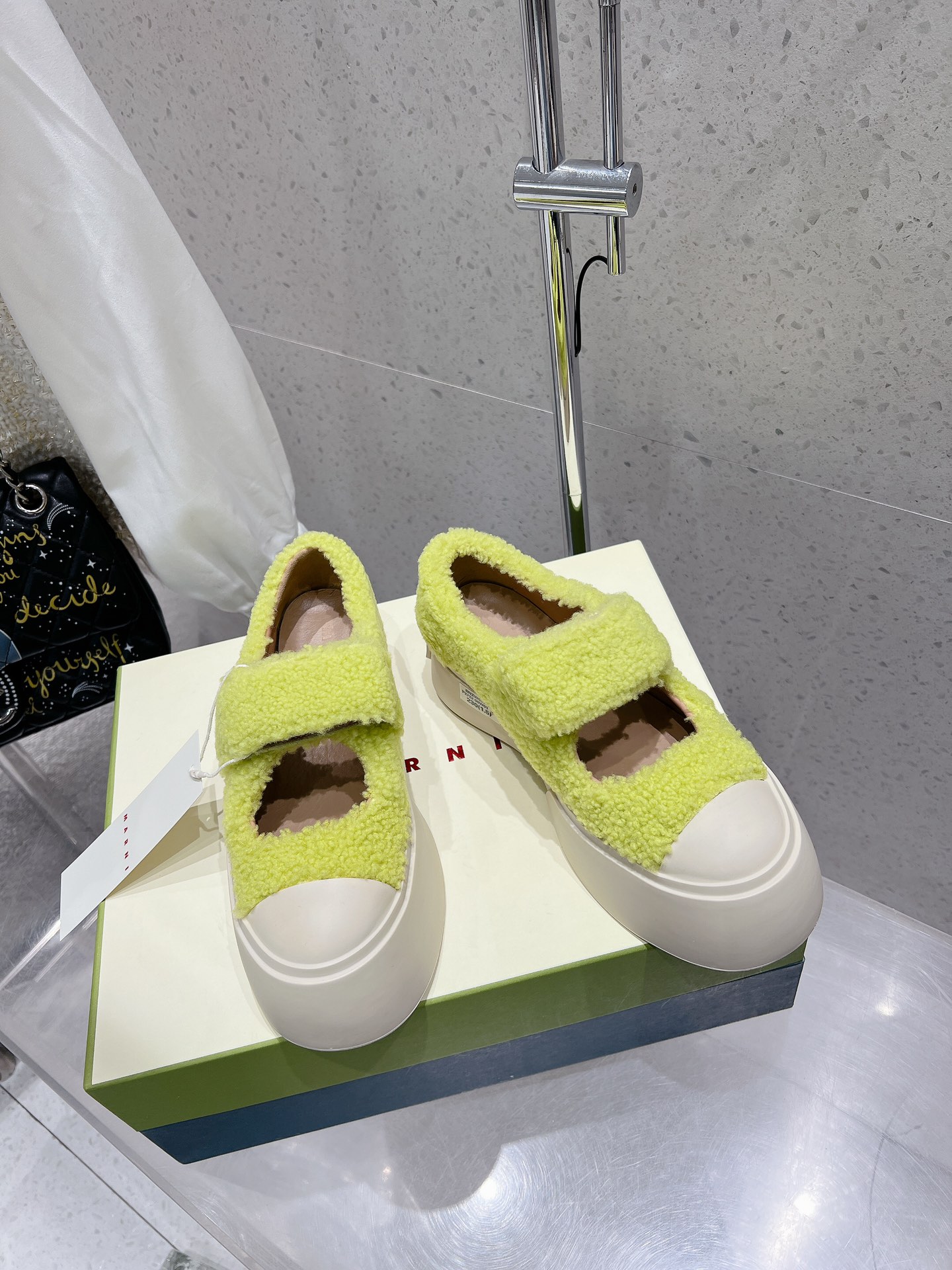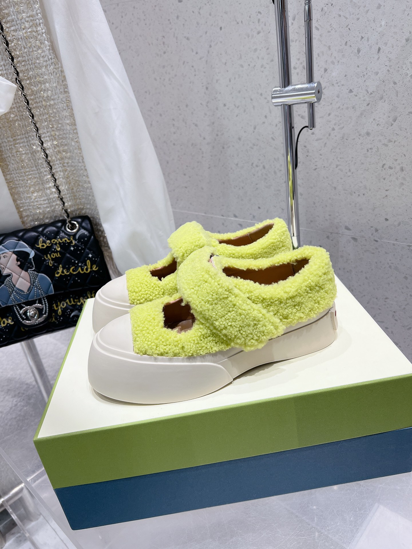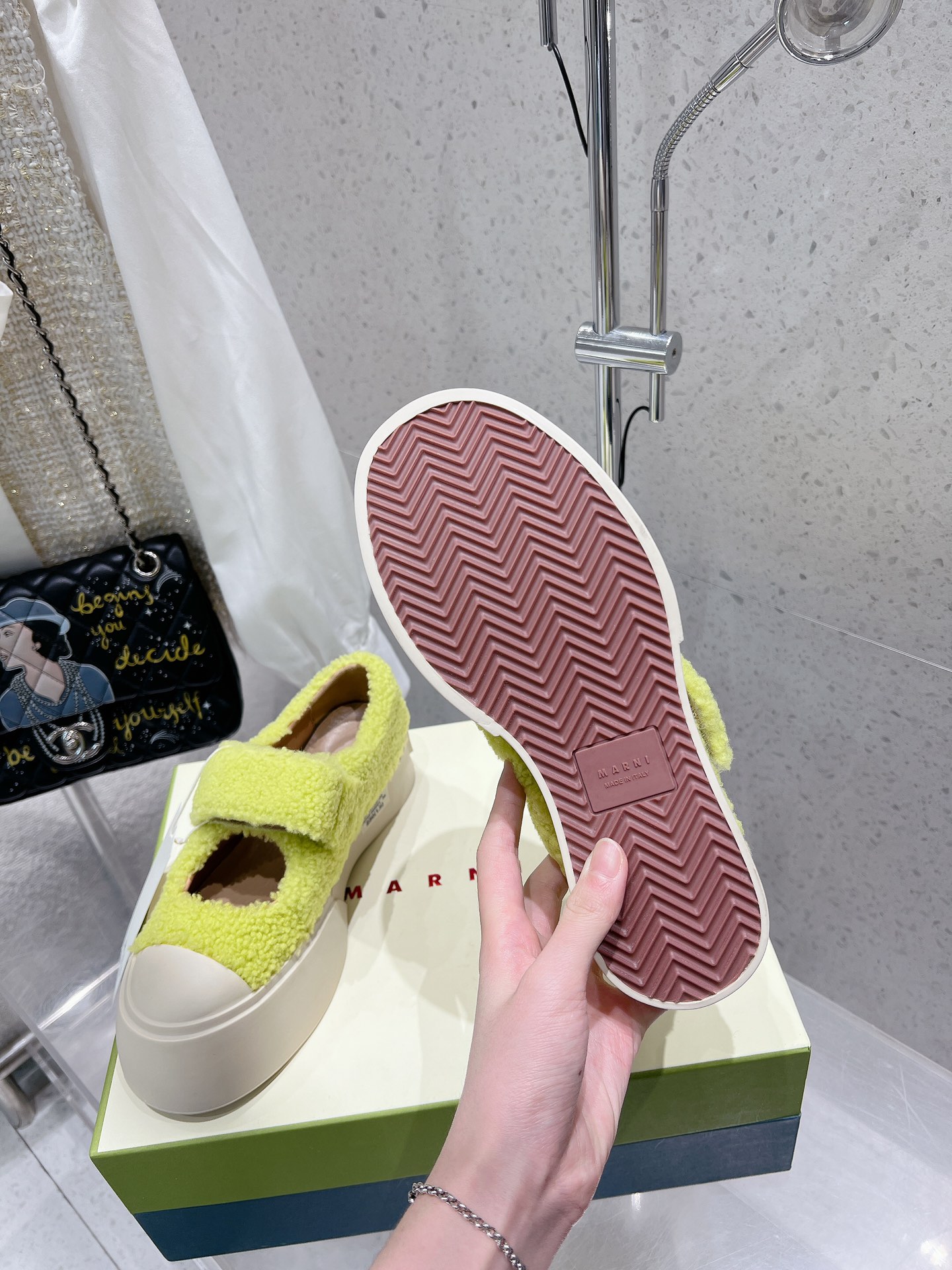 这款鞋子是AAAAA 1:1 质量 (非常棒). 使用了和原版一模一样的材料. 商标部分也保持了和马尔尼/Marni一样. 图片拍摄是实物鞋子拍摄, 您所收到的实物保证和我们图片一模一样.