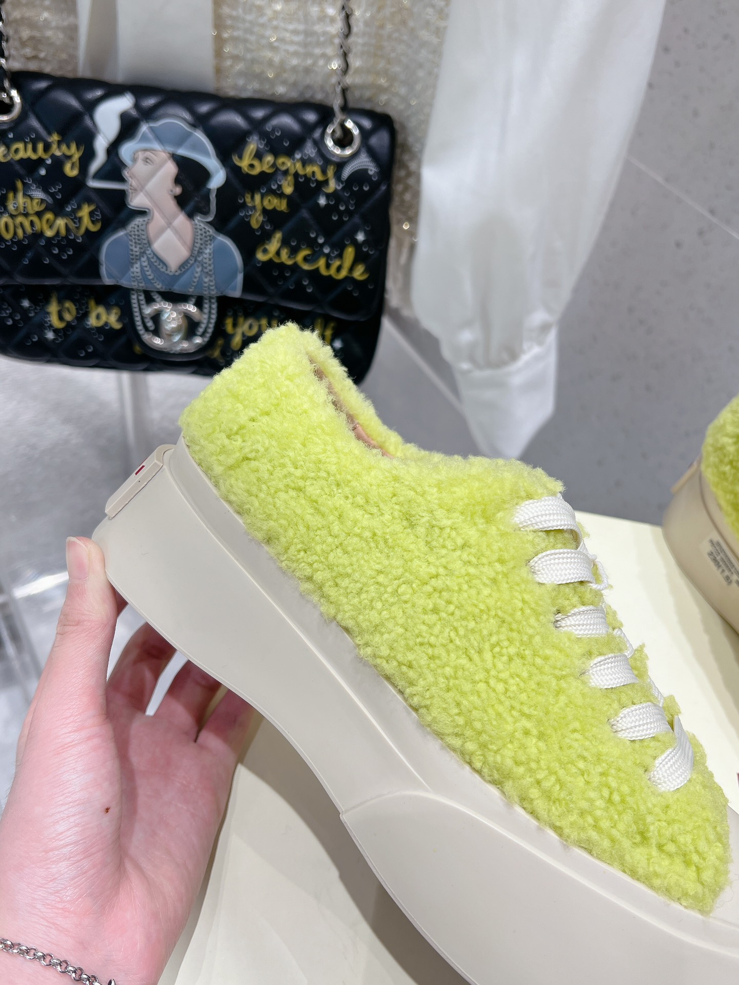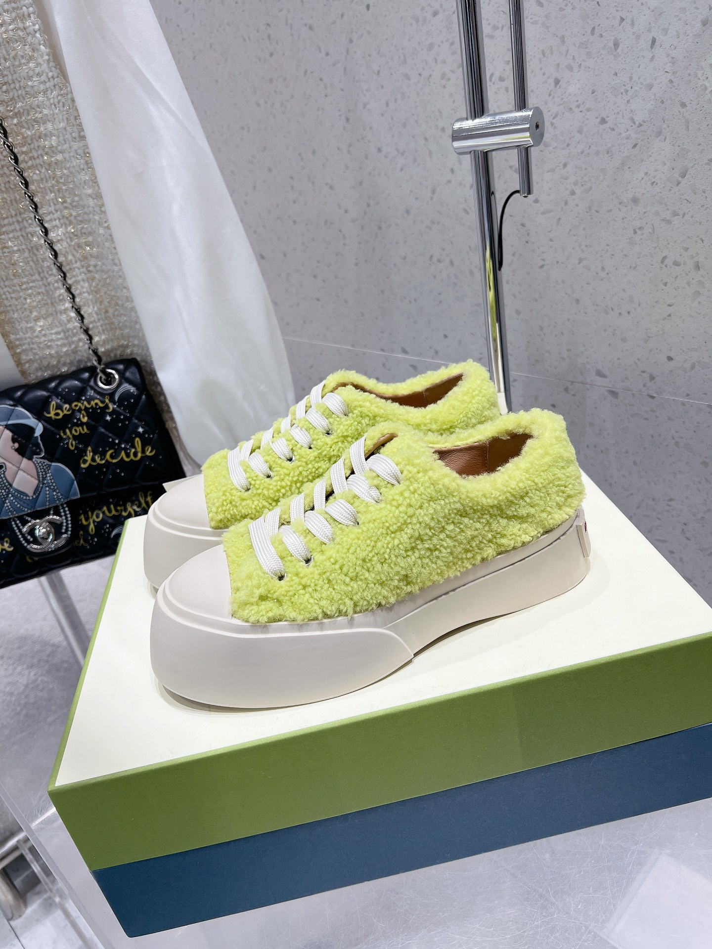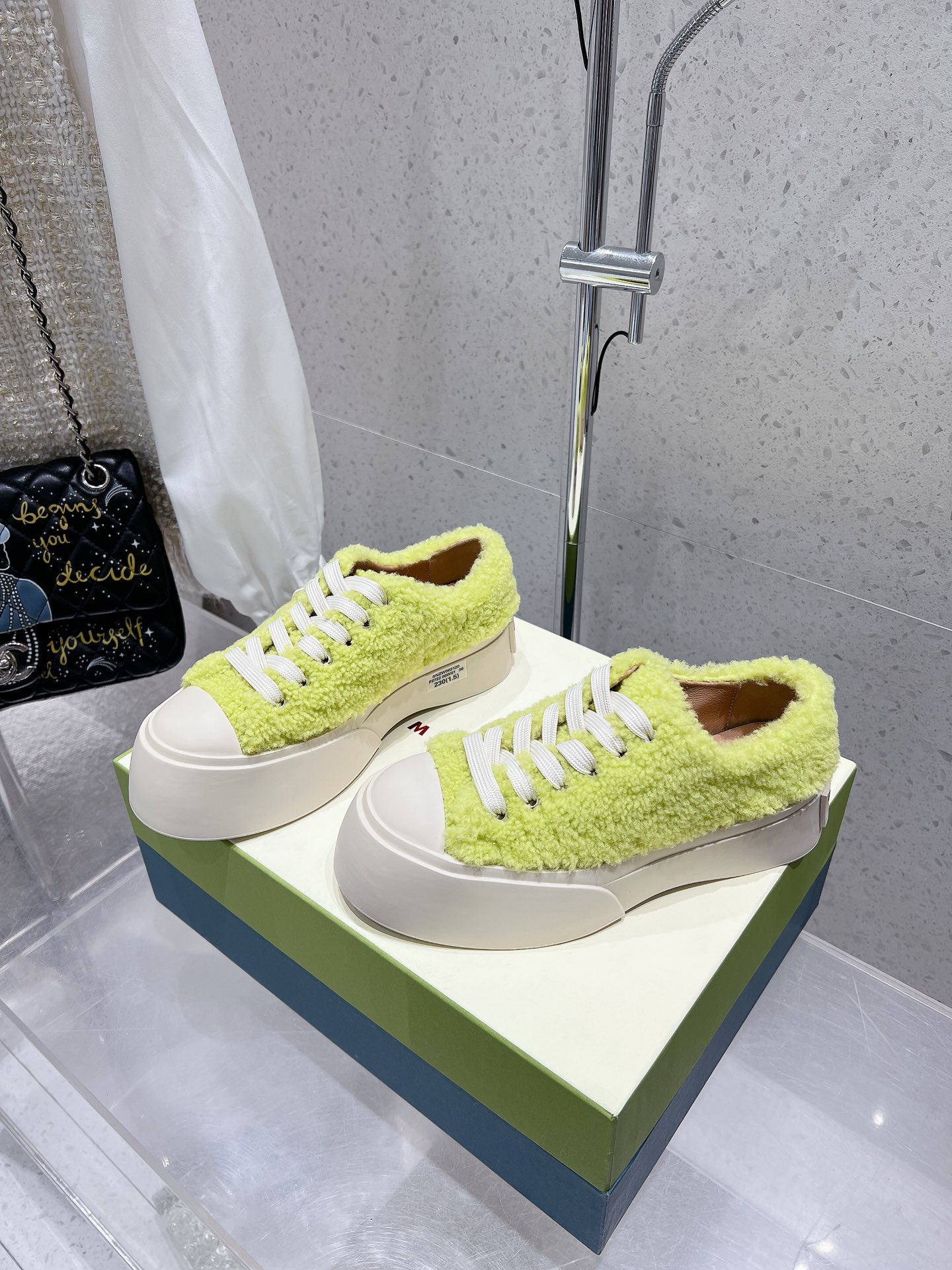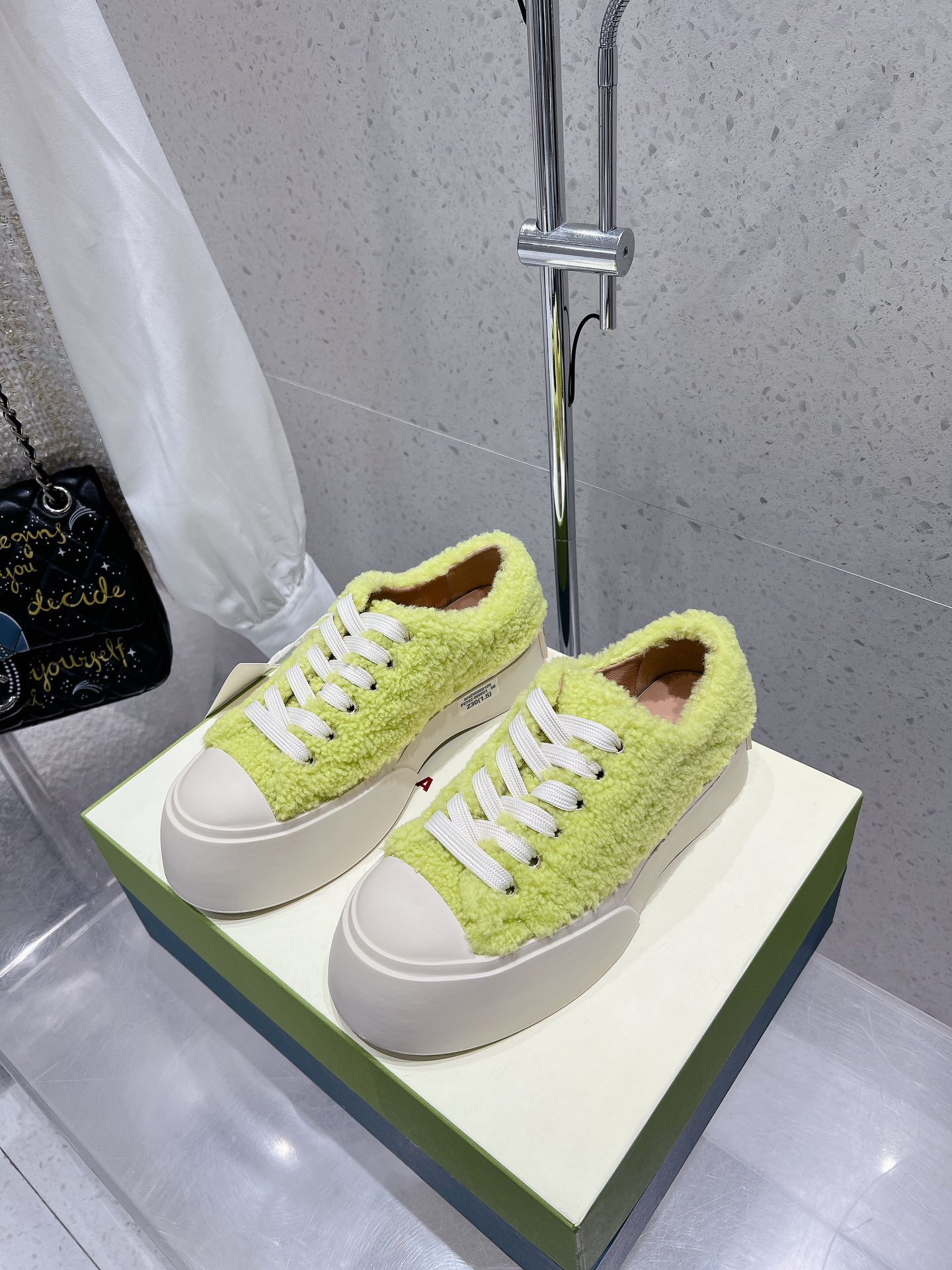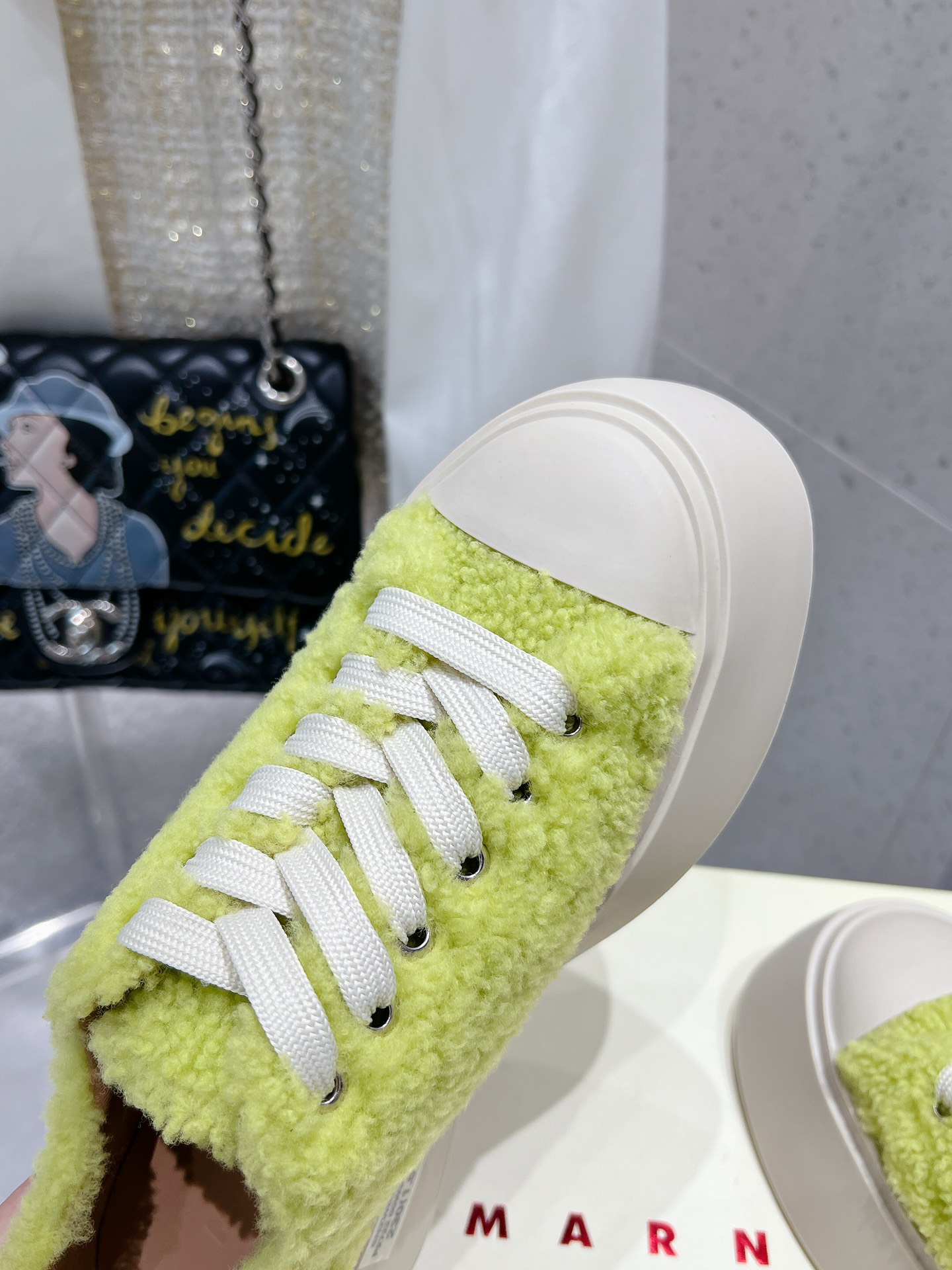 这款鞋子是AAAAA 1:1 质量 (非常棒). 使用了和原版一模一样的材料. 商标部分也保持了和马尔尼/Marni一样. 图片拍摄是实物鞋子拍摄, 您所收到的实物保证和我们图片一模一样.