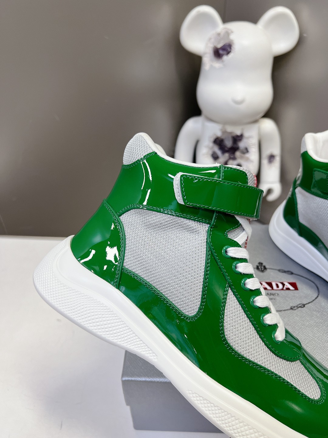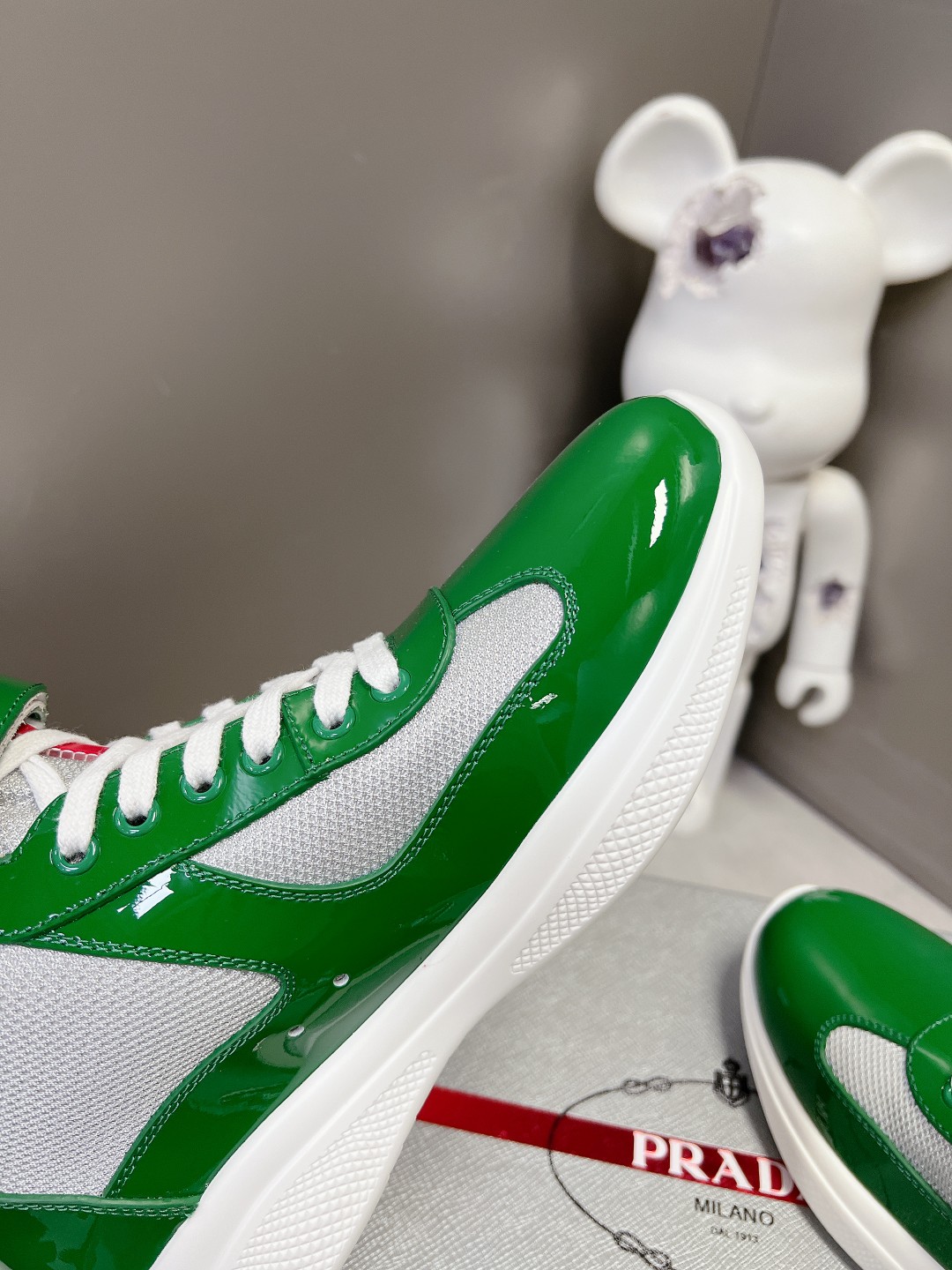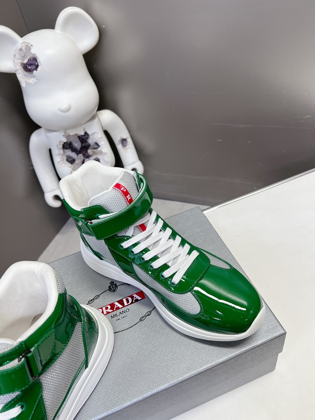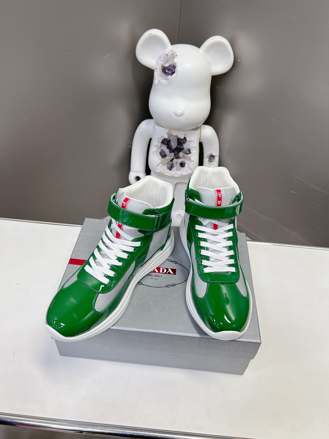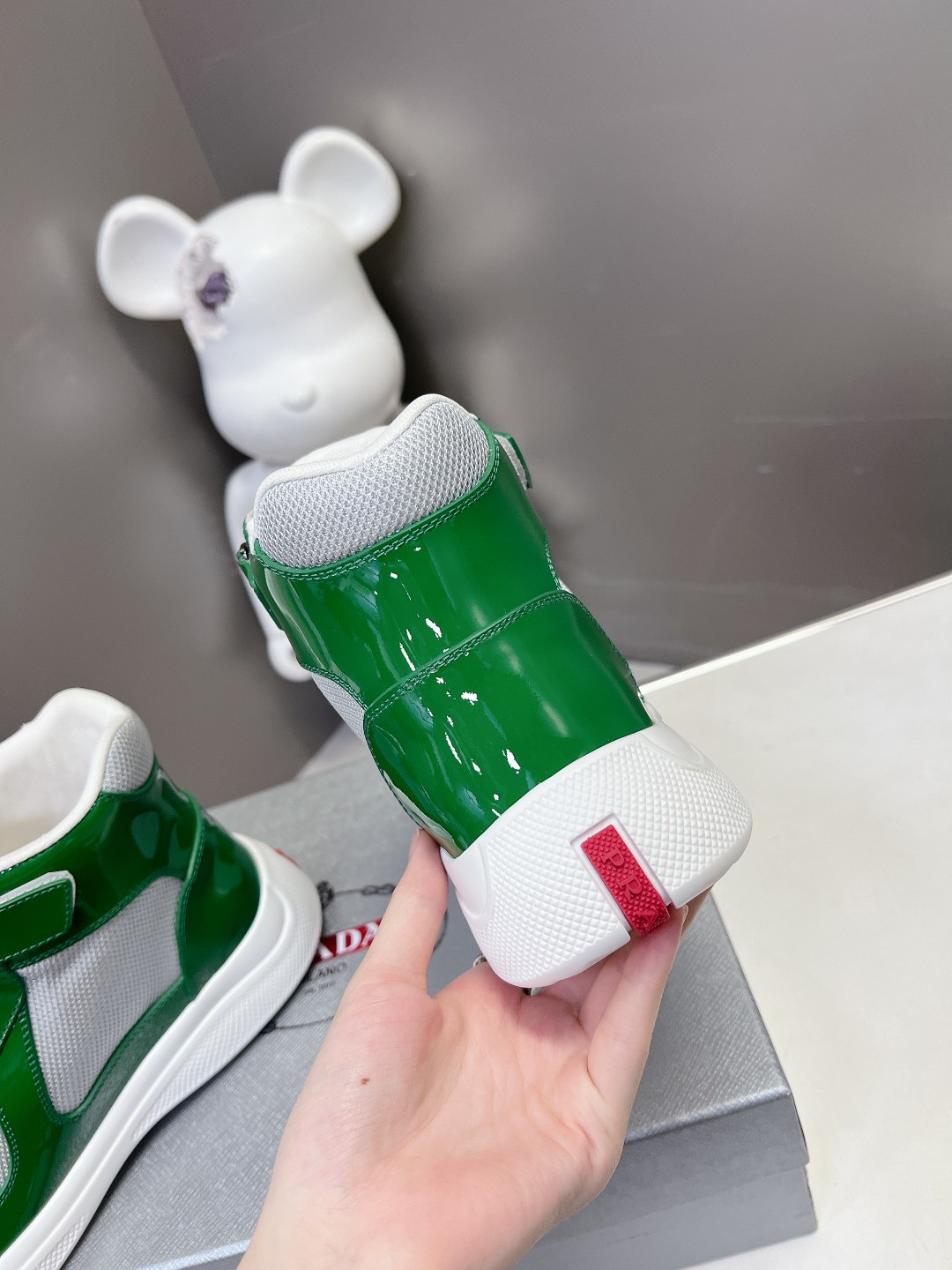 这款鞋子是AAAAA 1:1 质量 (非常棒). 使用了和原版一模一样的材料. 商标部分也保持了和普拉达/Prada一样. 图片拍摄是实物鞋子拍摄, 您所收到的实物保证和我们图片一模一样.