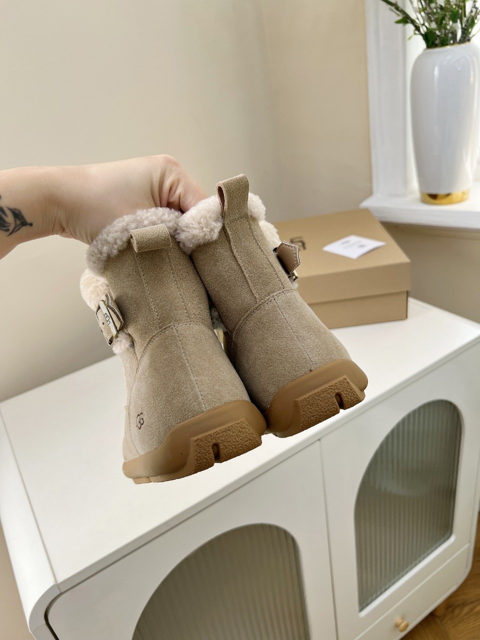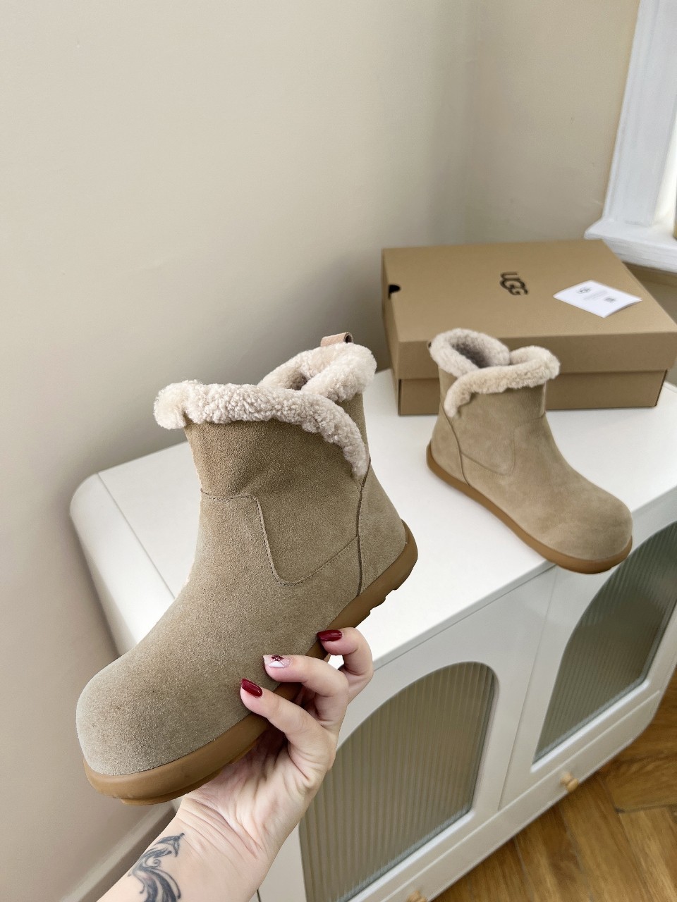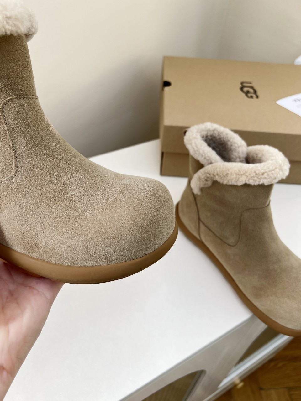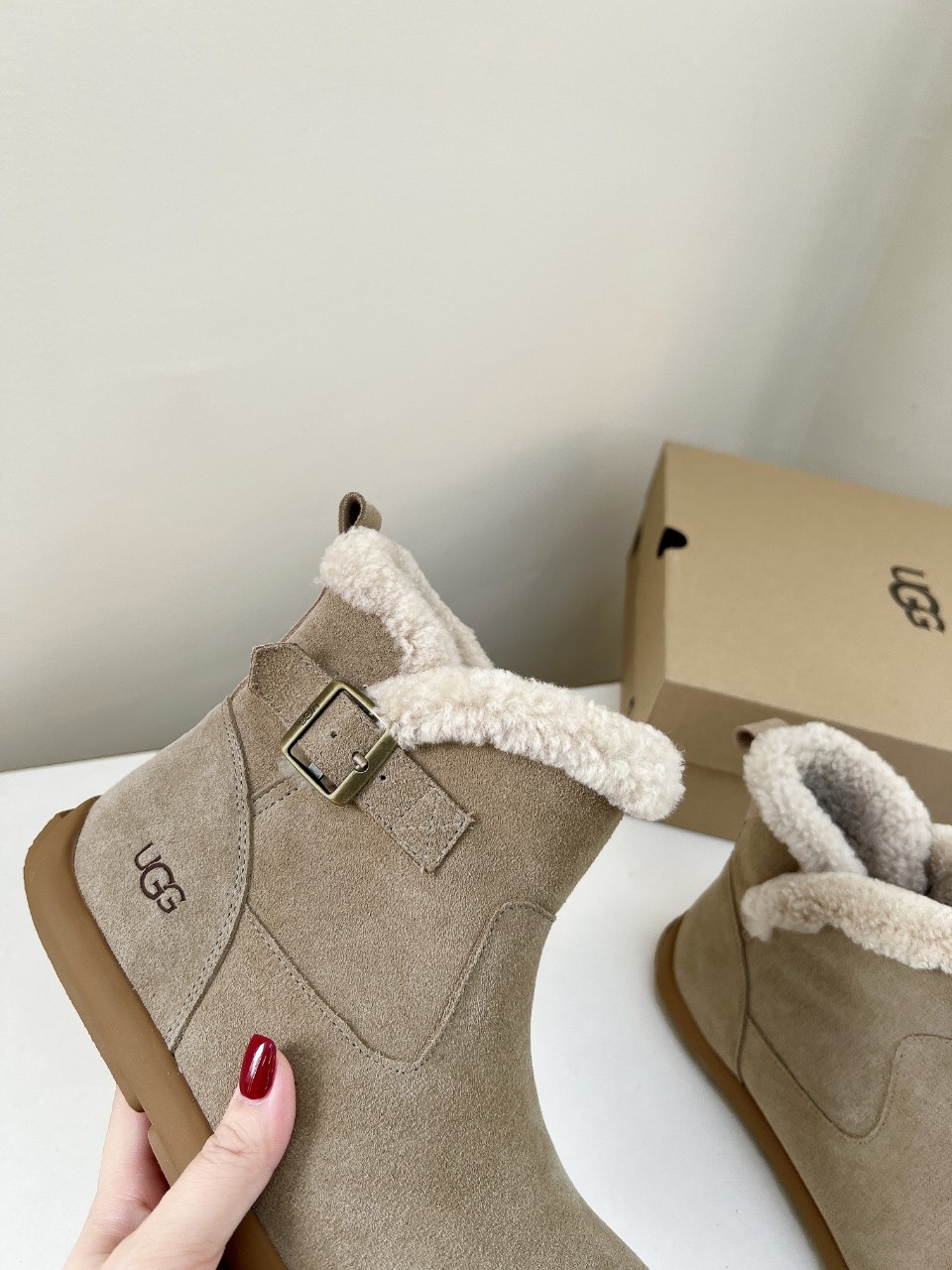 这款鞋子是AAAAA 1:1 质量 (非常棒). 使用了和原版一模一样的材料. 商标部分也保持了和UGG雪地靴一样. 图片拍摄是实物鞋子拍摄, 您所收到的实物保证和我们图片一模一样.