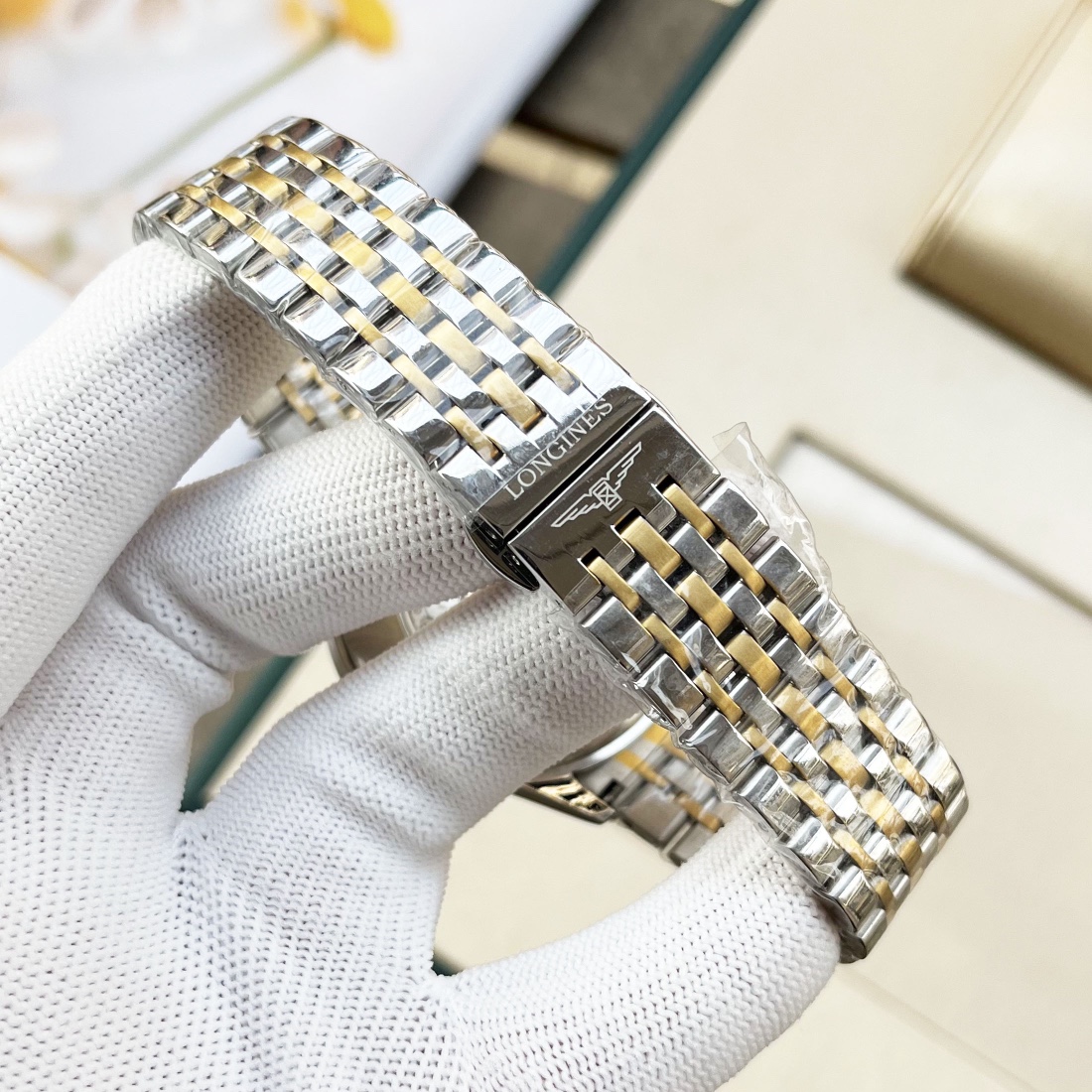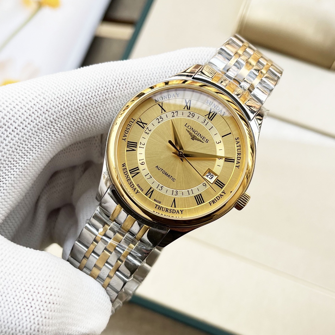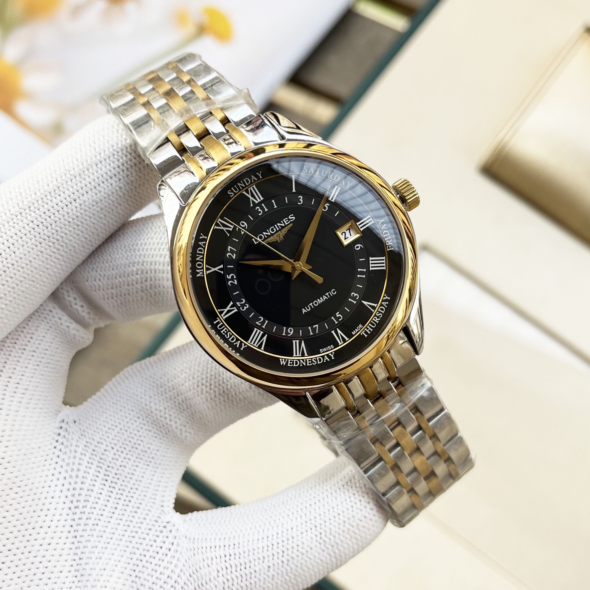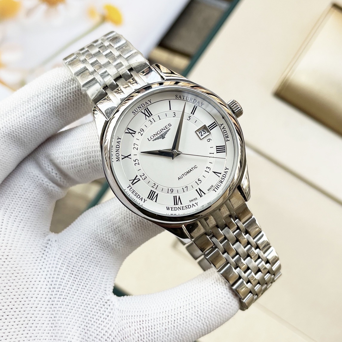 这款手表是AAAAA 1:1 质量 (非常棒). 使用了和原版一模一样的材料. 商标部分也保持了和浪琴/Longines一样. 图片拍摄是实物手表拍摄, 您所收到的实物保证和我们图片一模一样.