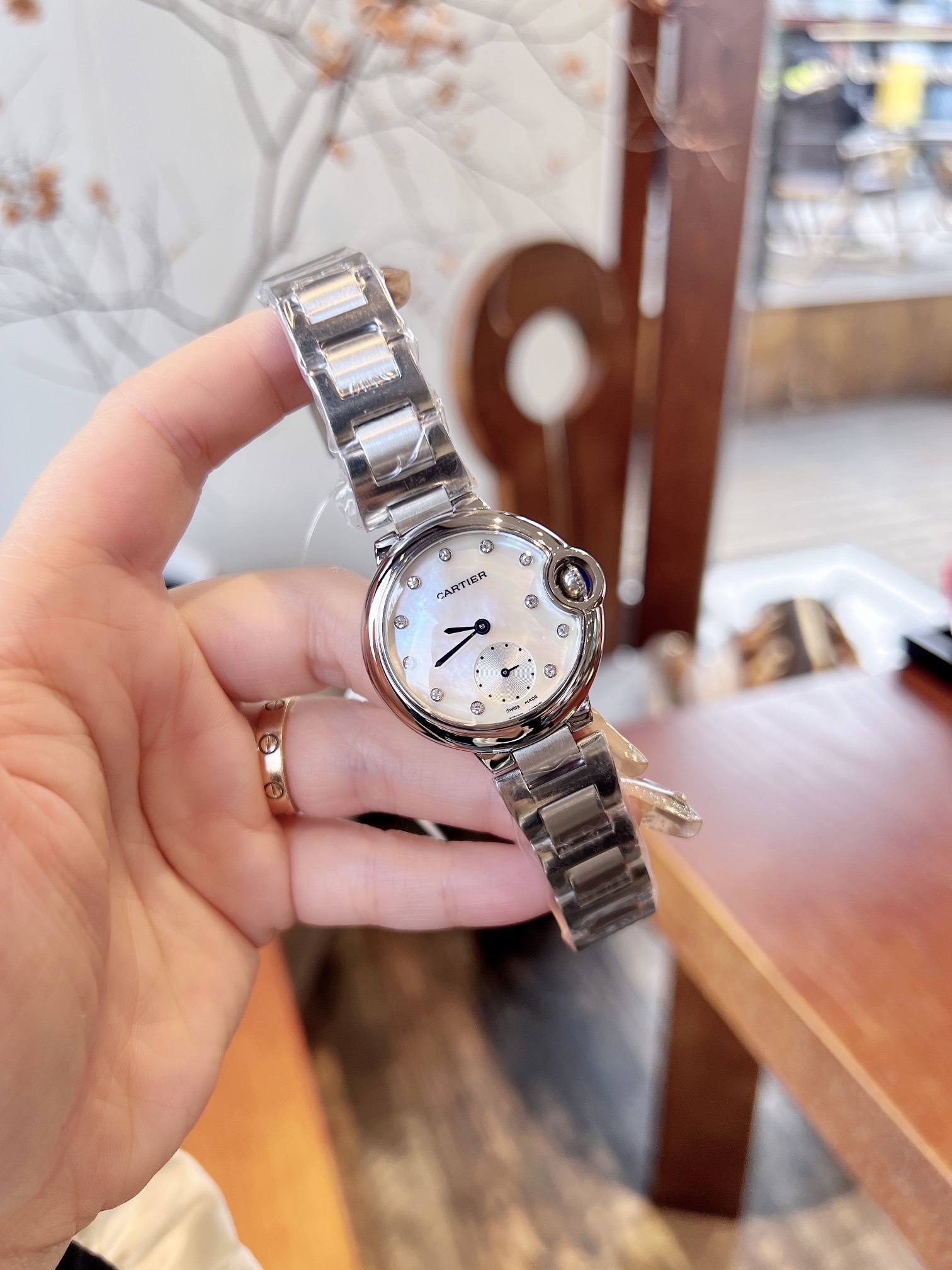 这款手表是AAAAA 1:1 质量 (非常棒). 使用了和原版一模一样的材料. 商标部分也保持了和卡地亚/Cartier一样. 图片拍摄是实物手表拍摄, 您所收到的实物保证和我们图片一模一样.