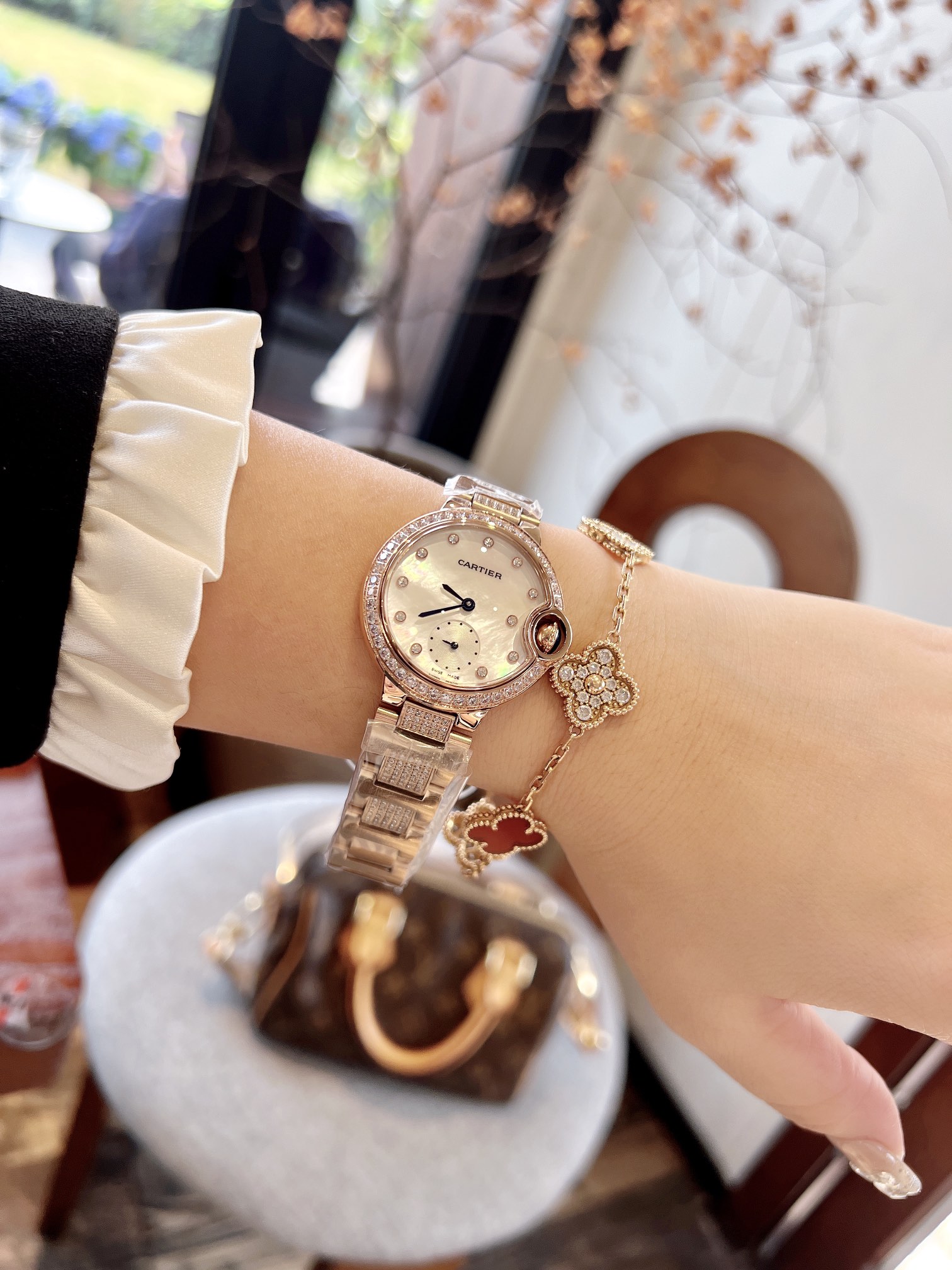 这款手表是AAAAA 1:1 质量 (非常棒). 使用了和原版一模一样的材料. 商标部分也保持了和卡地亚/Cartier一样. 图片拍摄是实物手表拍摄, 您所收到的实物保证和我们图片一模一样.