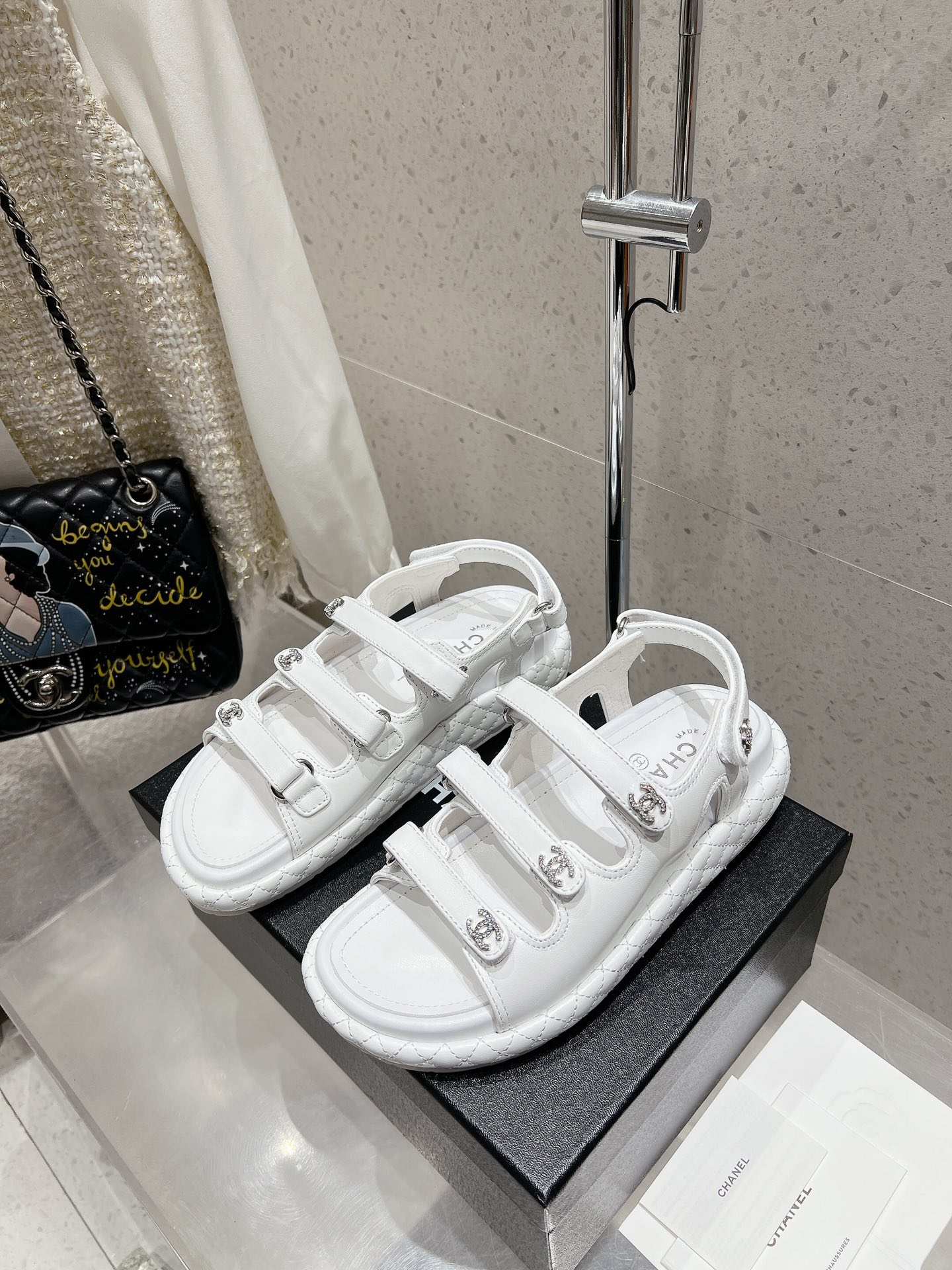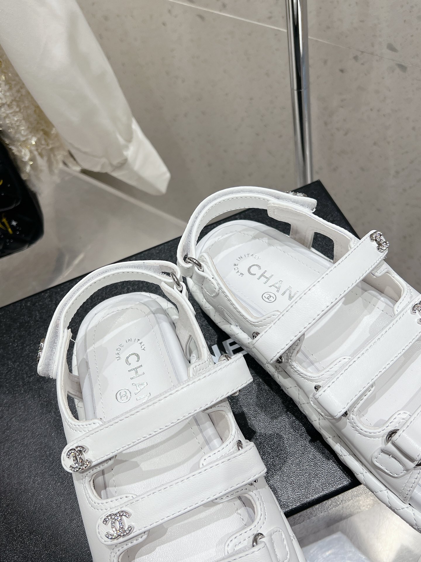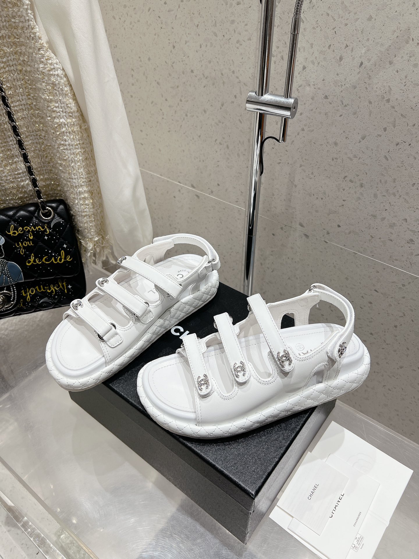 这款鞋子是AAAAA 1:1 质量 (非常棒). 使用了和原版一模一样的材料. 商标部分也保持了和香奈儿/Chanel一样. 图片拍摄是实物鞋子拍摄, 您所收到的实物保证和我们图片一模一样.