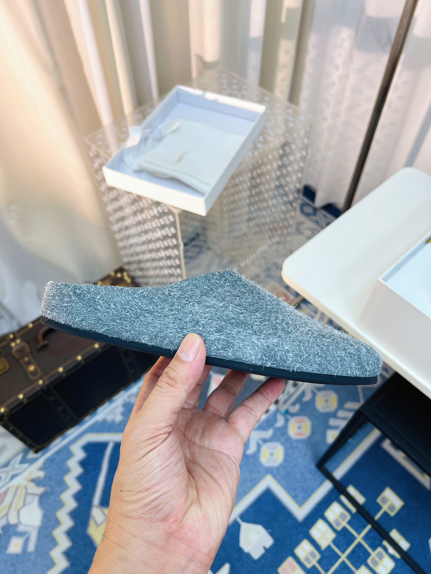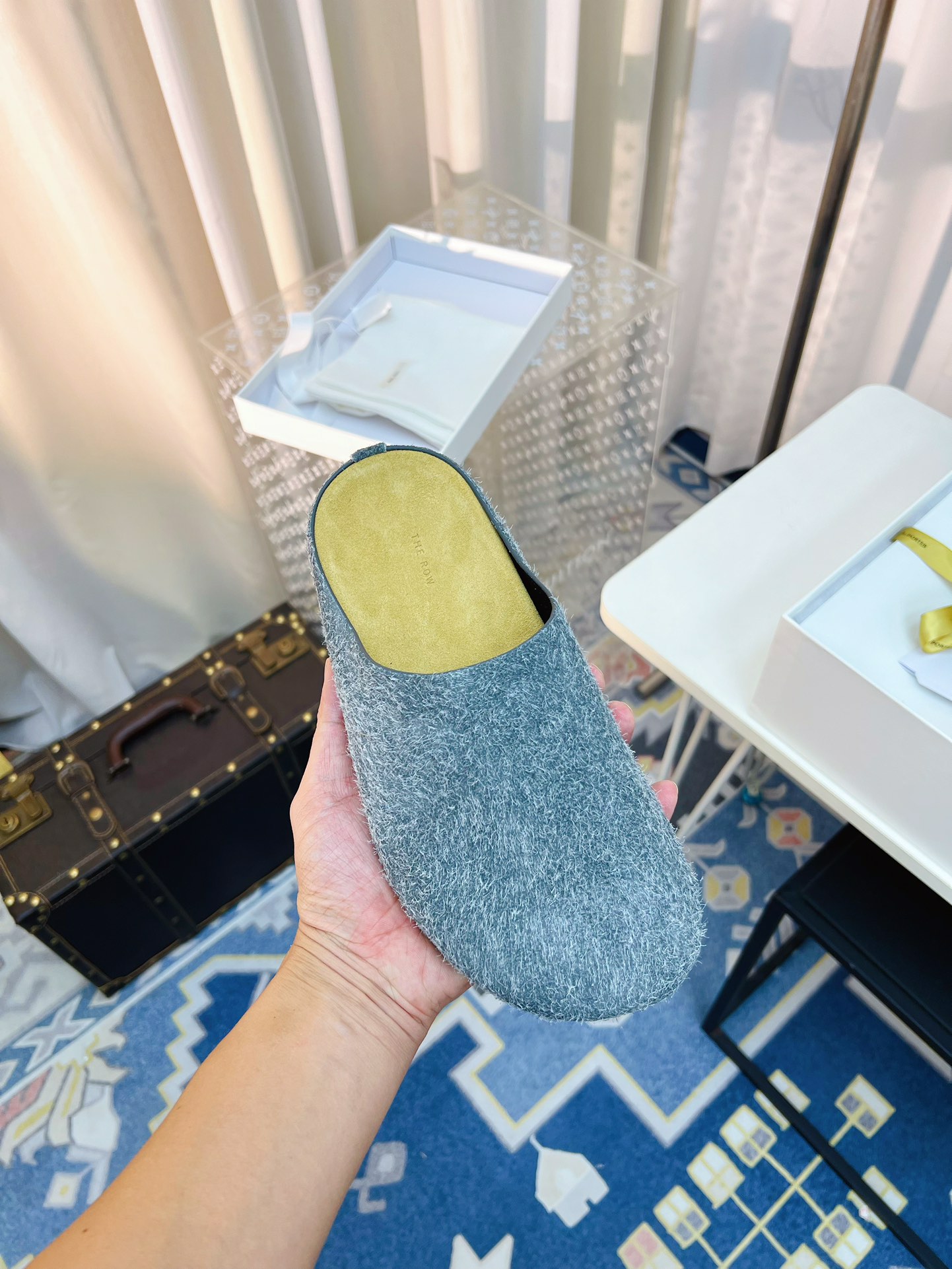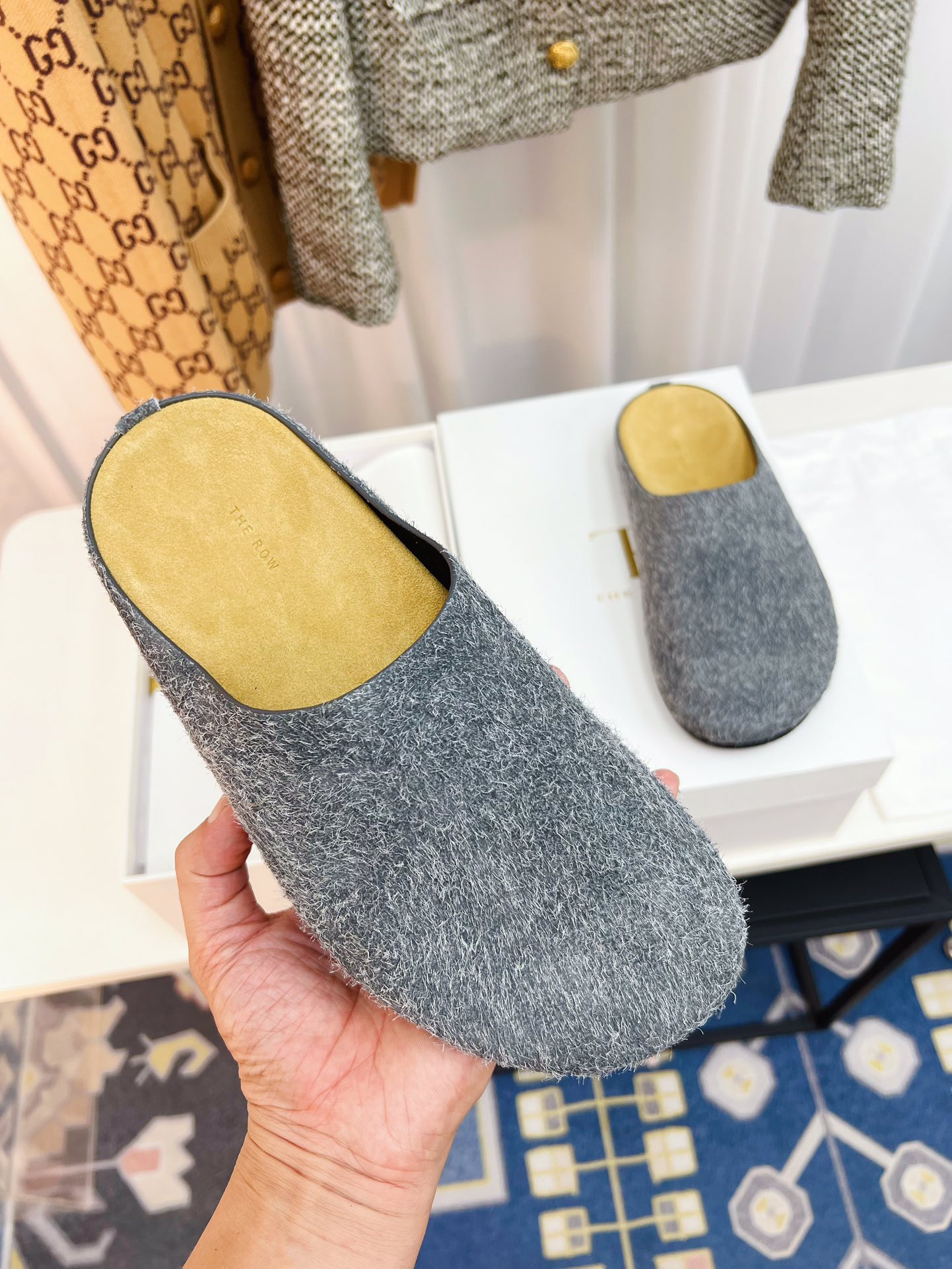 这款鞋子是AAAAA 1:1 质量 (非常棒). 使用了和原版一模一样的材料. 商标部分也保持了和The Row一样. 图片拍摄是实物鞋子拍摄, 您所收到的实物保证和我们图片一模一样.