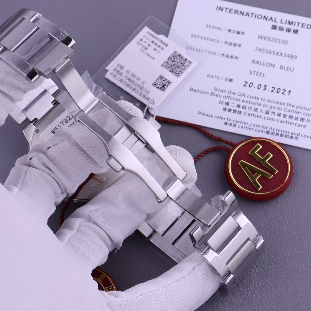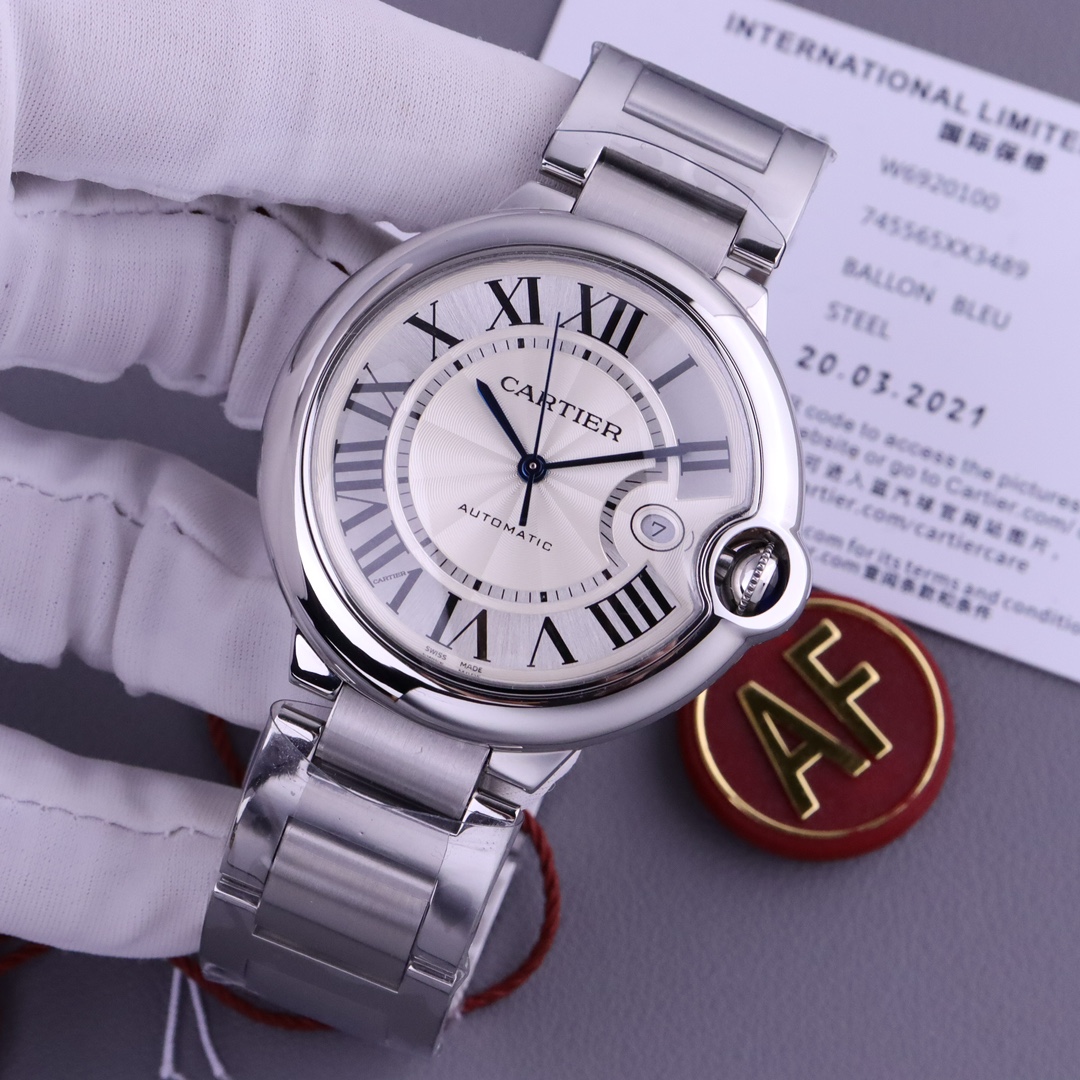 这款手表是AAAAA 1:1 质量 (非常棒). 使用了和原版一模一样的材料. 商标部分也保持了和卡地亚/Cartier一样. 图片拍摄是实物手表拍摄, 您所收到的实物保证和我们图片一模一样.