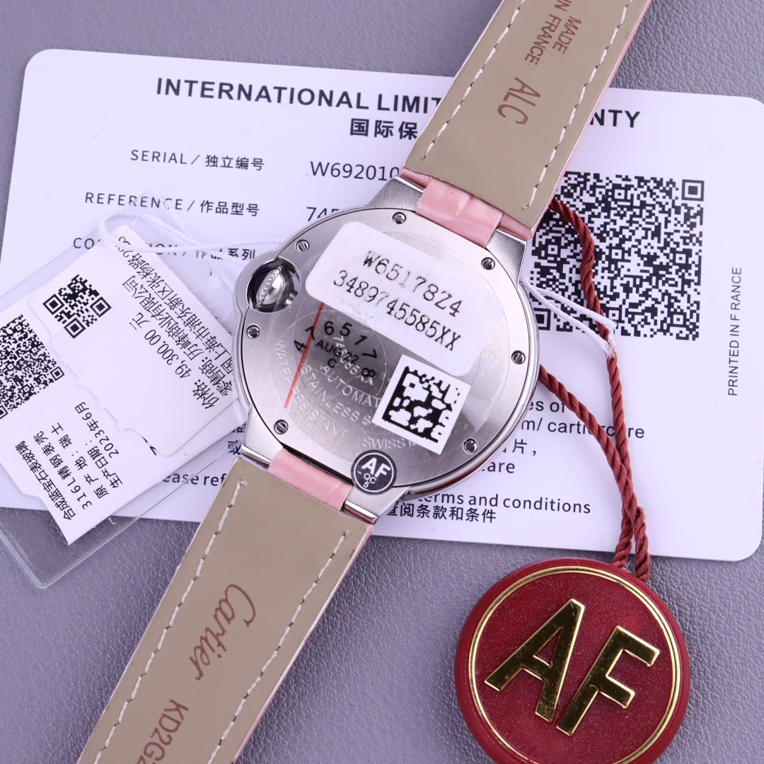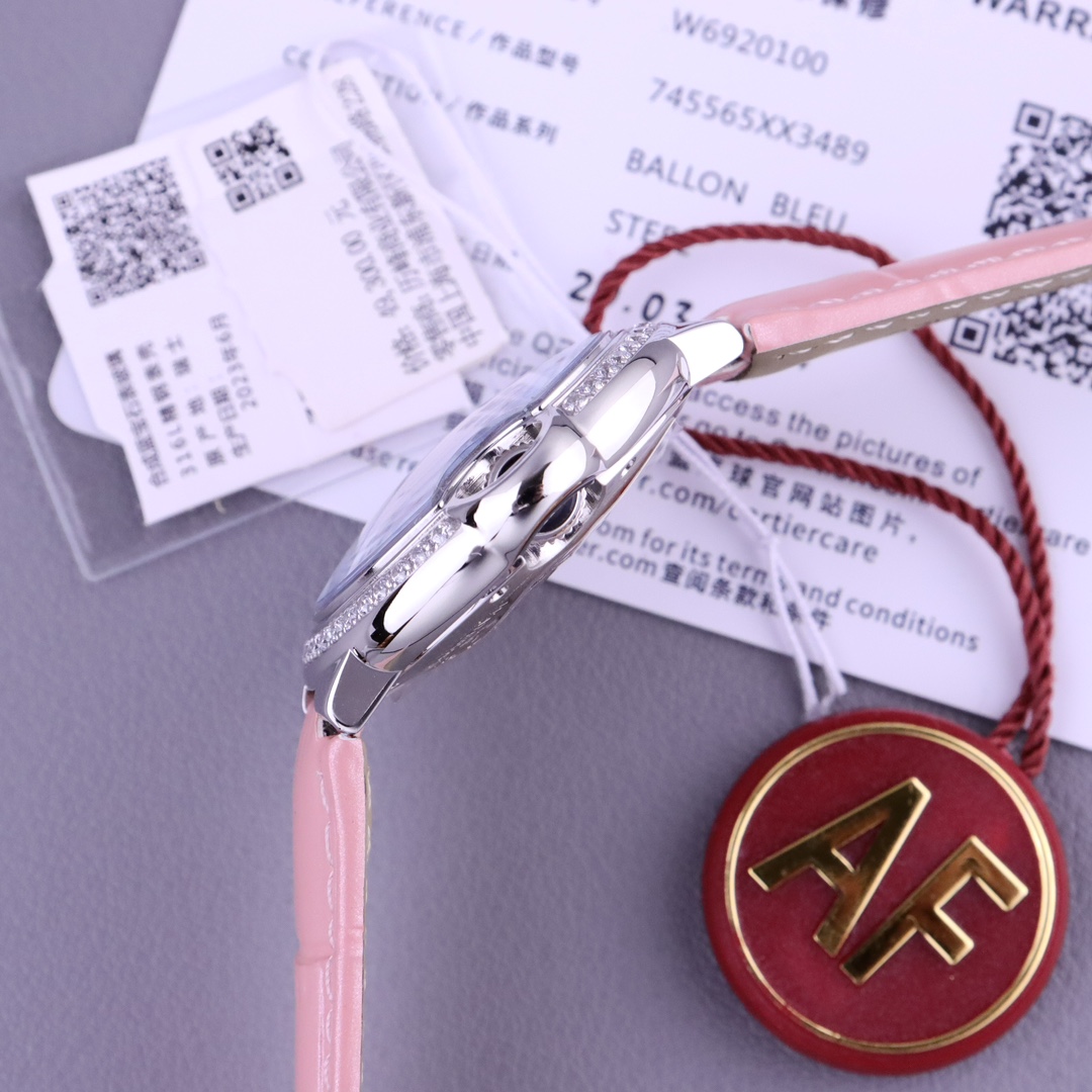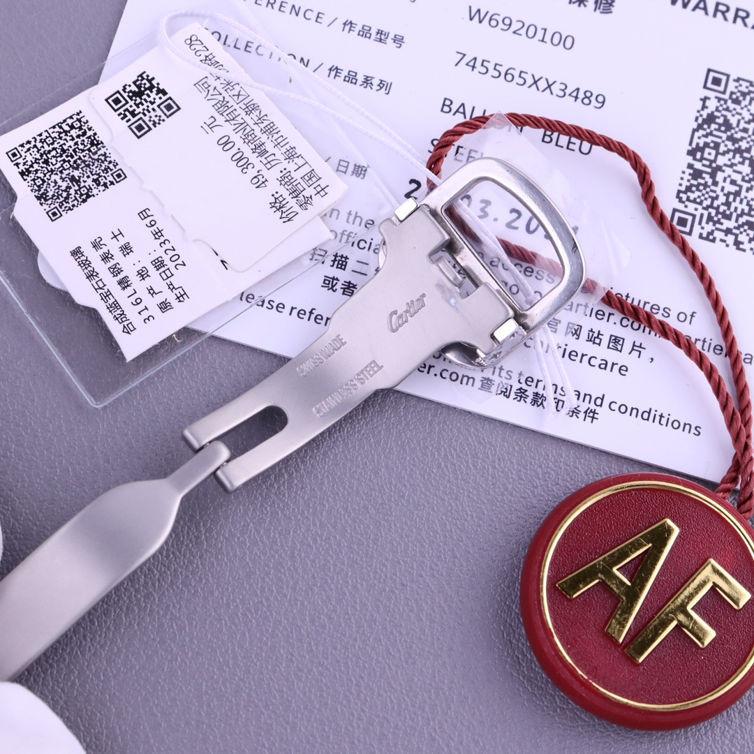 这款手表是AAAAA 1:1 质量 (非常棒). 使用了和原版一模一样的材料. 商标部分也保持了和卡地亚/Cartier一样. 图片拍摄是实物手表拍摄, 您所收到的实物保证和我们图片一模一样.