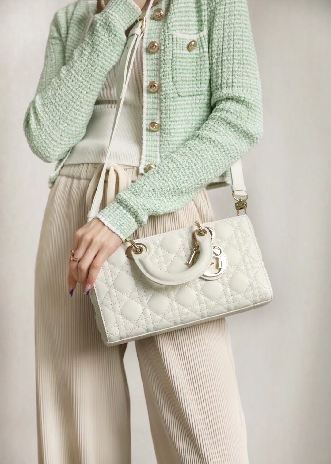 这款包包是AAAAA 1:1 质量 (非常棒). 使用了和原版一模一样的材料. 商标部分也保持了和迪奥/Dior一样. 图片拍摄是实物包包拍摄, 您所收到的实物保证和我们图片一模一样.