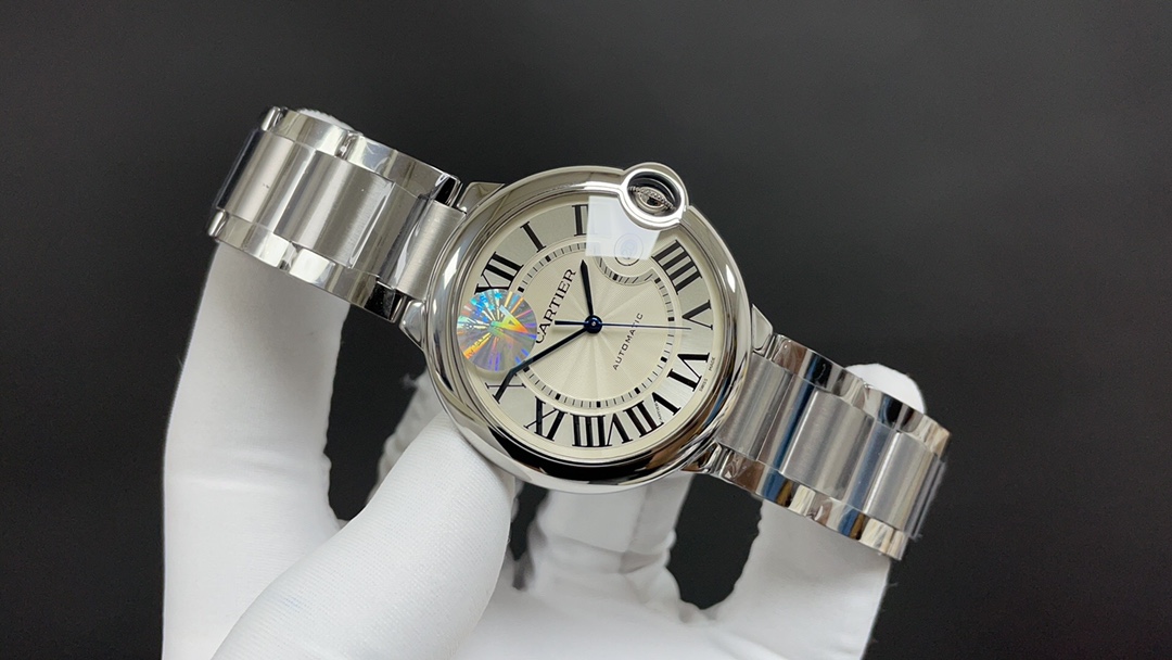 这款手表是AAAAA 1:1 质量 (非常棒). 使用了和原版一模一样的材料. 商标部分也保持了和卡地亚/Cartier一样. 图片拍摄是实物手表拍摄, 您所收到的实物保证和我们图片一模一样.