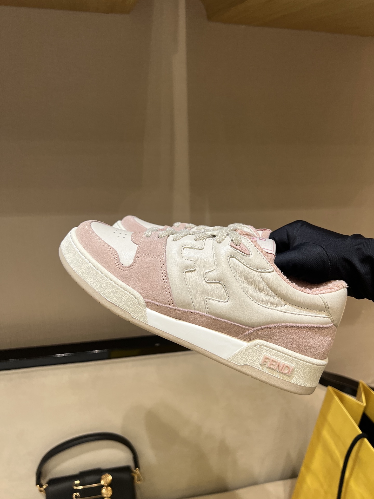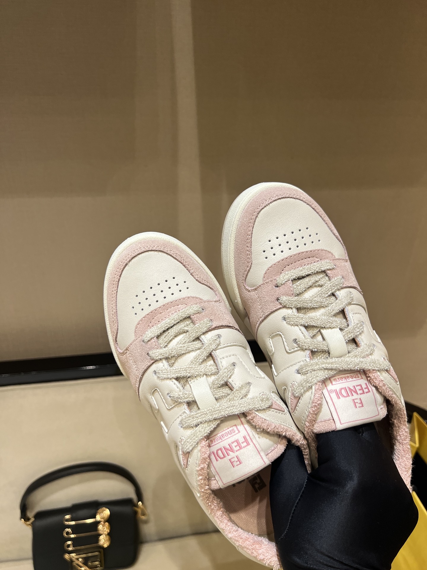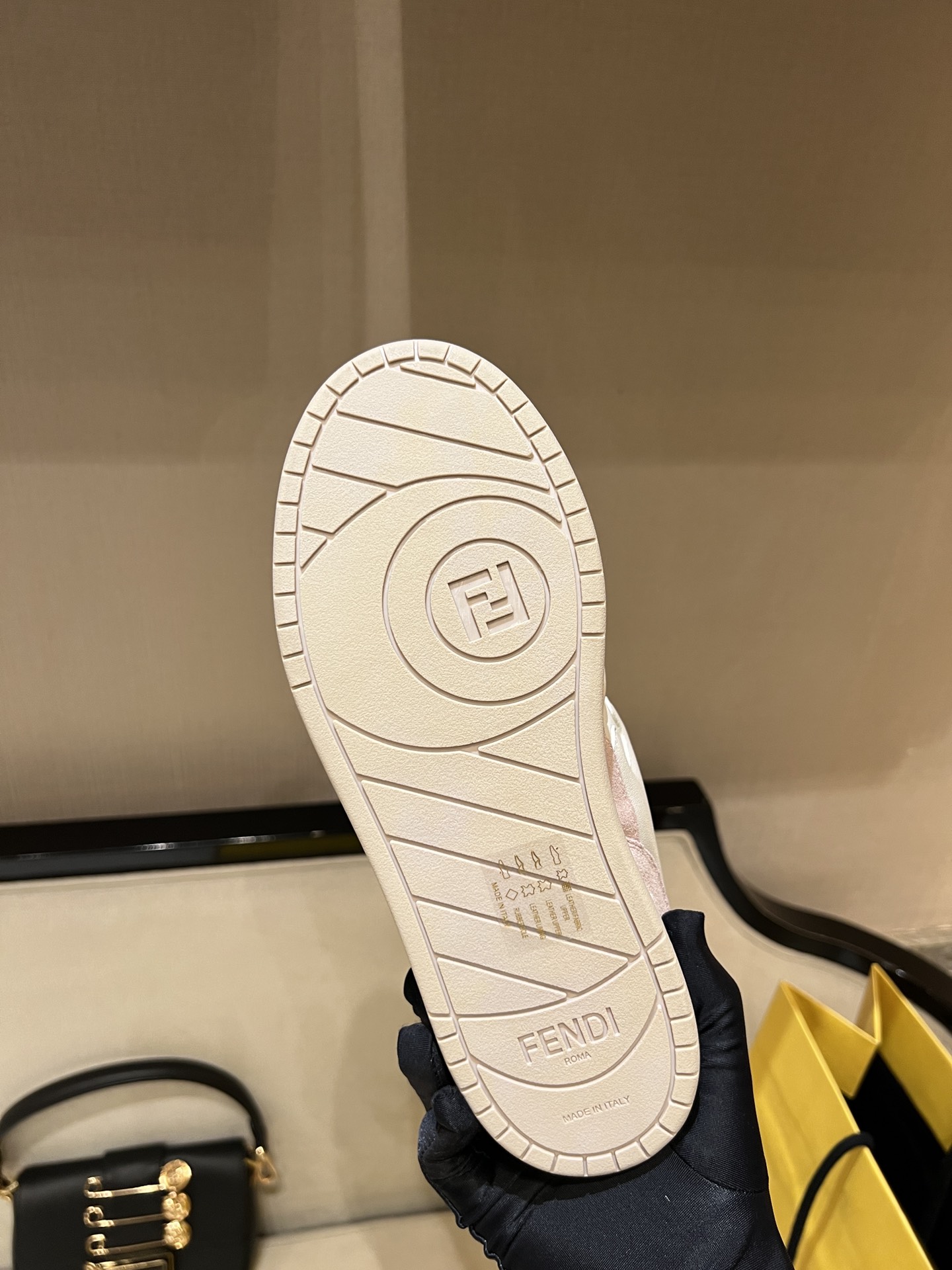 这款鞋子是AAAAA 1:1 质量 (非常棒). 使用了和原版一模一样的材料. 商标部分也保持了和芬迪/Fendi一样. 图片拍摄是实物鞋子拍摄, 您所收到的实物保证和我们图片一模一样.