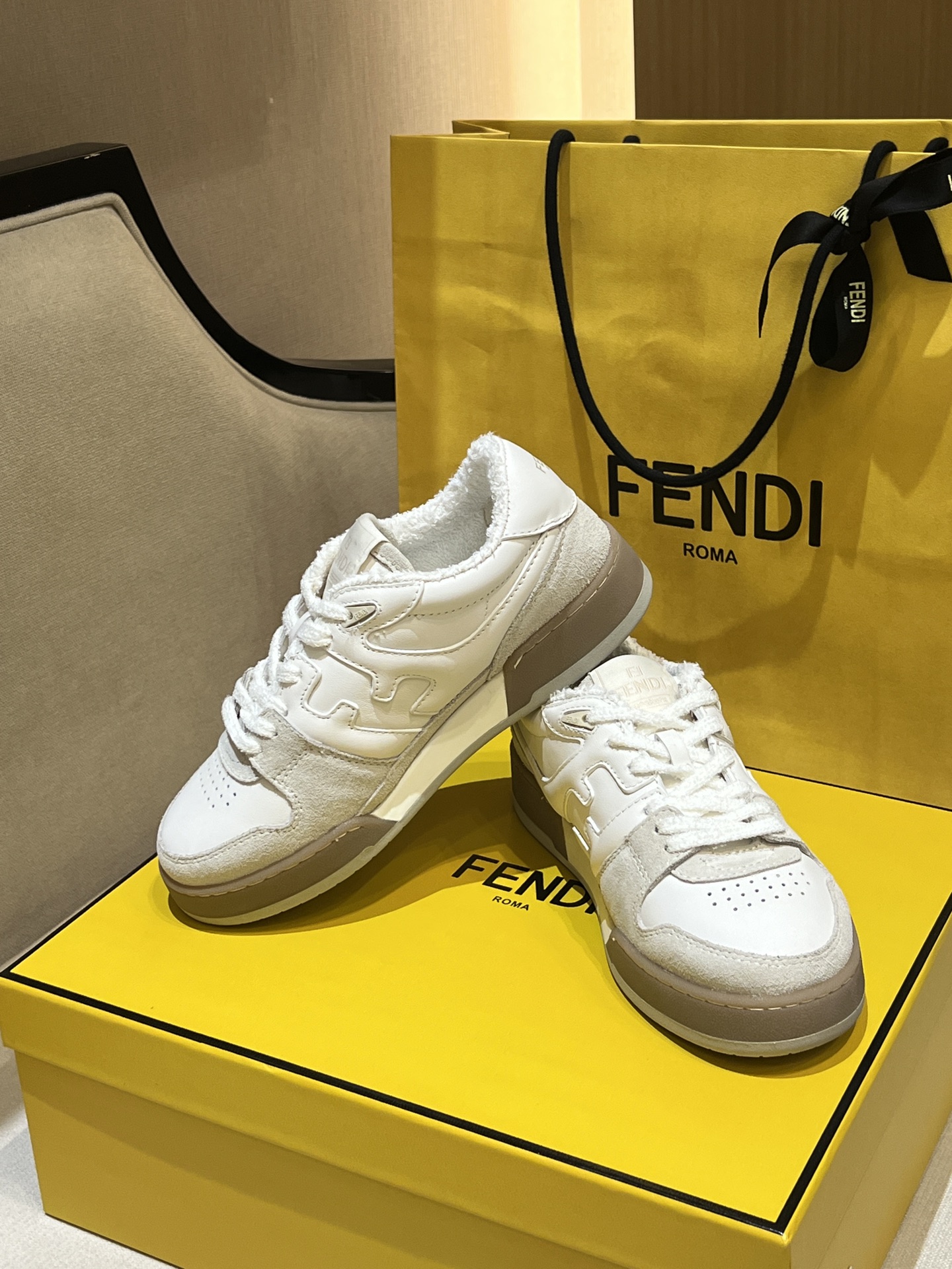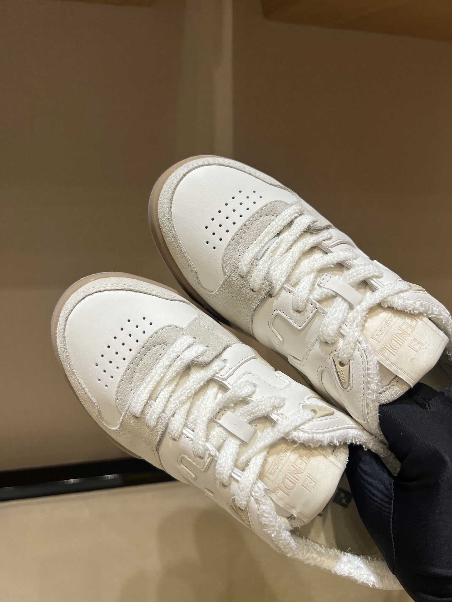 这款鞋子是AAAAA 1:1 质量 (非常棒). 使用了和原版一模一样的材料. 商标部分也保持了和芬迪/Fendi一样. 图片拍摄是实物鞋子拍摄, 您所收到的实物保证和我们图片一模一样.