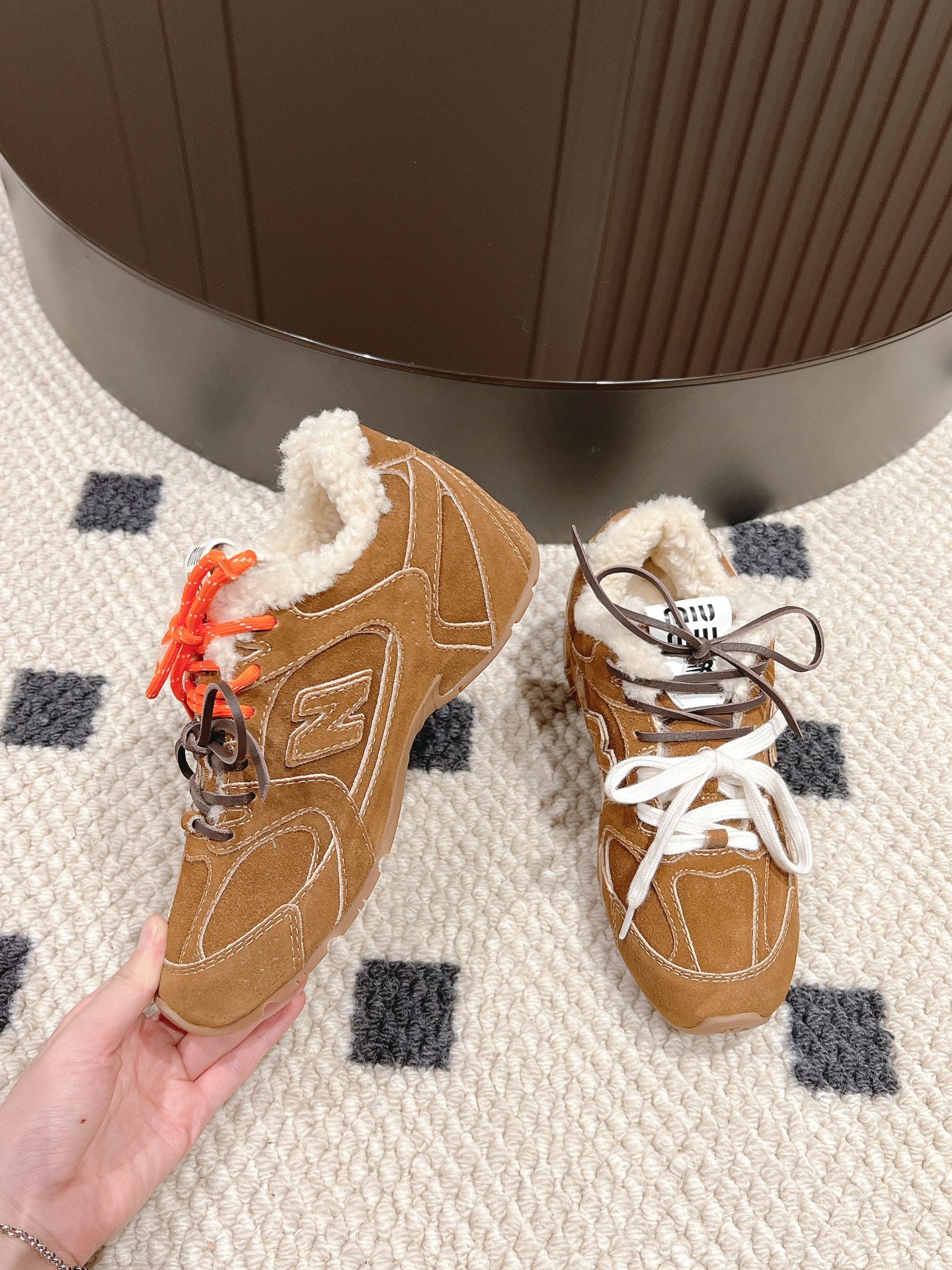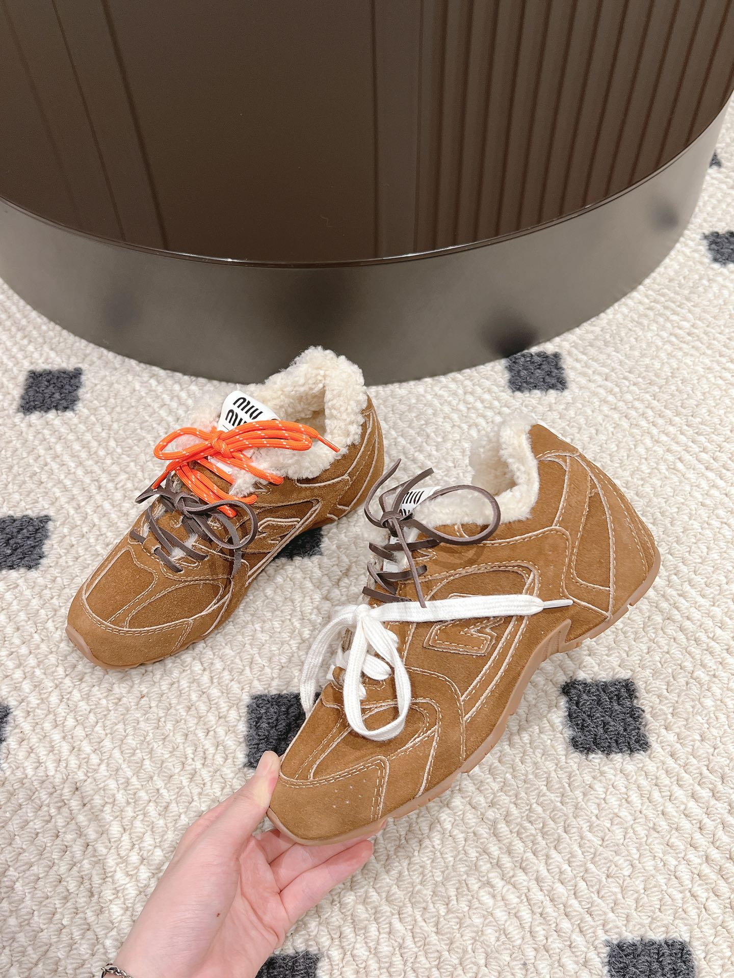 这款鞋子是AAAAA 1:1 质量 (非常棒). 使用了和原版一模一样的材料. 商标部分也保持了和缪缪/Miu Miu一样. 图片拍摄是实物鞋子拍摄, 您所收到的实物保证和我们图片一模一样.