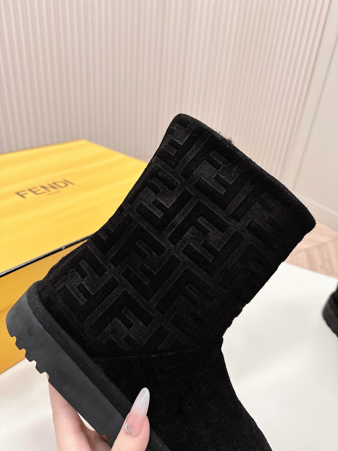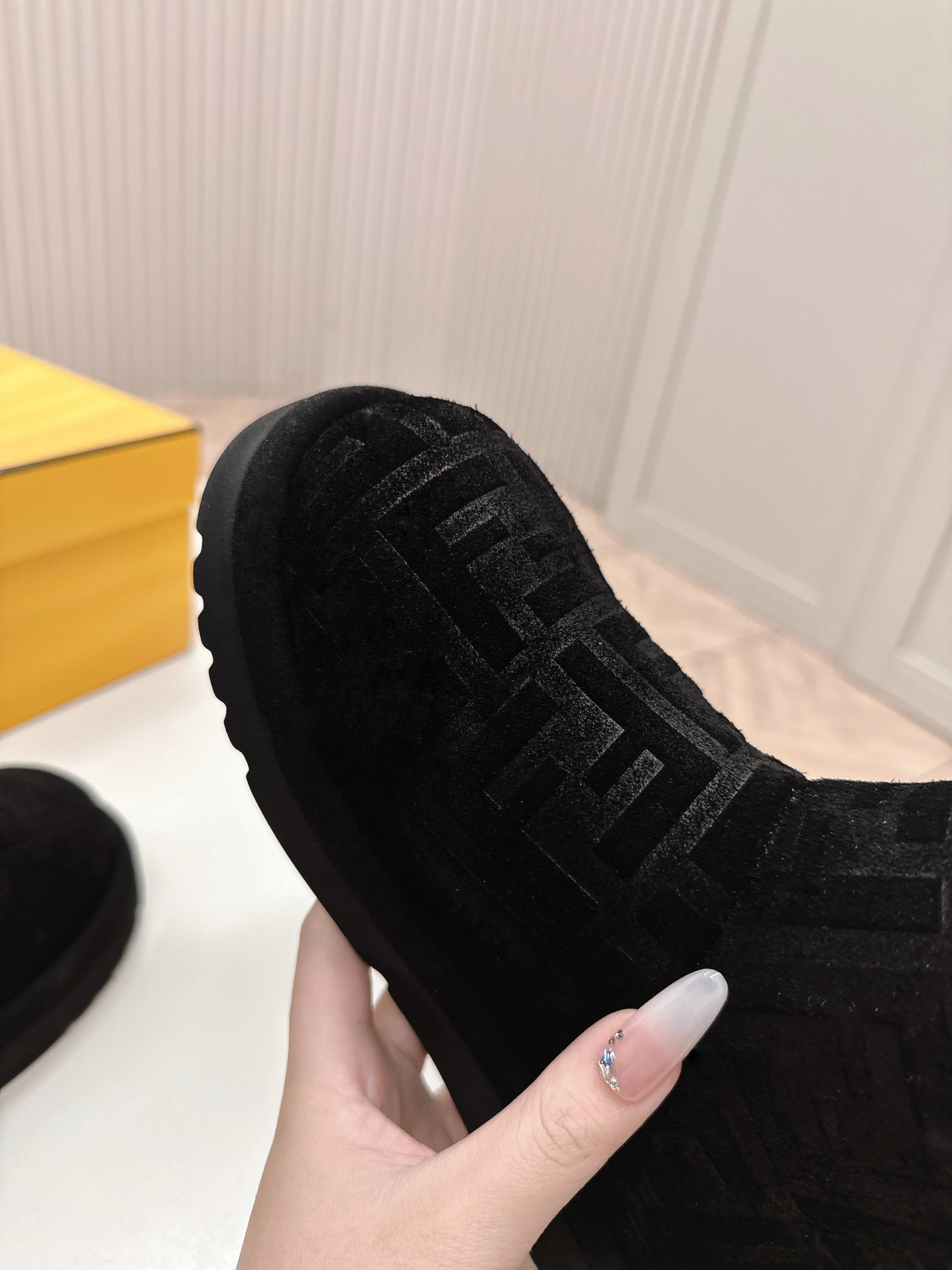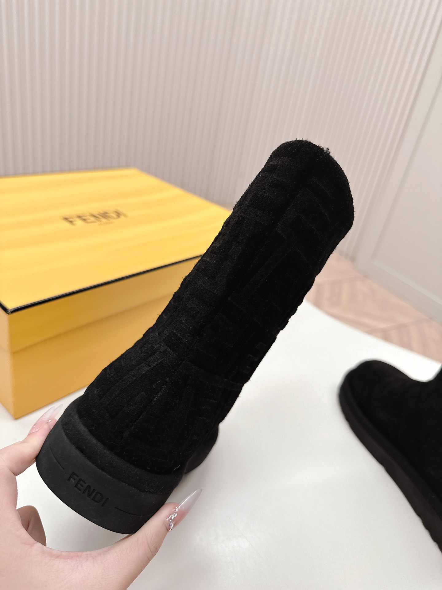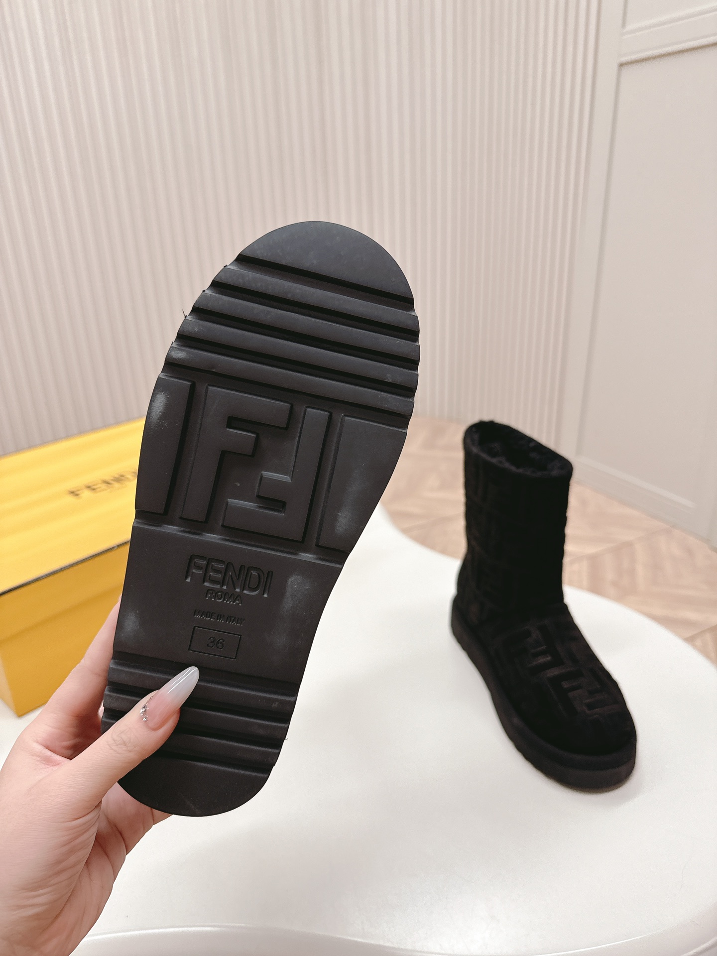 这款鞋子是AAAAA 1:1 质量 (非常棒). 使用了和原版一模一样的材料. 商标部分也保持了和芬迪/Fendi一样. 图片拍摄是实物鞋子拍摄, 您所收到的实物保证和我们图片一模一样.