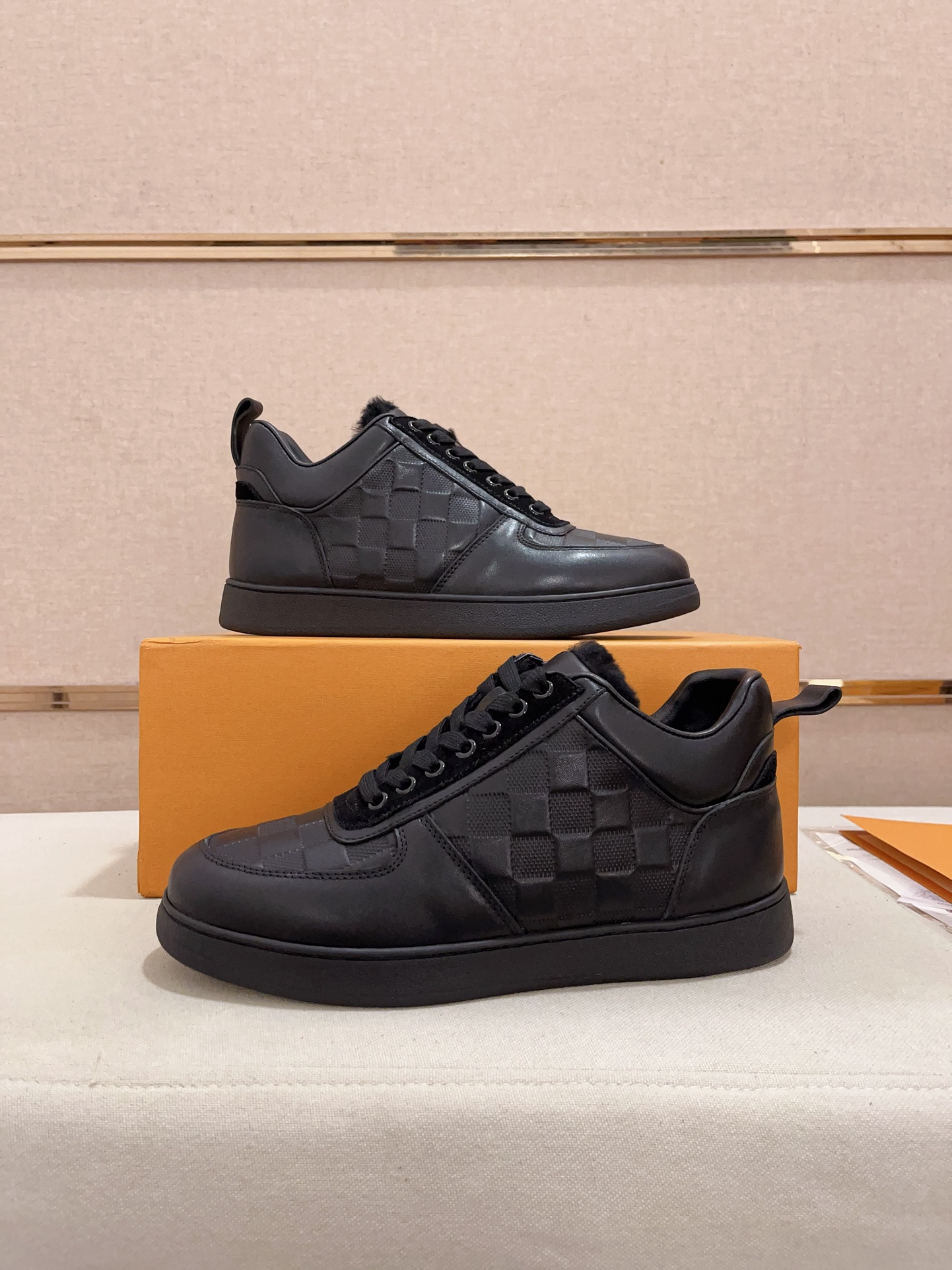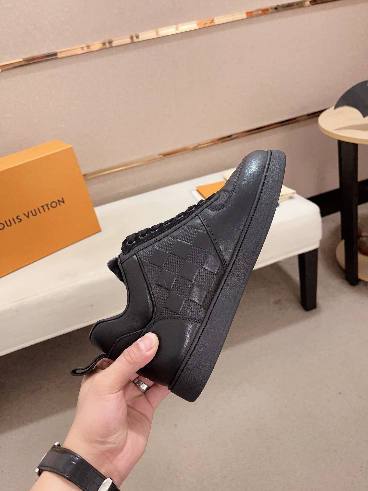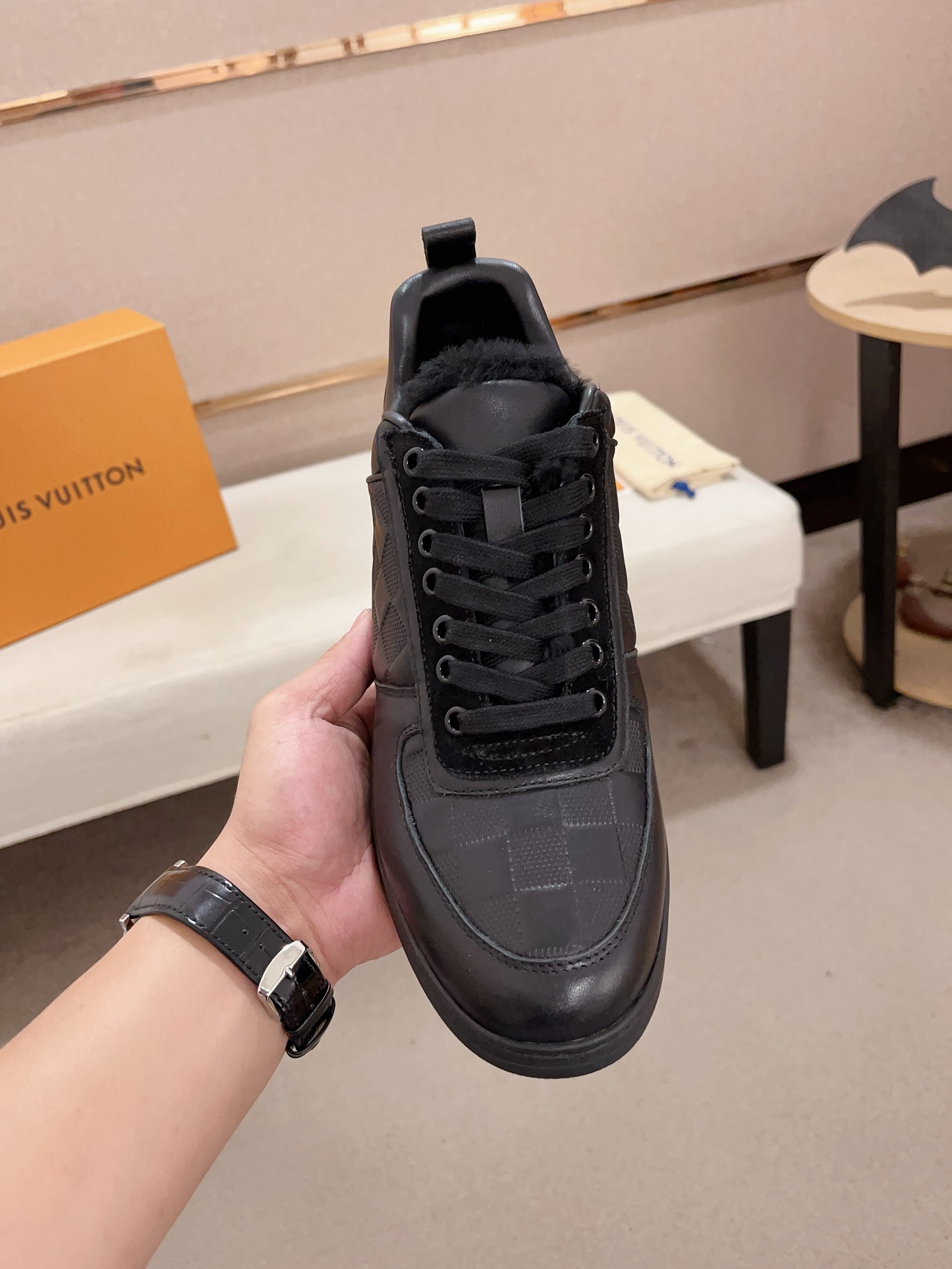 这款鞋子是AAAAA 1:1 质量 (非常棒). 使用了和原版一模一样的材料. 商标部分也保持了和路易威登/Louis Vuitton一样. 图片拍摄是实物鞋子拍摄, 您所收到的实物保证和我们图片一模一样.