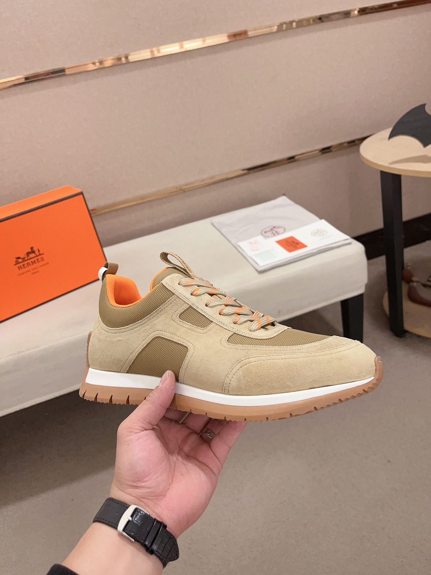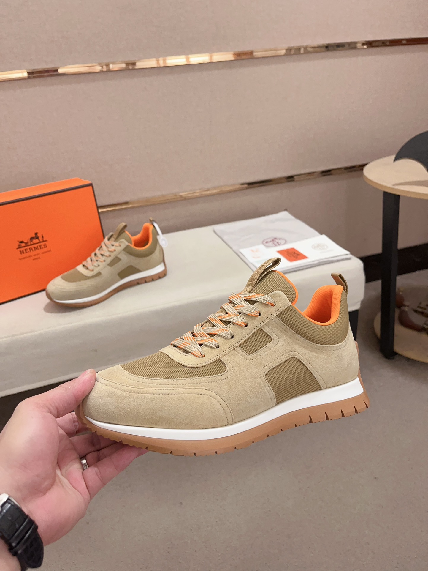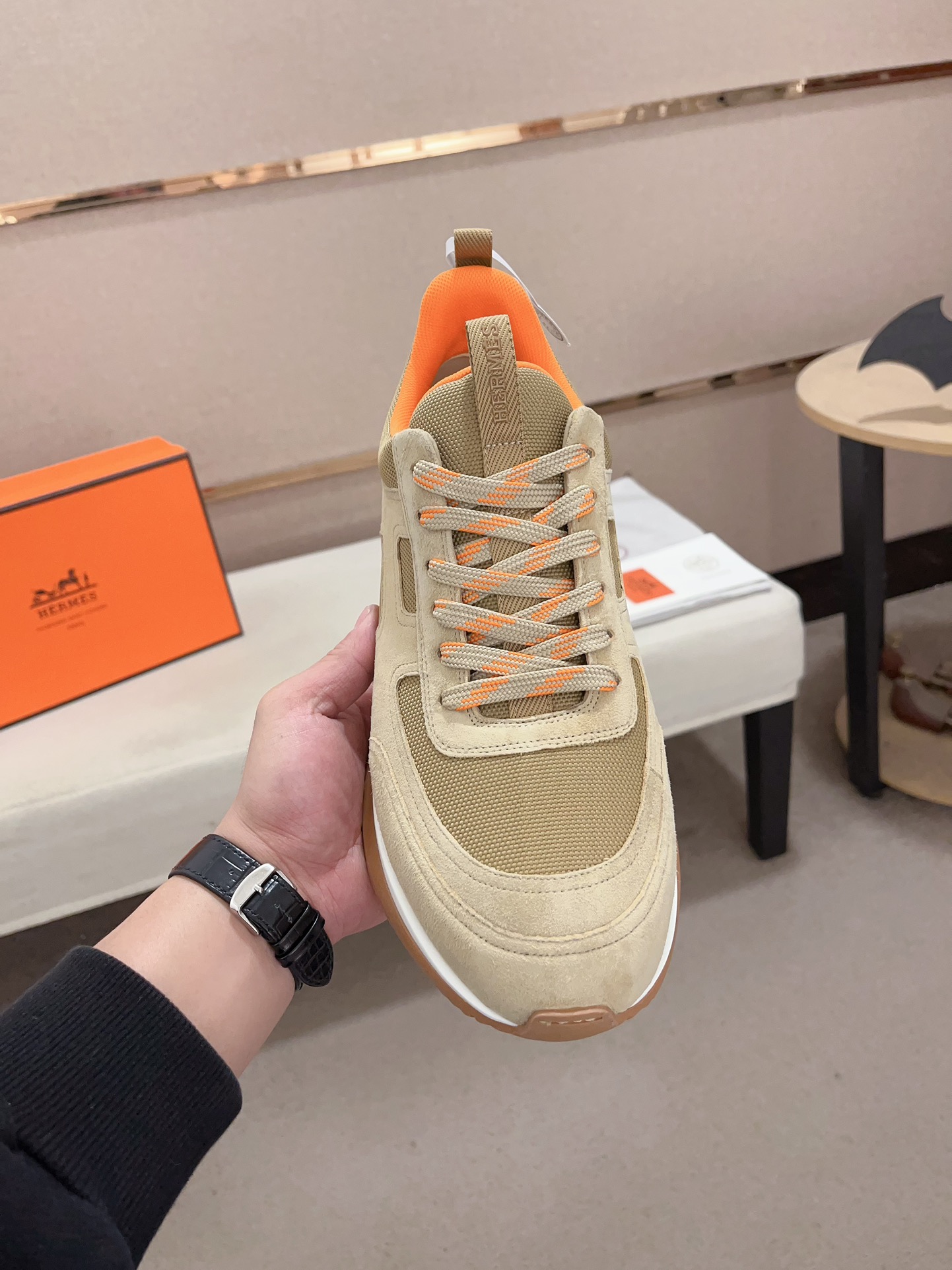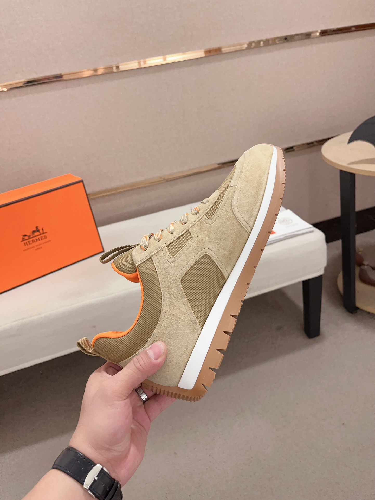 这款鞋子是AAAAA 1:1 质量 (非常棒). 使用了和原版一模一样的材料. 商标部分也保持了和爱马仕/Hermes一样. 图片拍摄是实物鞋子拍摄, 您所收到的实物保证和我们图片一模一样.