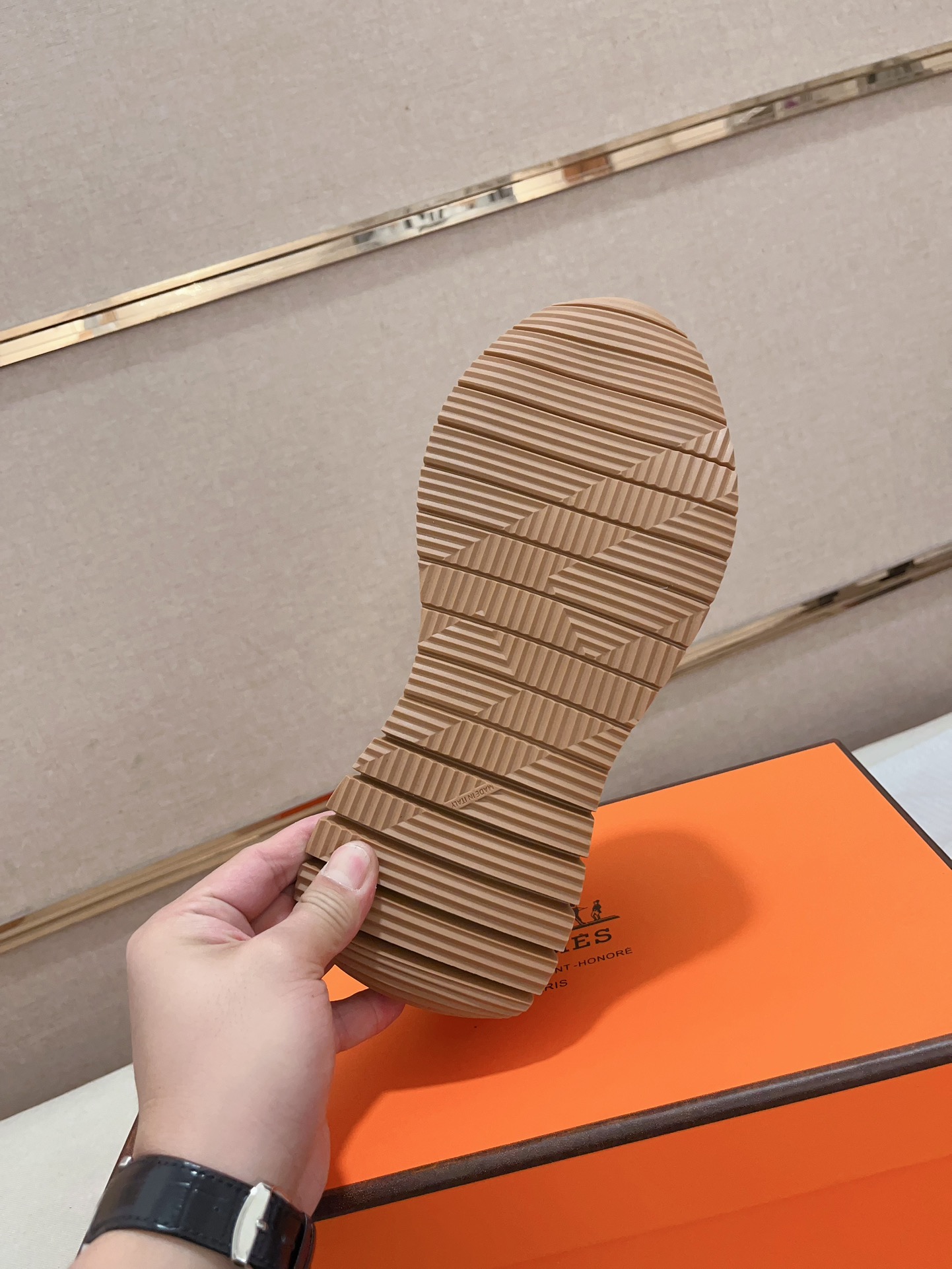 这款鞋子是AAAAA 1:1 质量 (非常棒). 使用了和原版一模一样的材料. 商标部分也保持了和爱马仕/Hermes一样. 图片拍摄是实物鞋子拍摄, 您所收到的实物保证和我们图片一模一样.