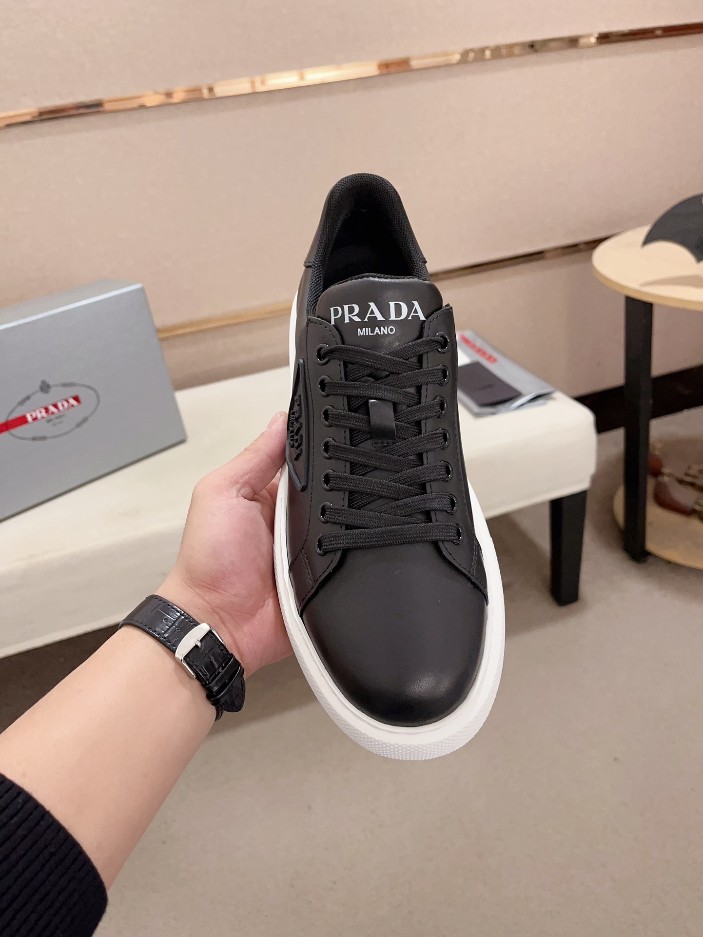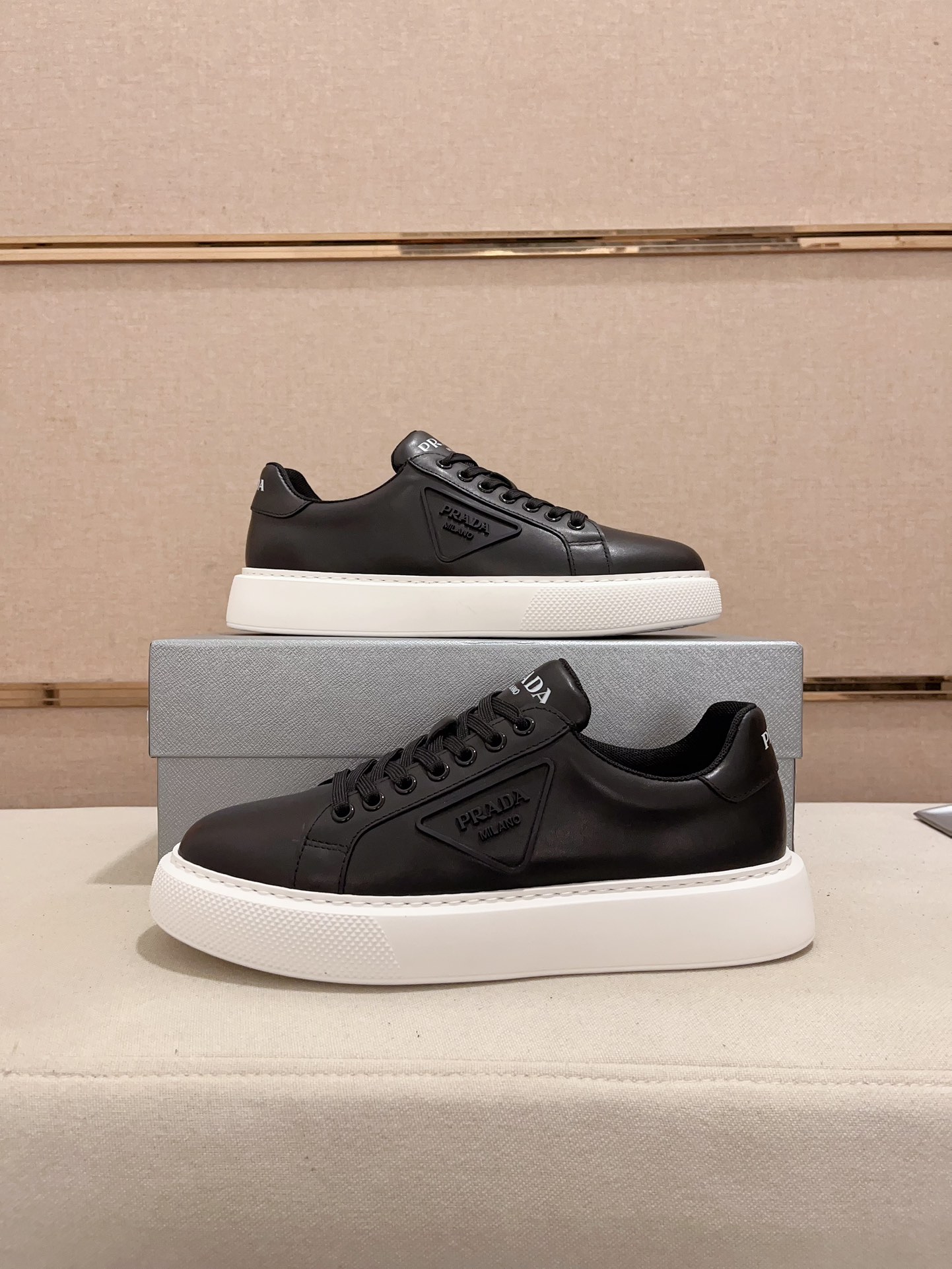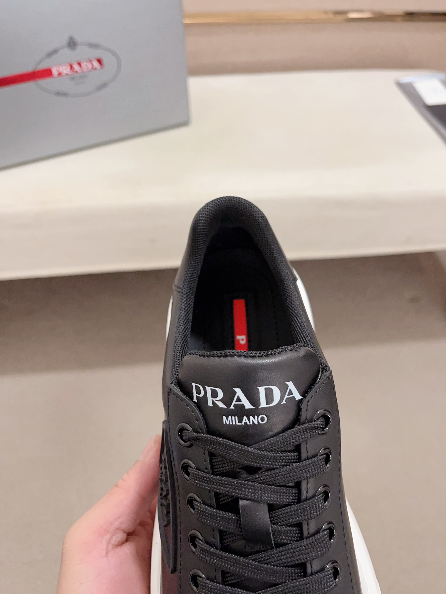 这款鞋子是AAAAA 1:1 质量 (非常棒). 使用了和原版一模一样的材料. 商标部分也保持了和普拉达/Prada一样. 图片拍摄是实物鞋子拍摄, 您所收到的实物保证和我们图片一模一样.