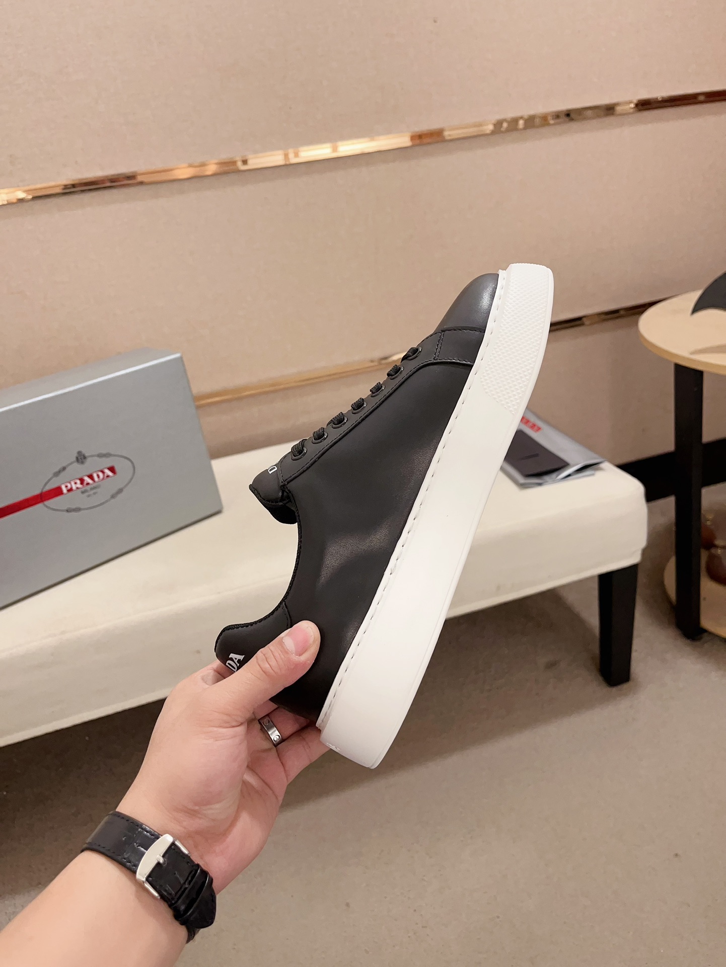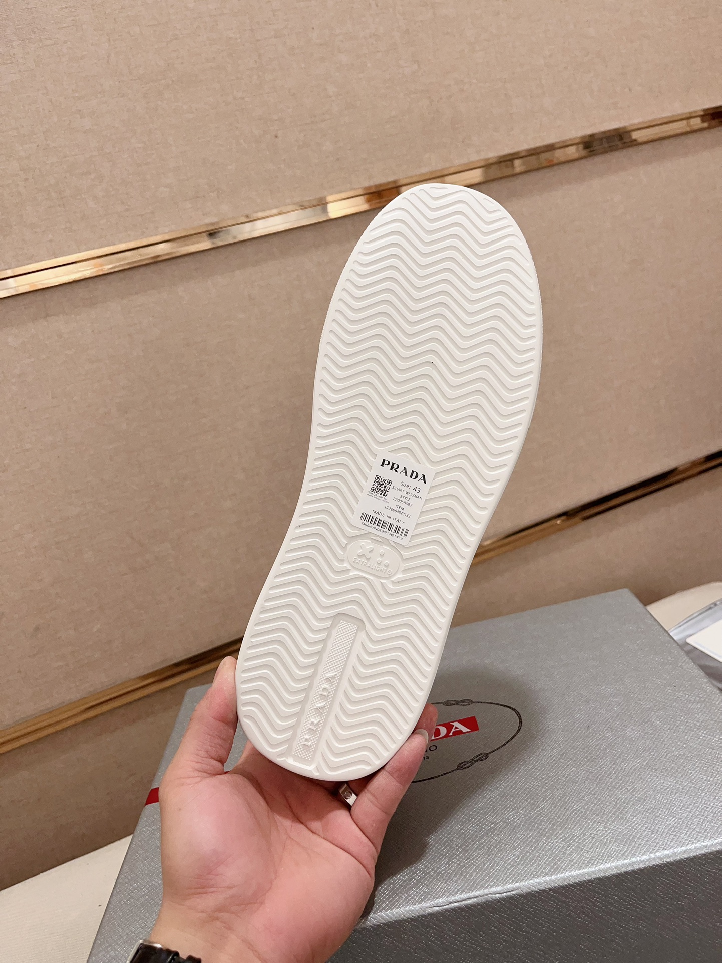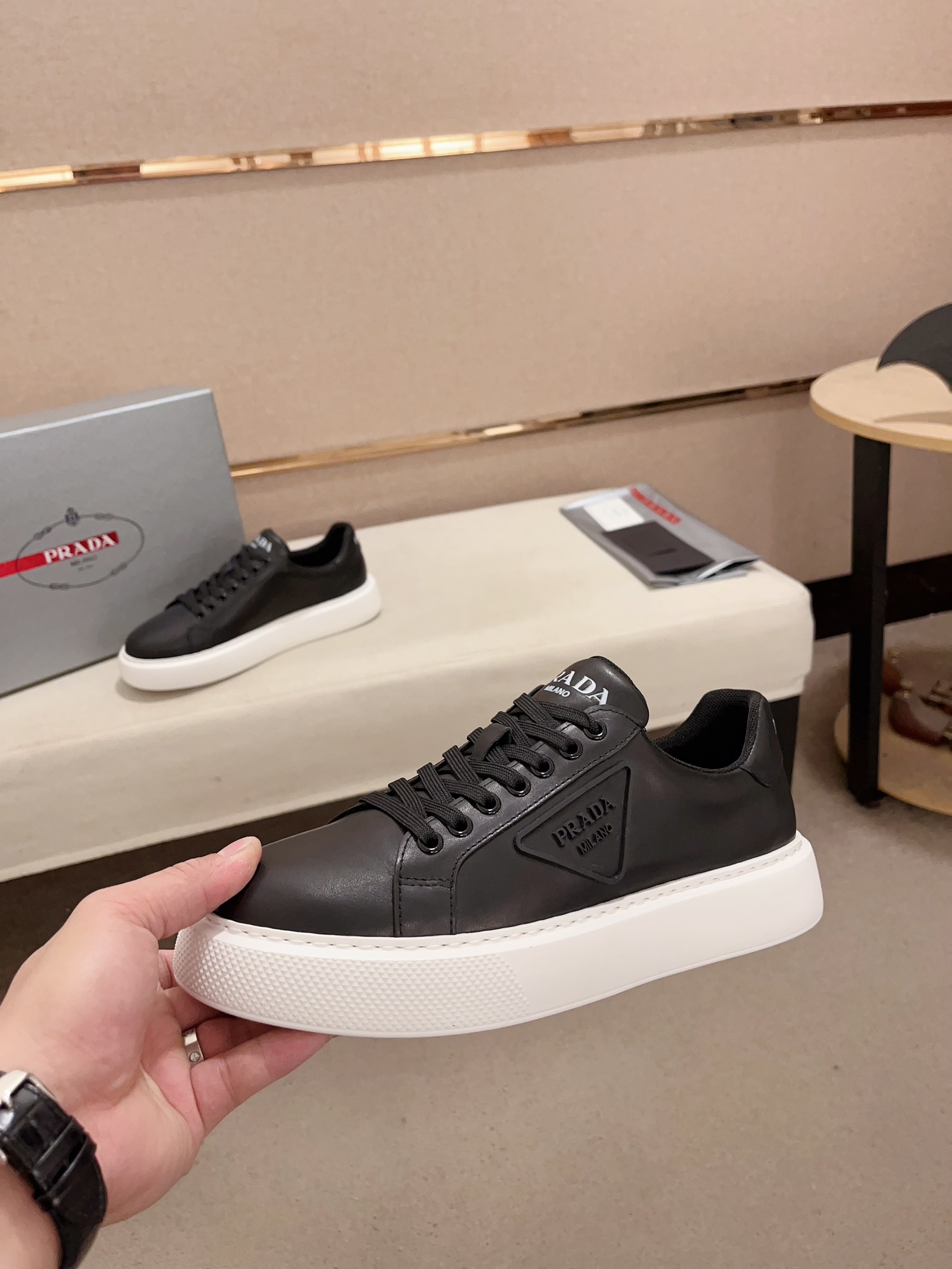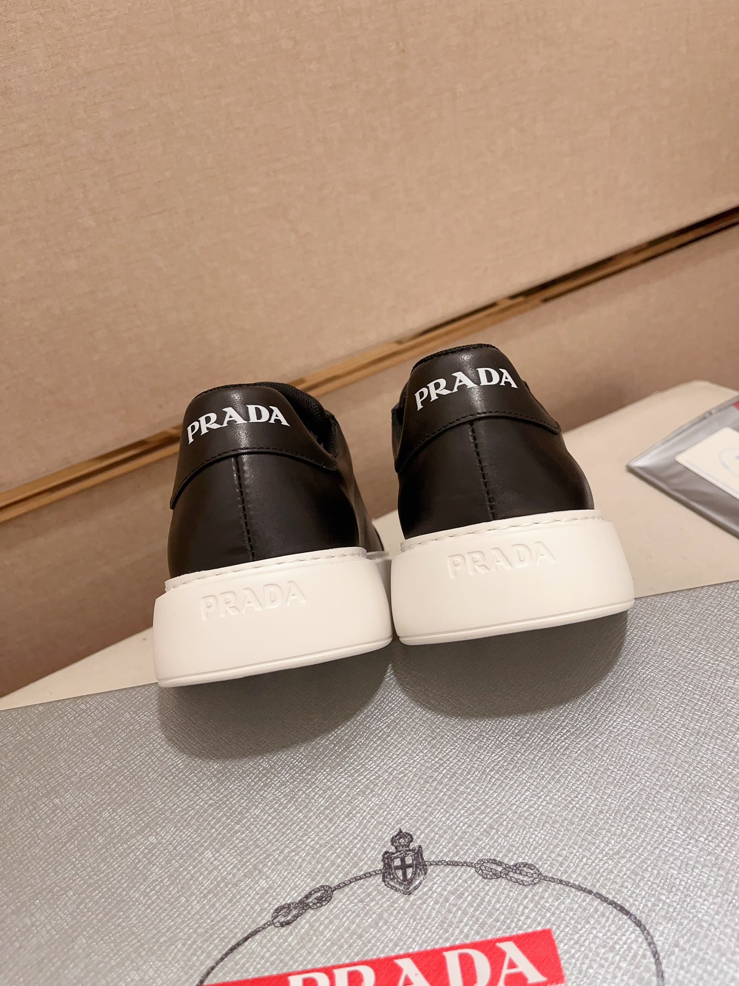 这款鞋子是AAAAA 1:1 质量 (非常棒). 使用了和原版一模一样的材料. 商标部分也保持了和普拉达/Prada一样. 图片拍摄是实物鞋子拍摄, 您所收到的实物保证和我们图片一模一样.