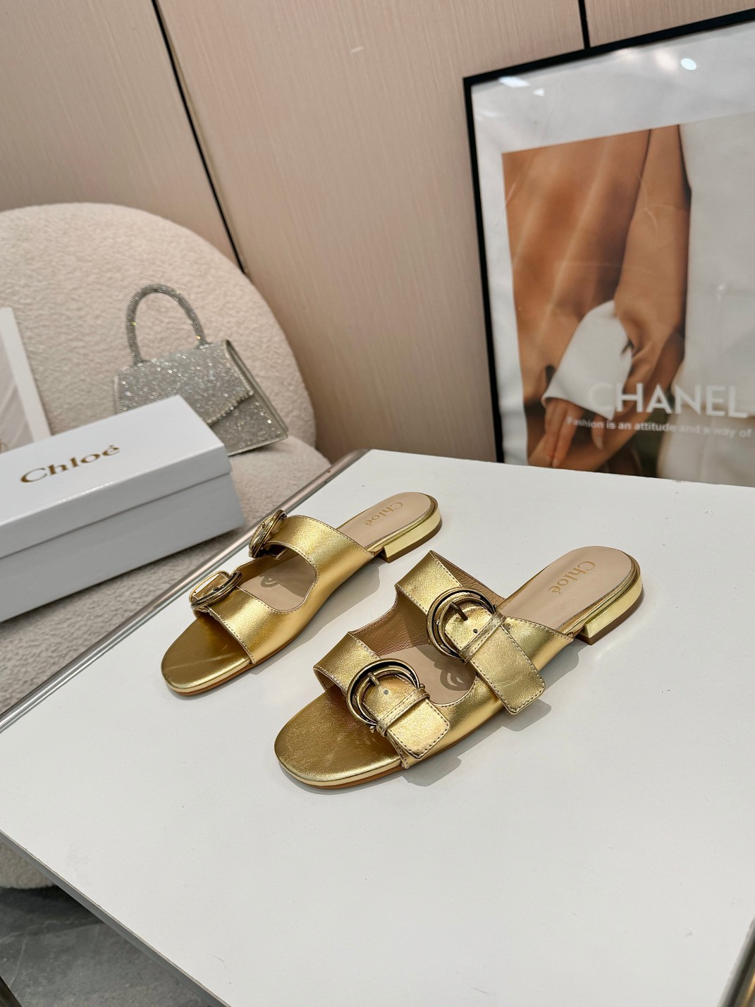 这款鞋子是AAAAA 1:1 质量 (非常棒). 使用了和原版一模一样的材料. 商标部分也保持了和克洛伊/Chloe一样. 图片拍摄是实物鞋子拍摄, 您所收到的实物保证和我们图片一模一样.