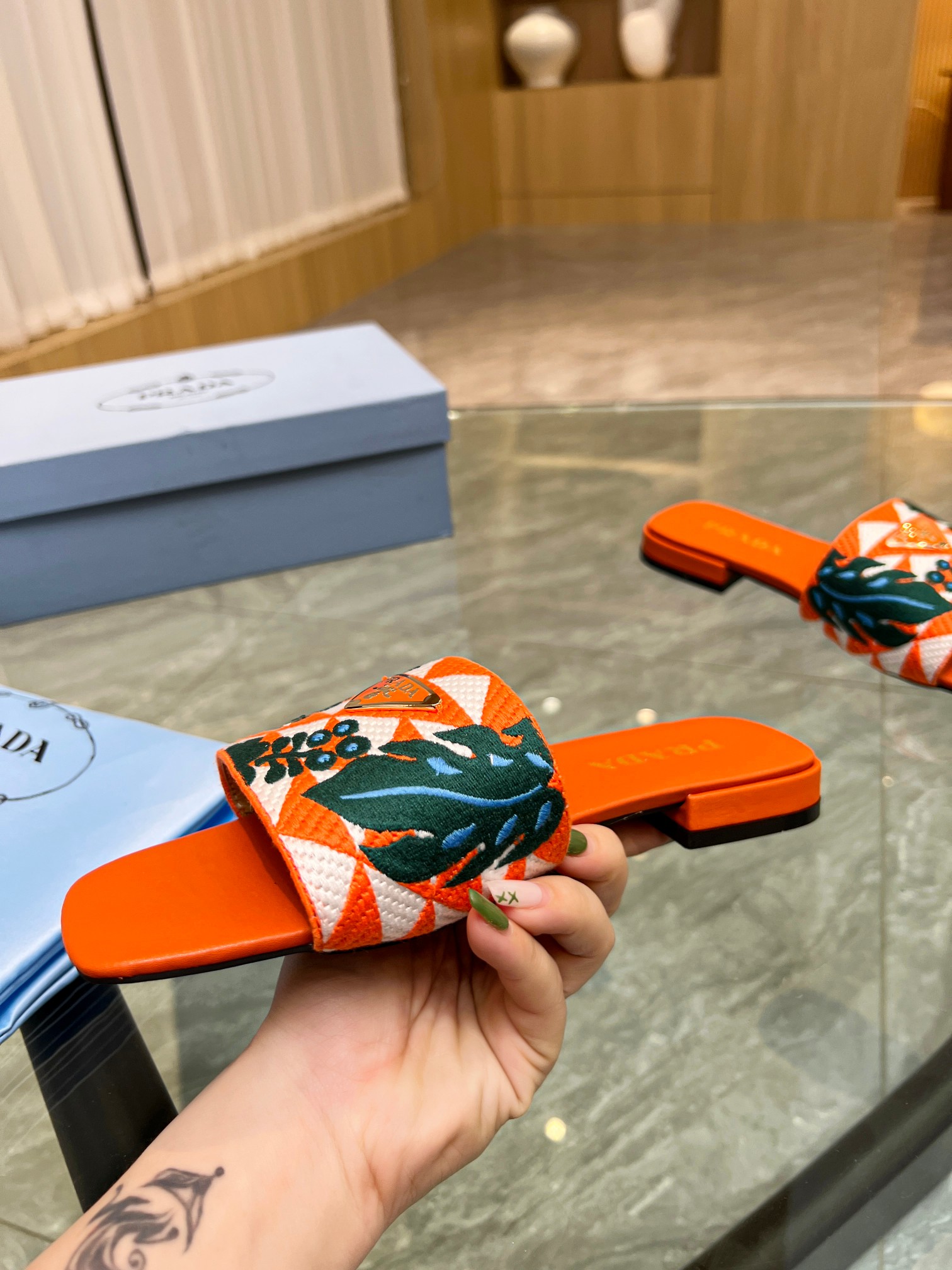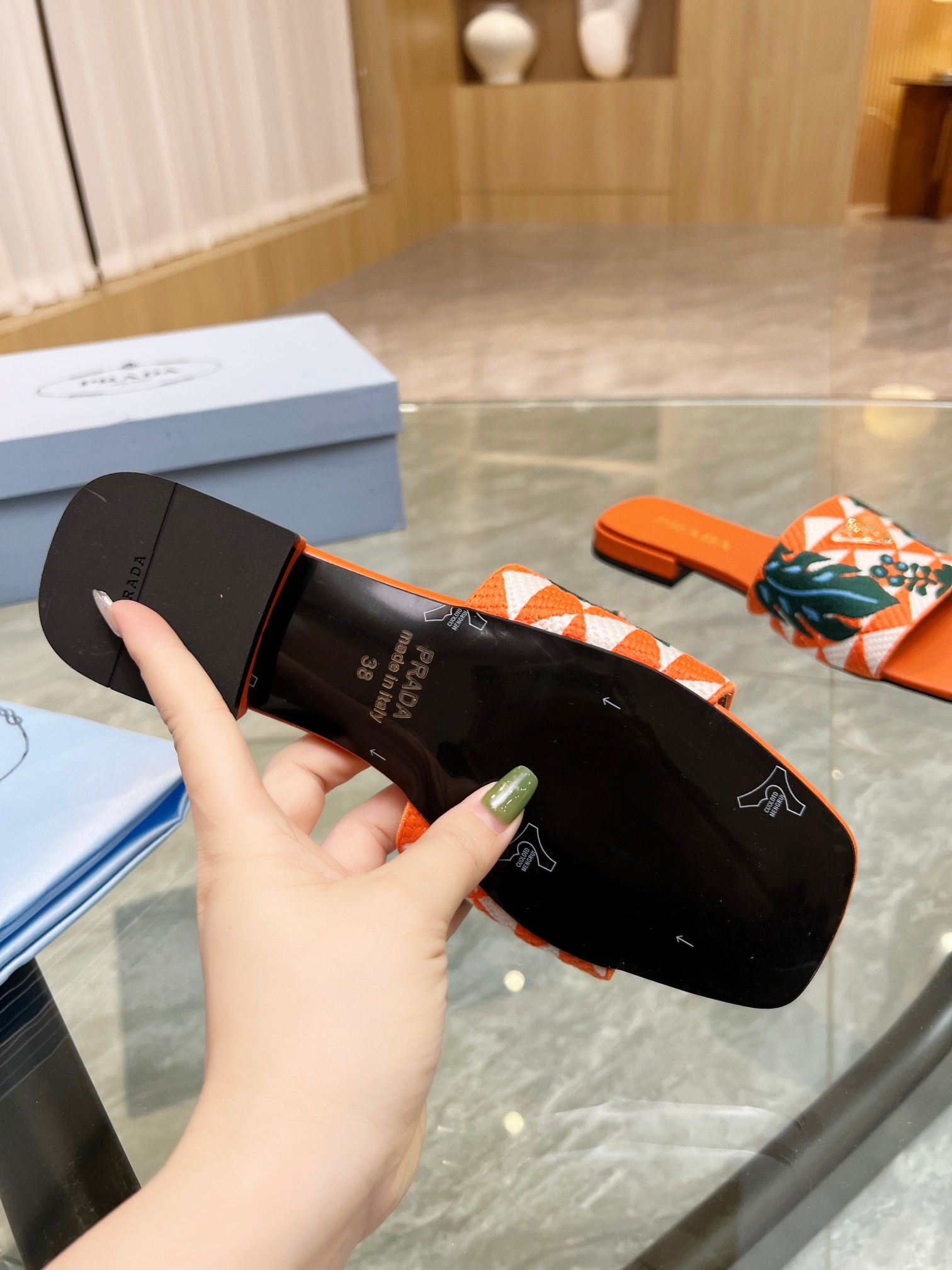 这款鞋子是AAAAA 1:1 质量 (非常棒). 使用了和原版一模一样的材料. 商标部分也保持了和普拉达/Prada一样. 图片拍摄是实物鞋子拍摄, 您所收到的实物保证和我们图片一模一样.