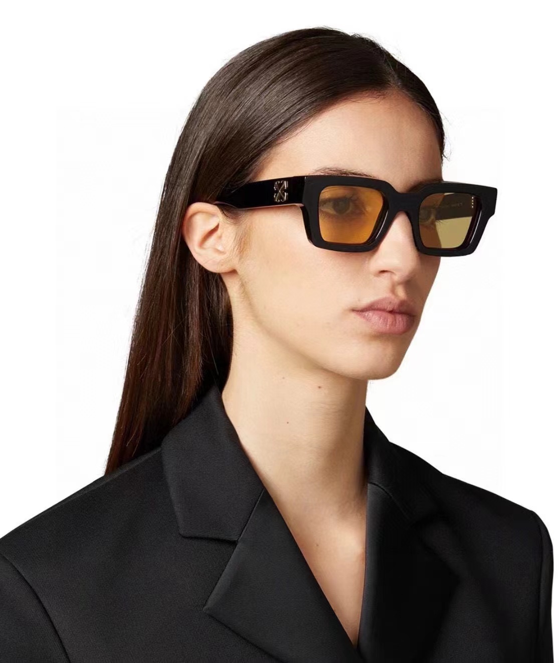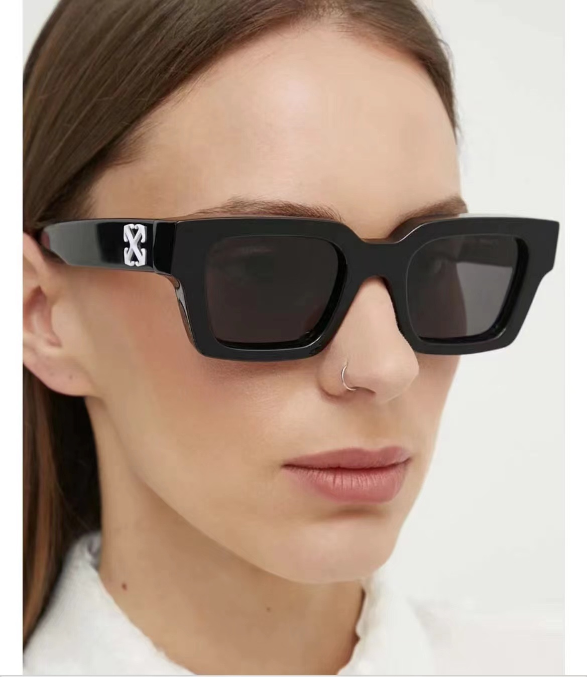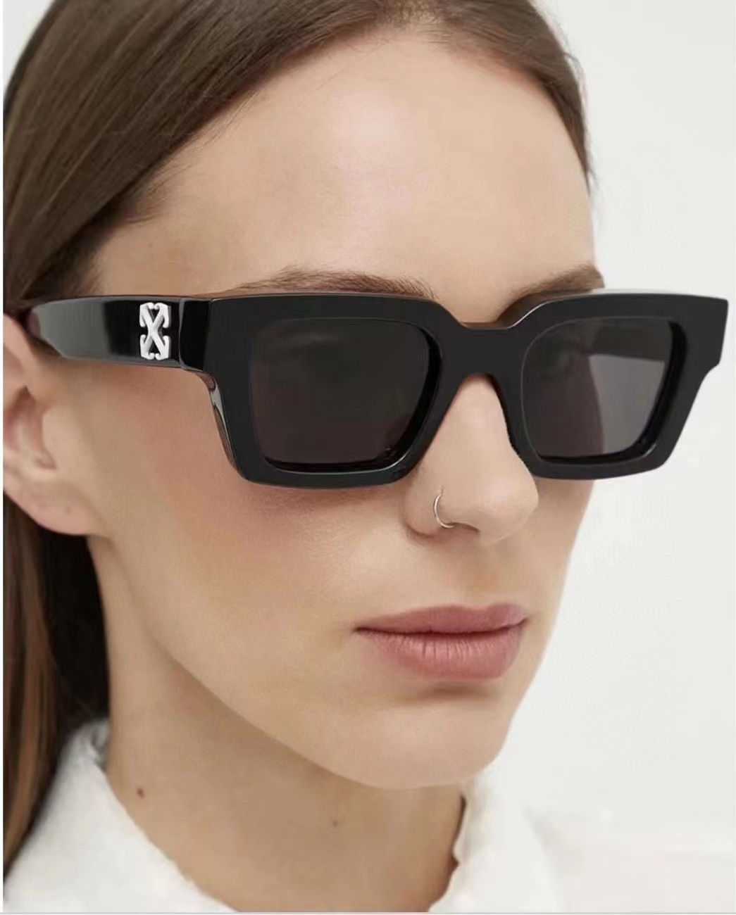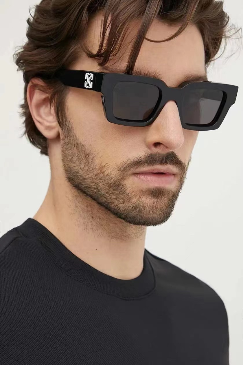 这款太阳眼镜是AAAAA 1:1 质量 (非常棒). 使用了和原版一模一样的材料. 商标部分也保持了和OFF WHITE一样. 图片拍摄是实物太阳眼镜拍摄, 您所收到的实物保证和我们图片一模一样.
