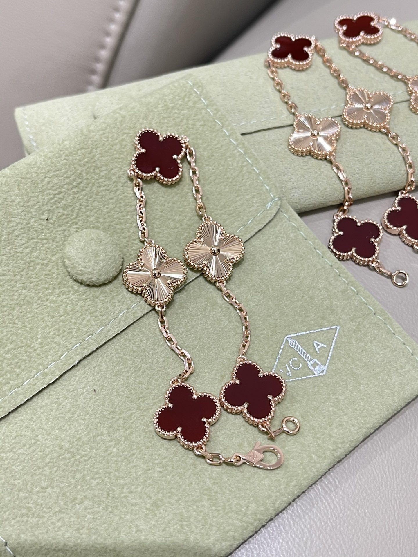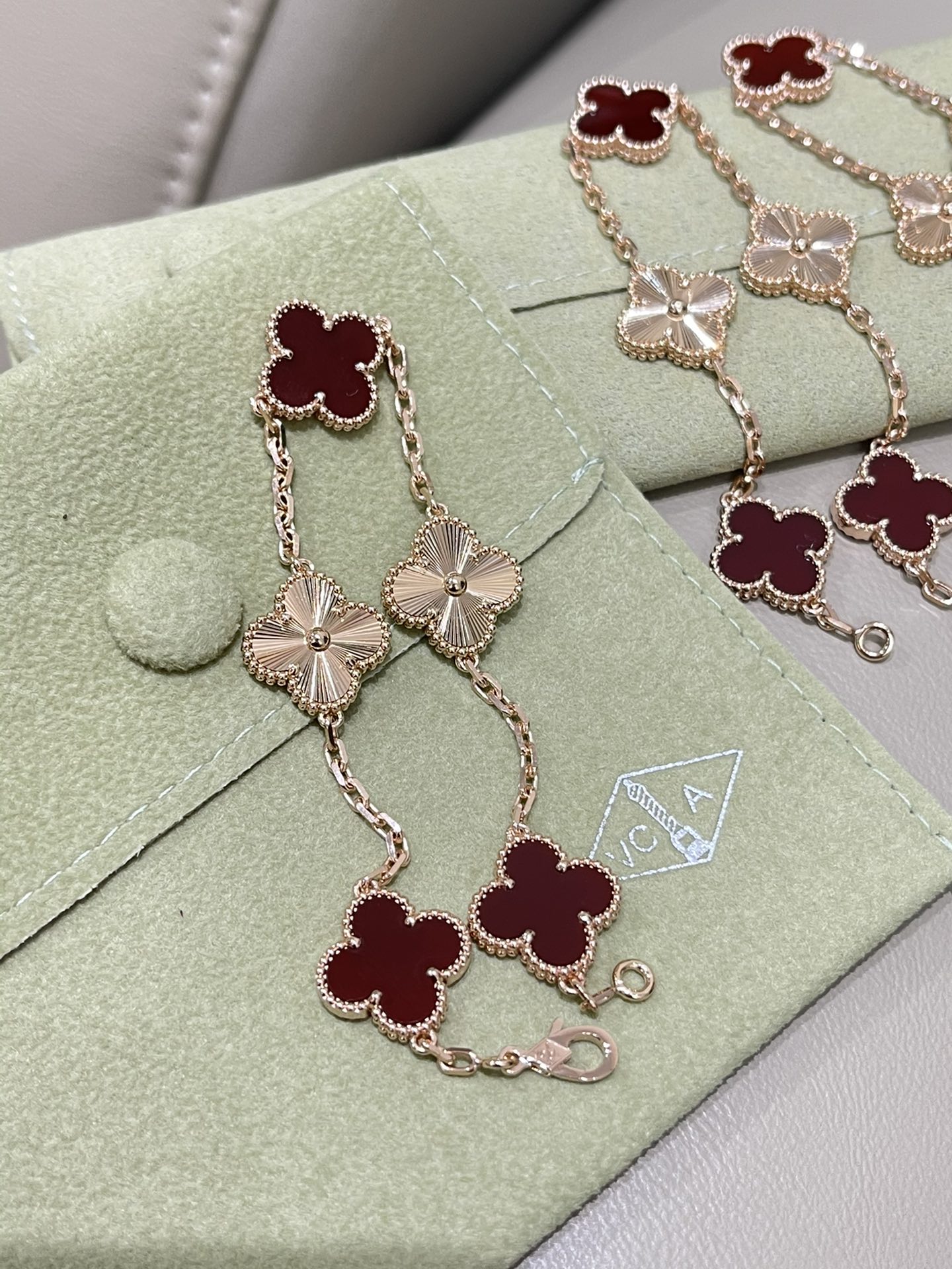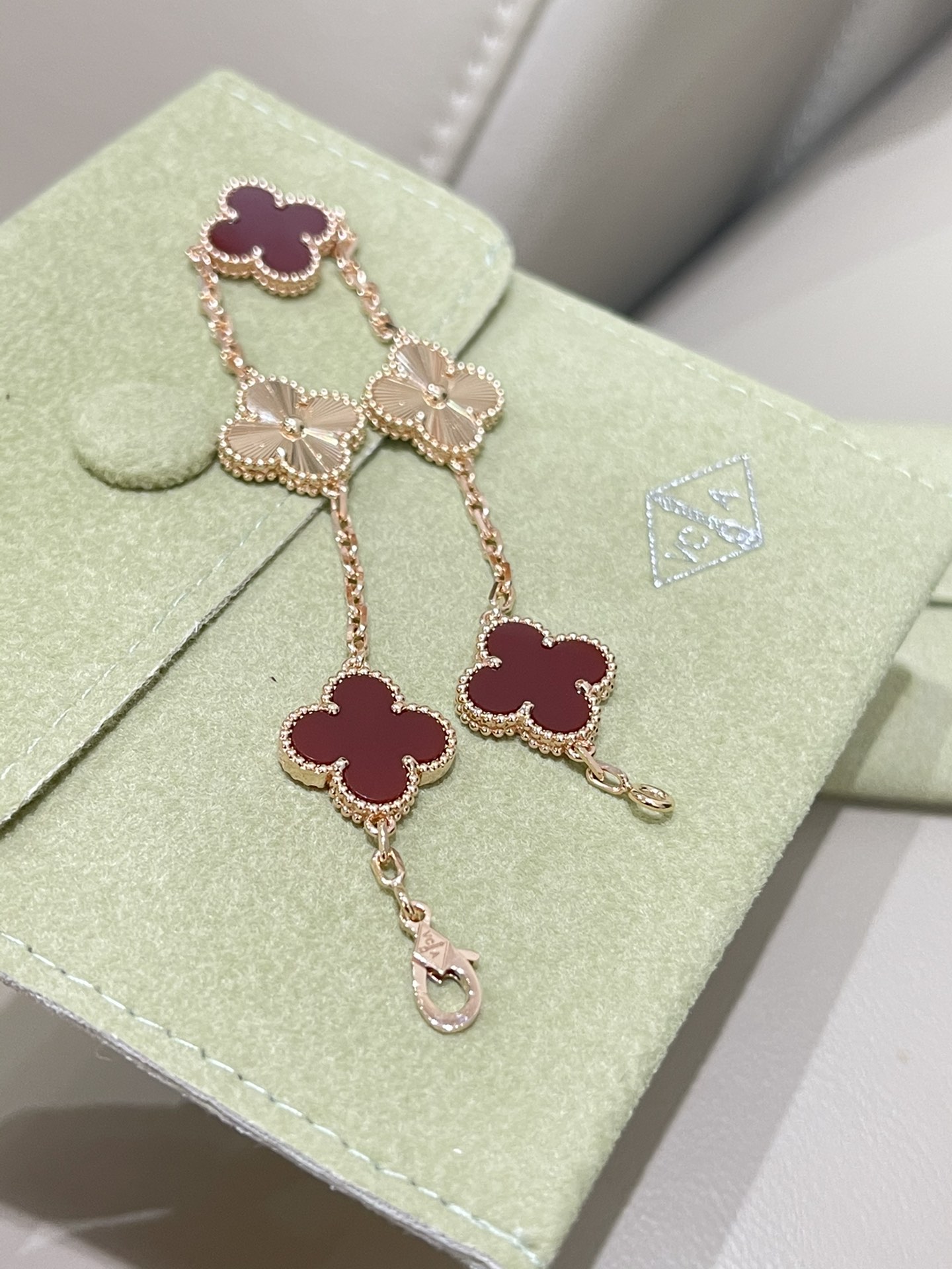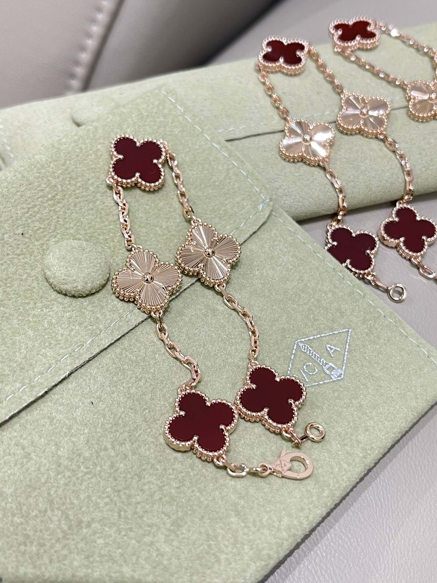 这款首饰是AAAAA 1:1 质量 (非常棒). 使用了和原版一模一样的材料. 商标部分也保持了和梵克雅宝/Van Cleef & Arpels一样. 图片拍摄是实物首饰拍摄, 您所收到的实物保证和我们图片一模一样.