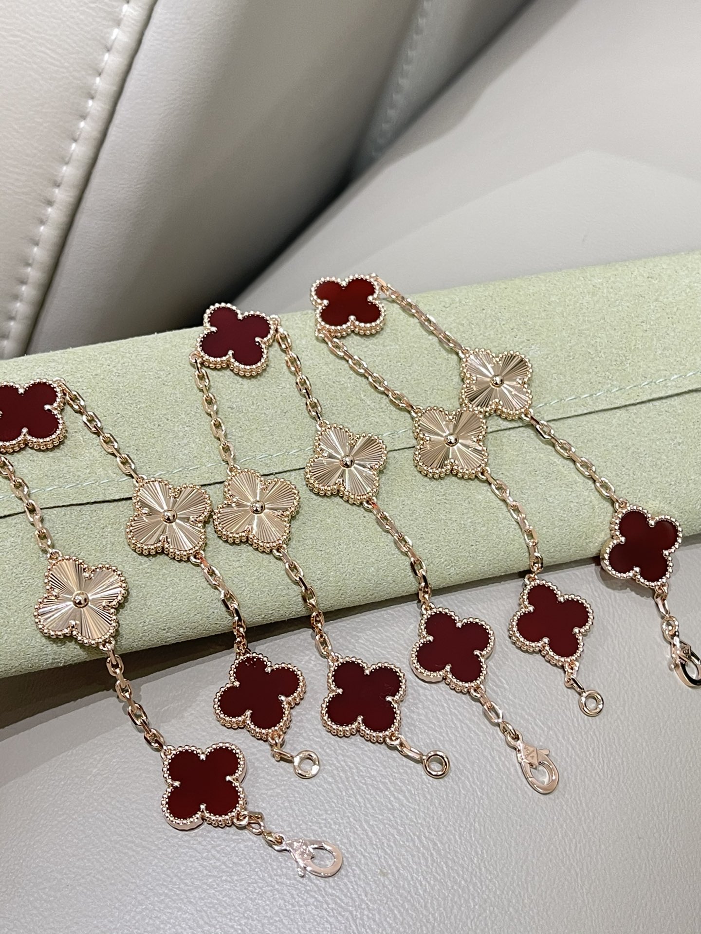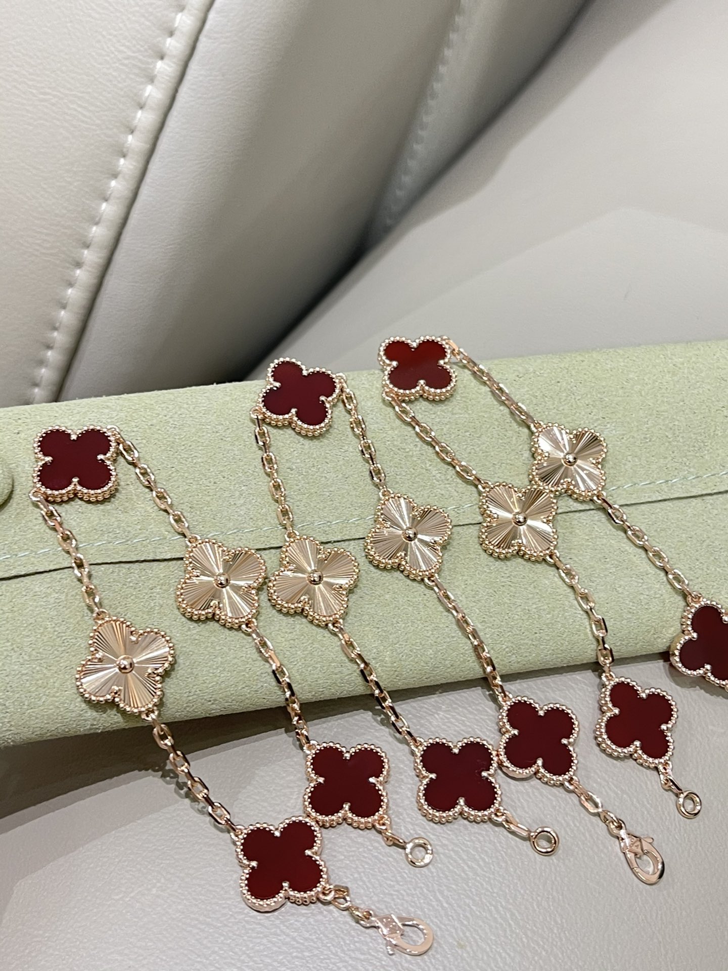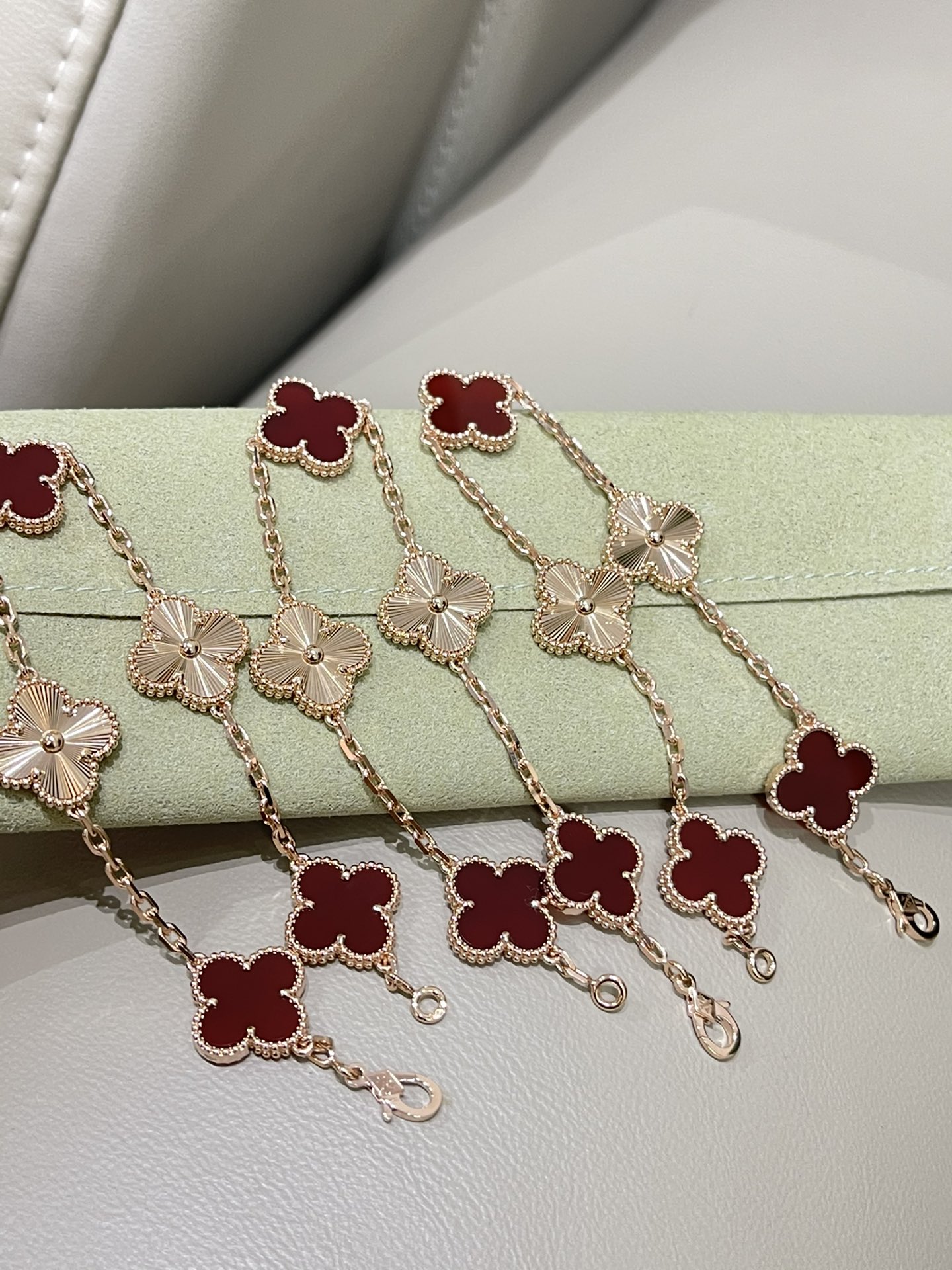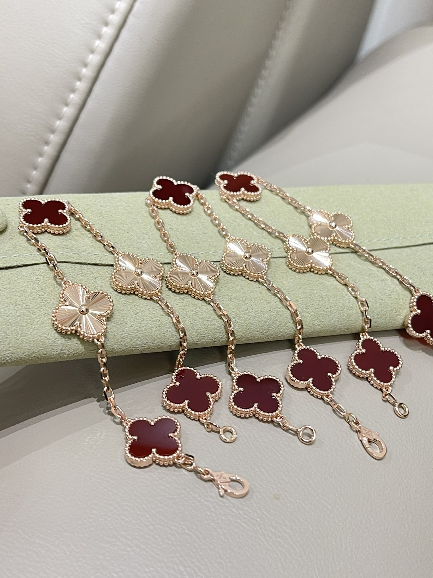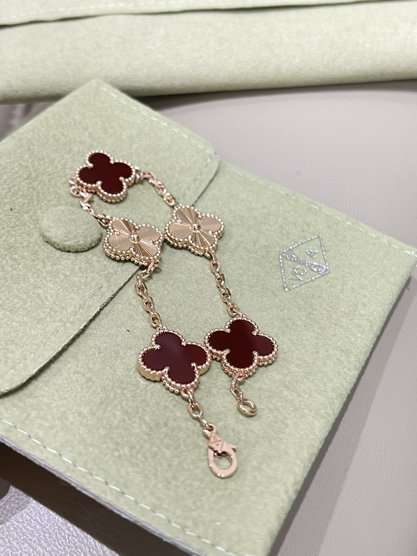 这款首饰是AAAAA 1:1 质量 (非常棒). 使用了和原版一模一样的材料. 商标部分也保持了和梵克雅宝/Van Cleef & Arpels一样. 图片拍摄是实物首饰拍摄, 您所收到的实物保证和我们图片一模一样.